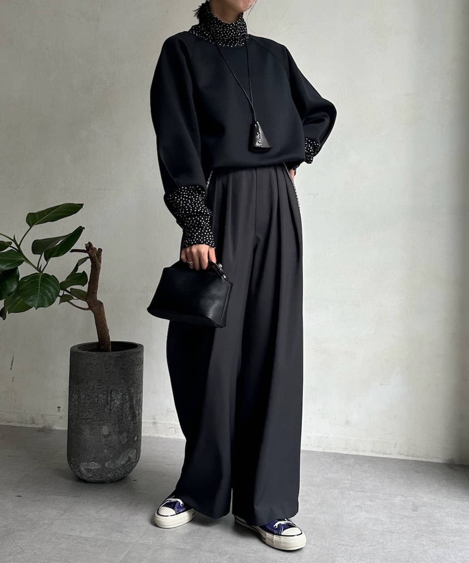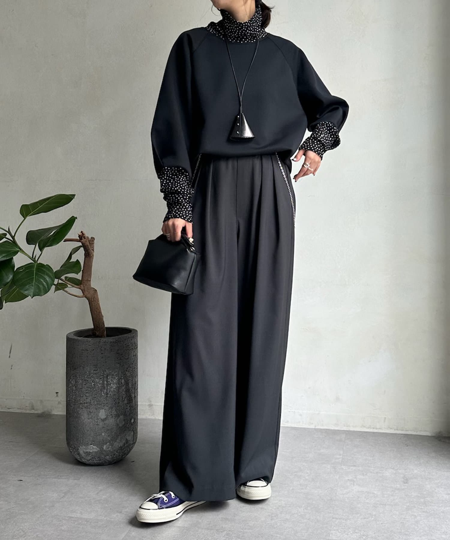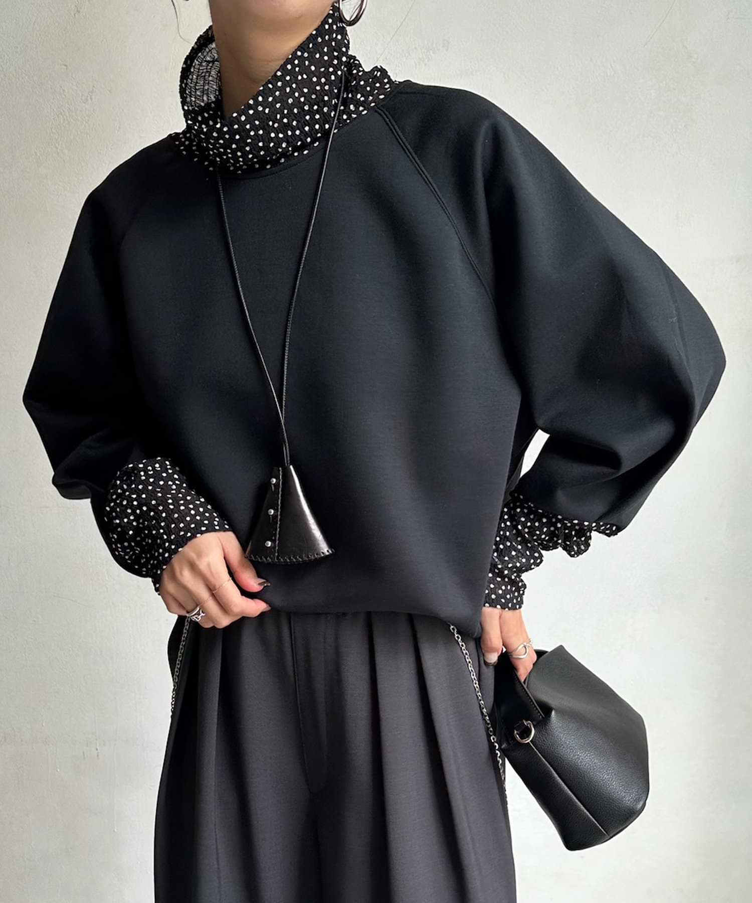 袖とネックの小さめドット柄がアクセントに!