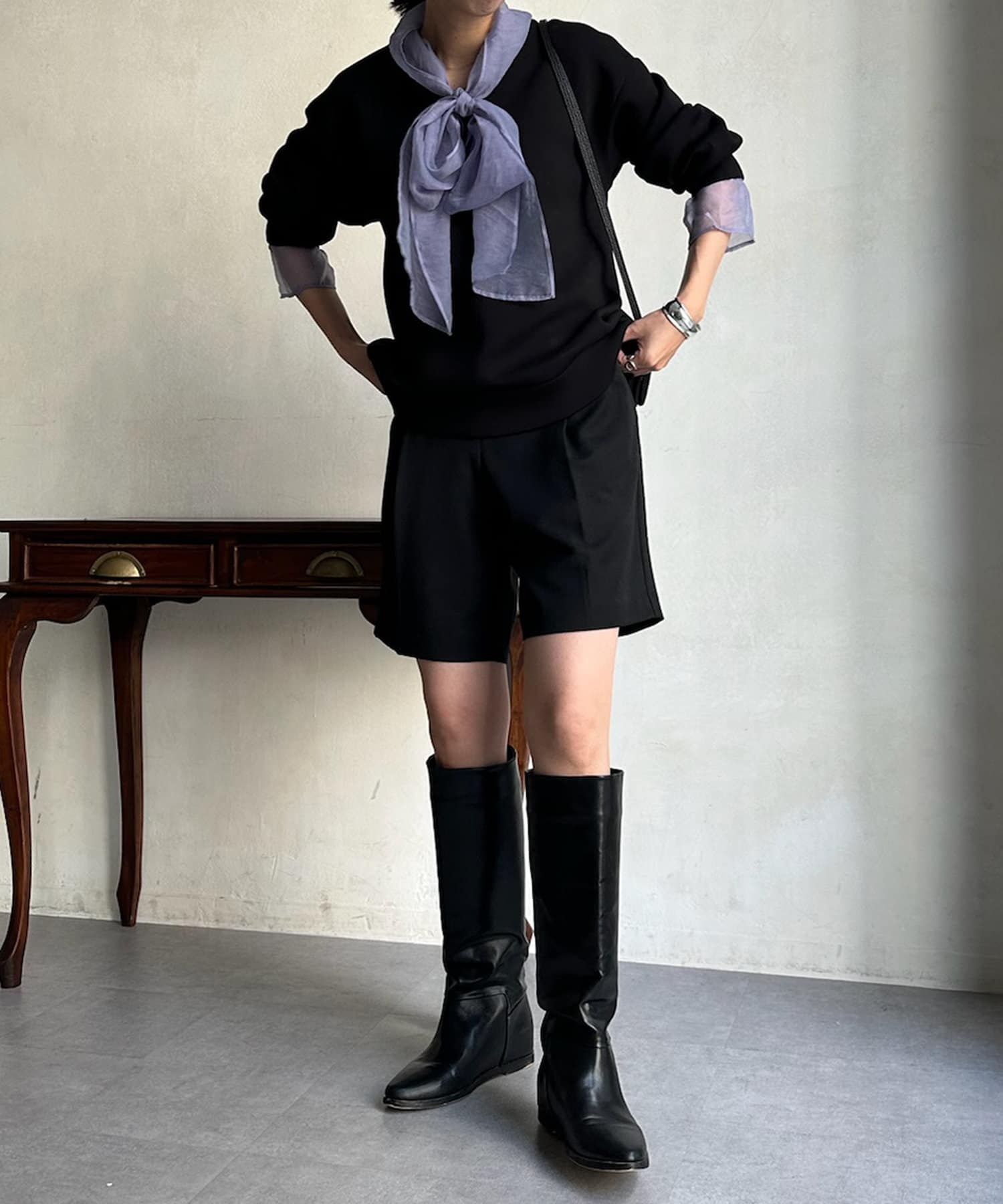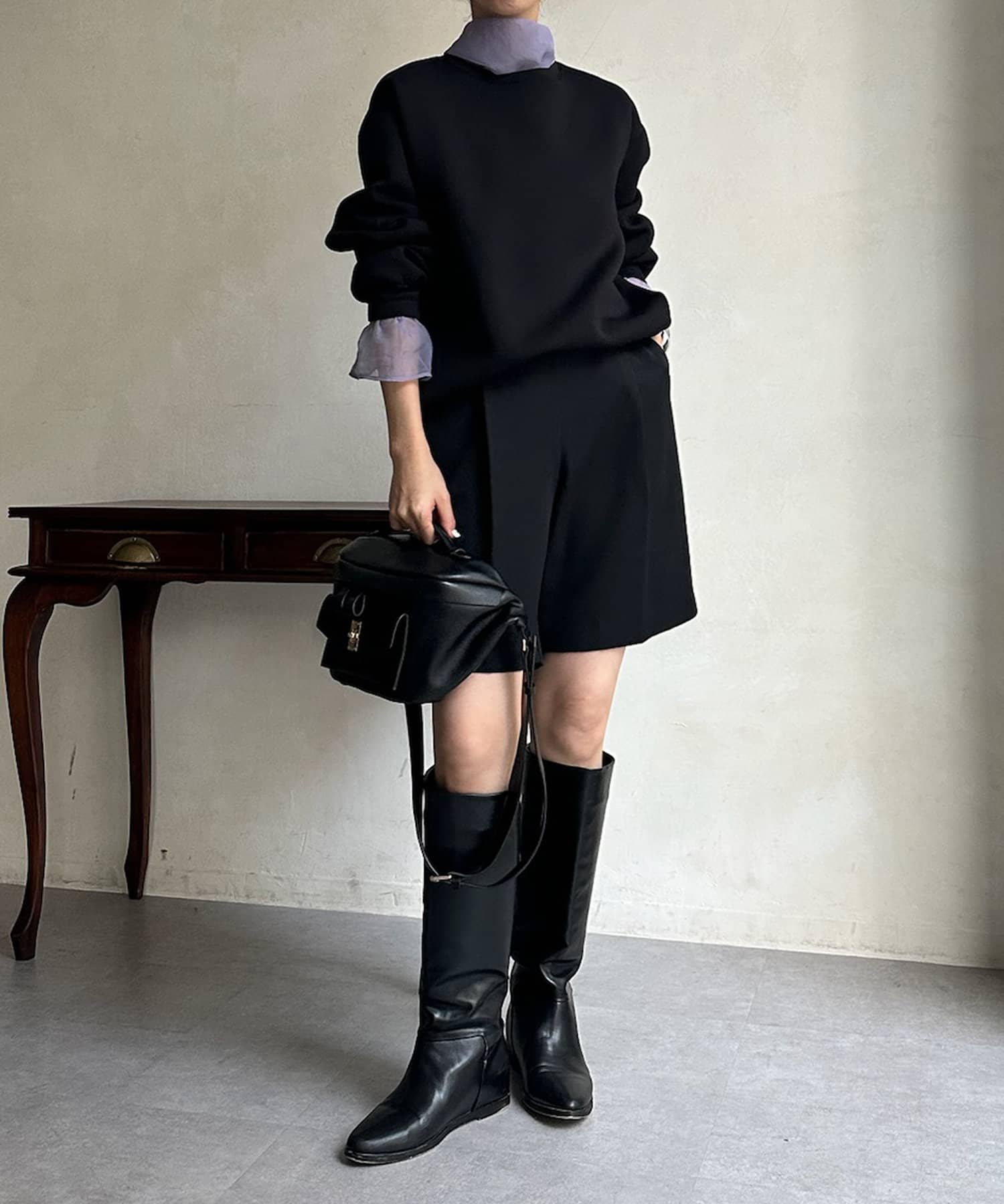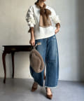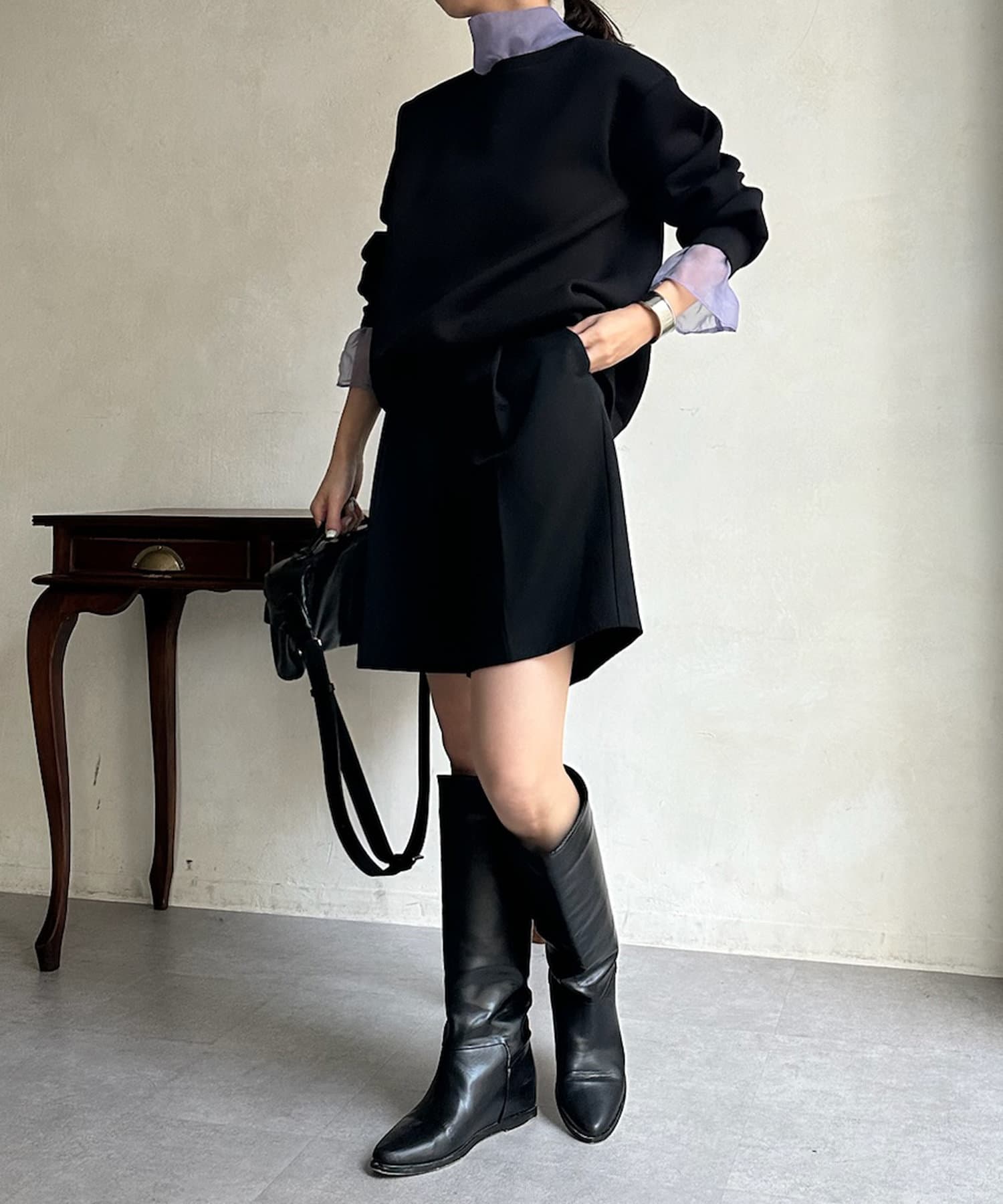 トップスがカジュアルな素材なので、異素材がMixされていて1着でMixコーデが叶いますよ。