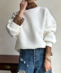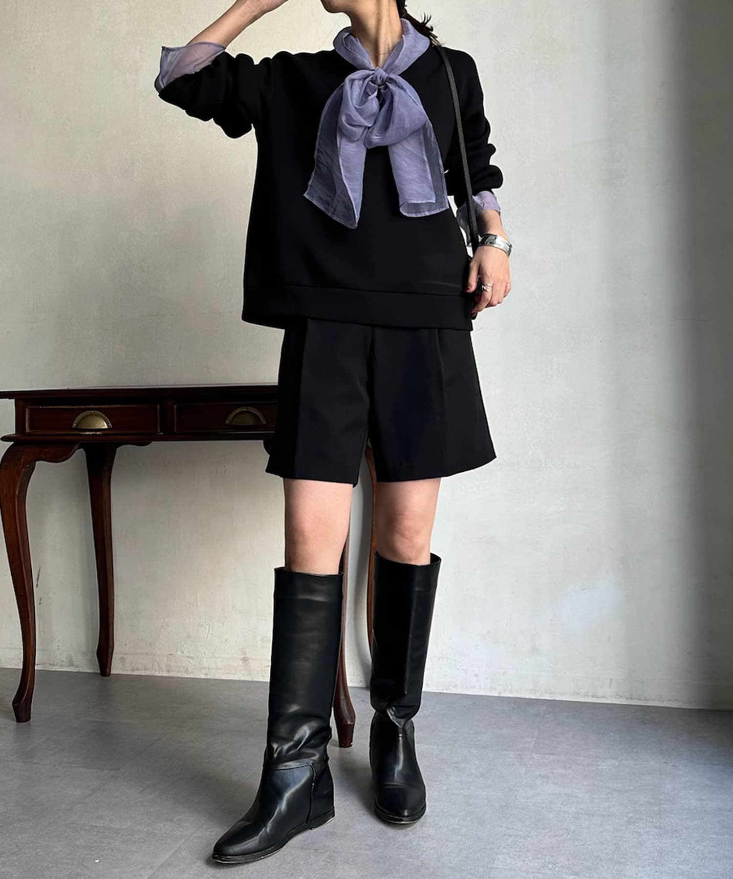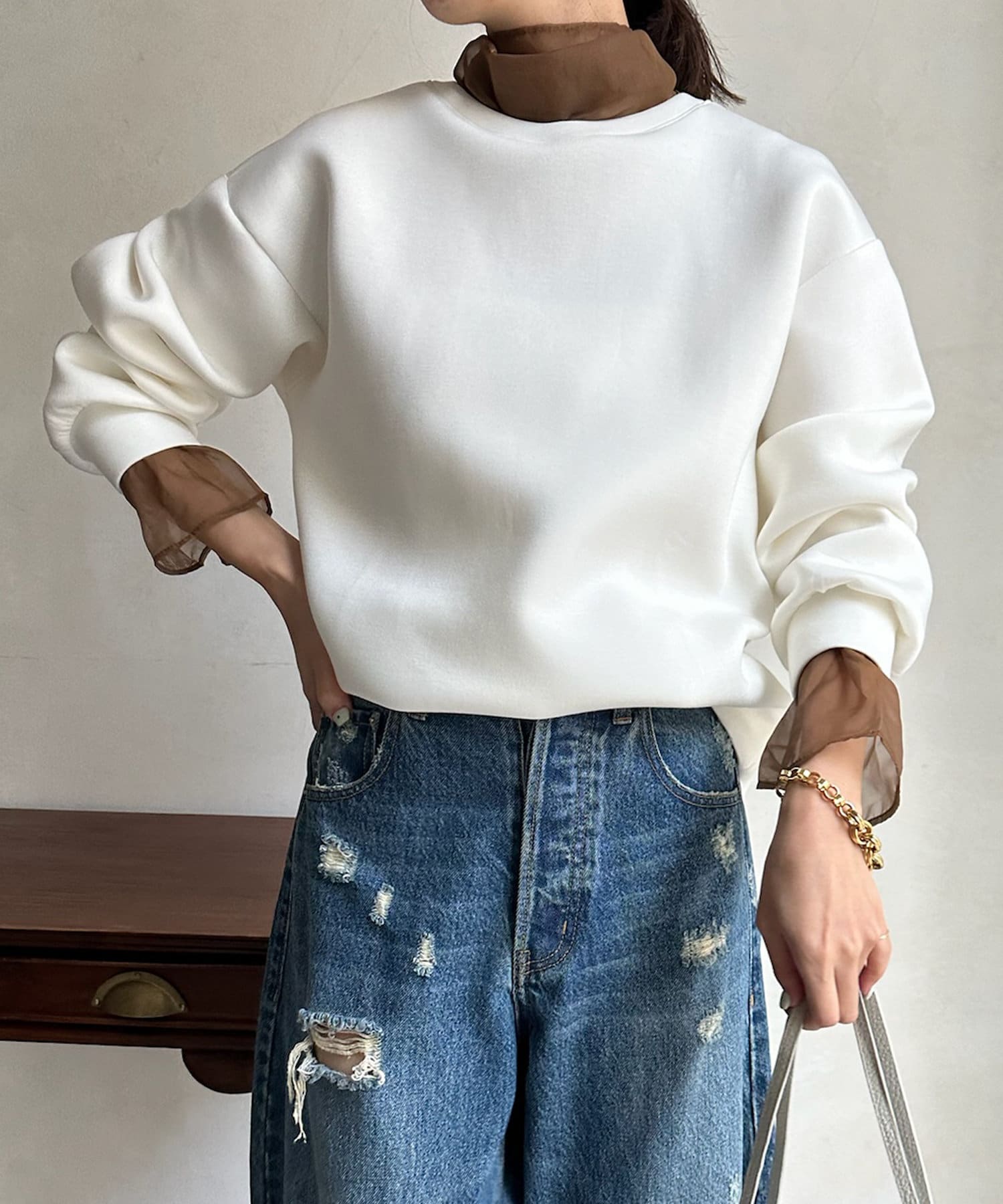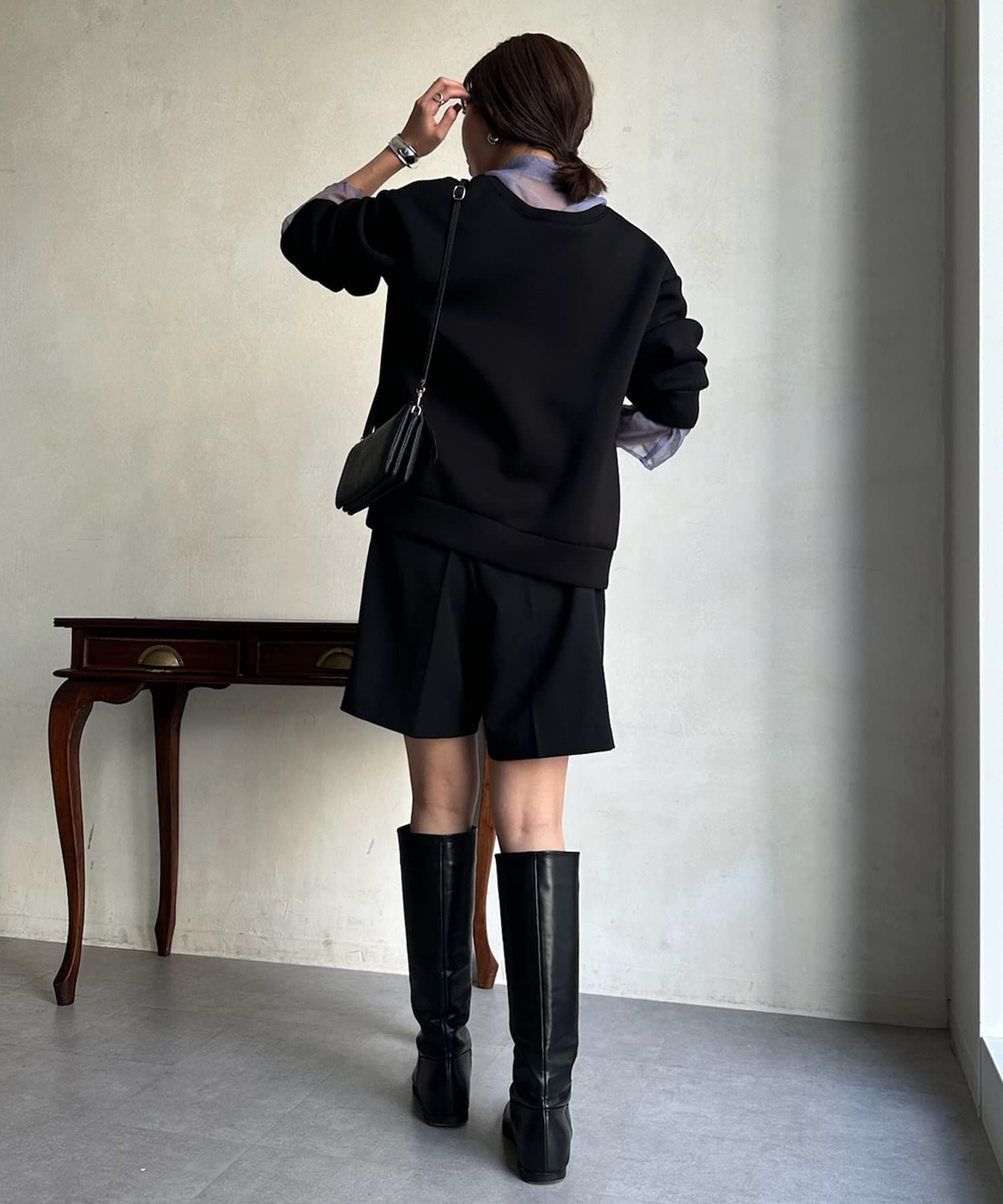 トップスがカジュアルな素材なので、異素材がMixされていて1着でMixコーデが叶いますよ。