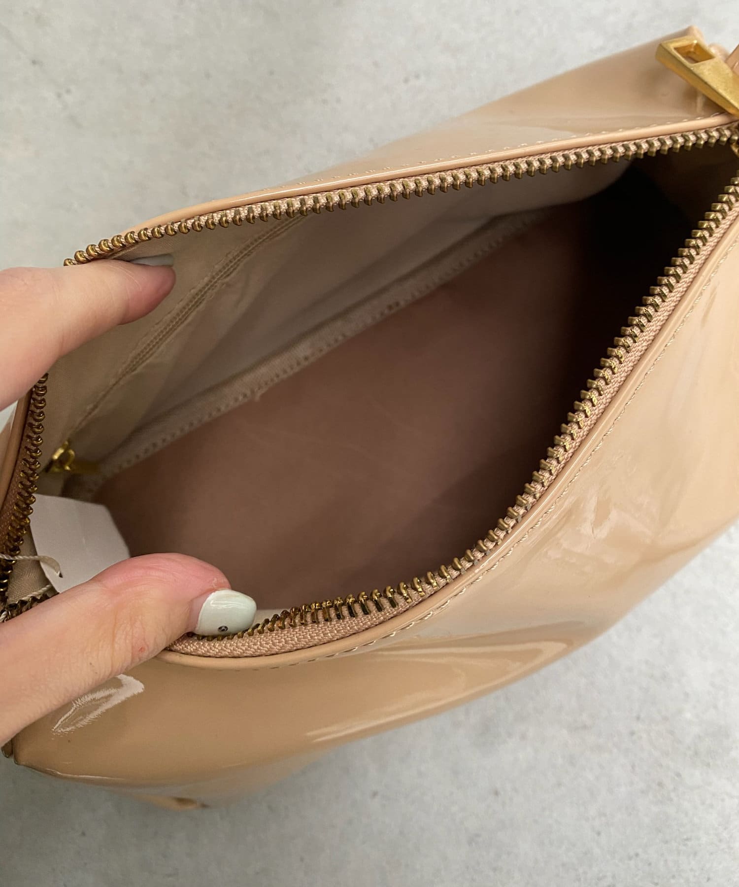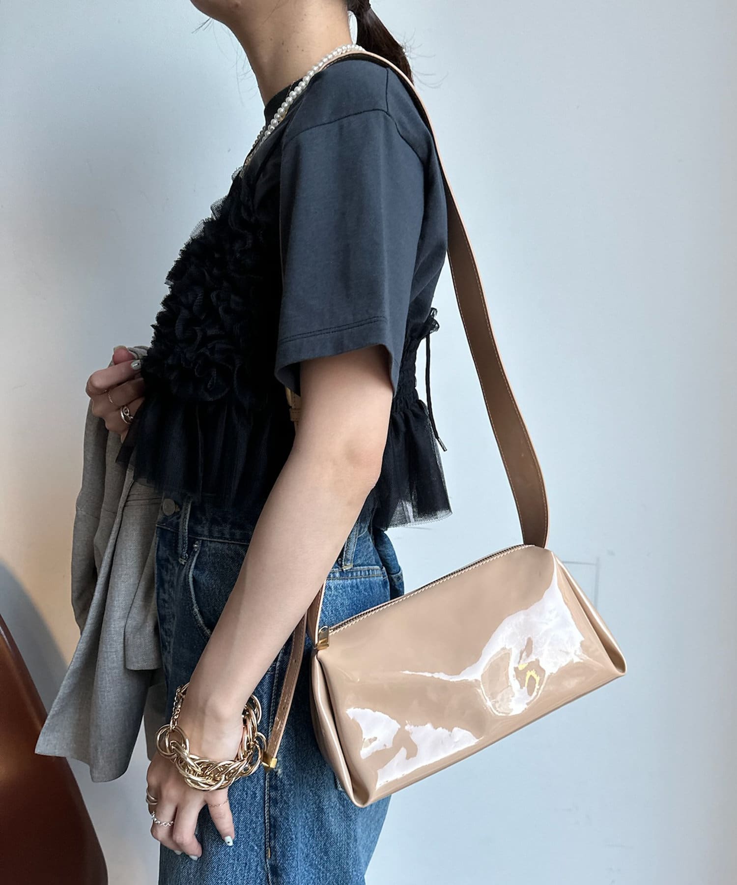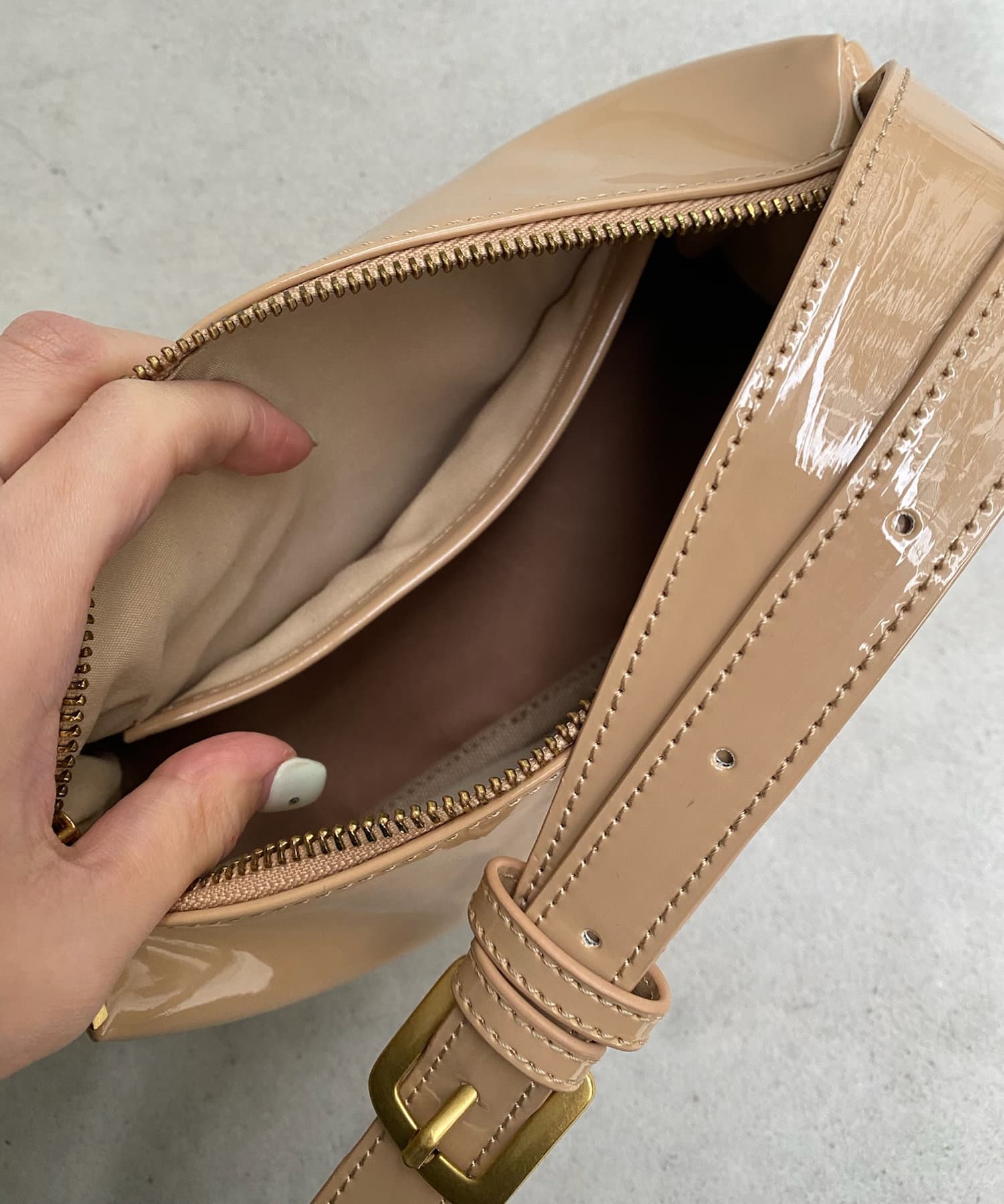 ベージュはエナメル素材になっているので、コーデのアクセントに!