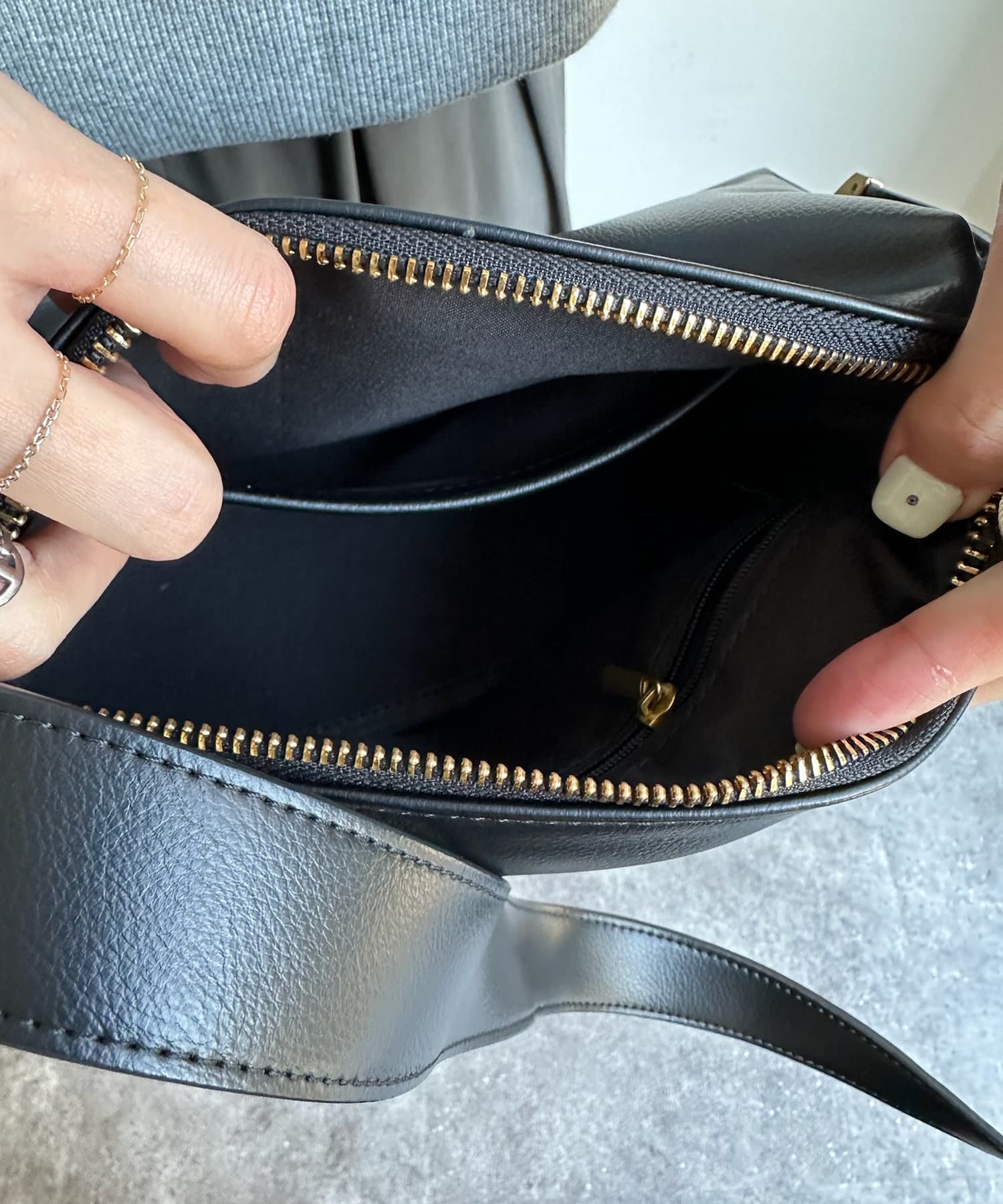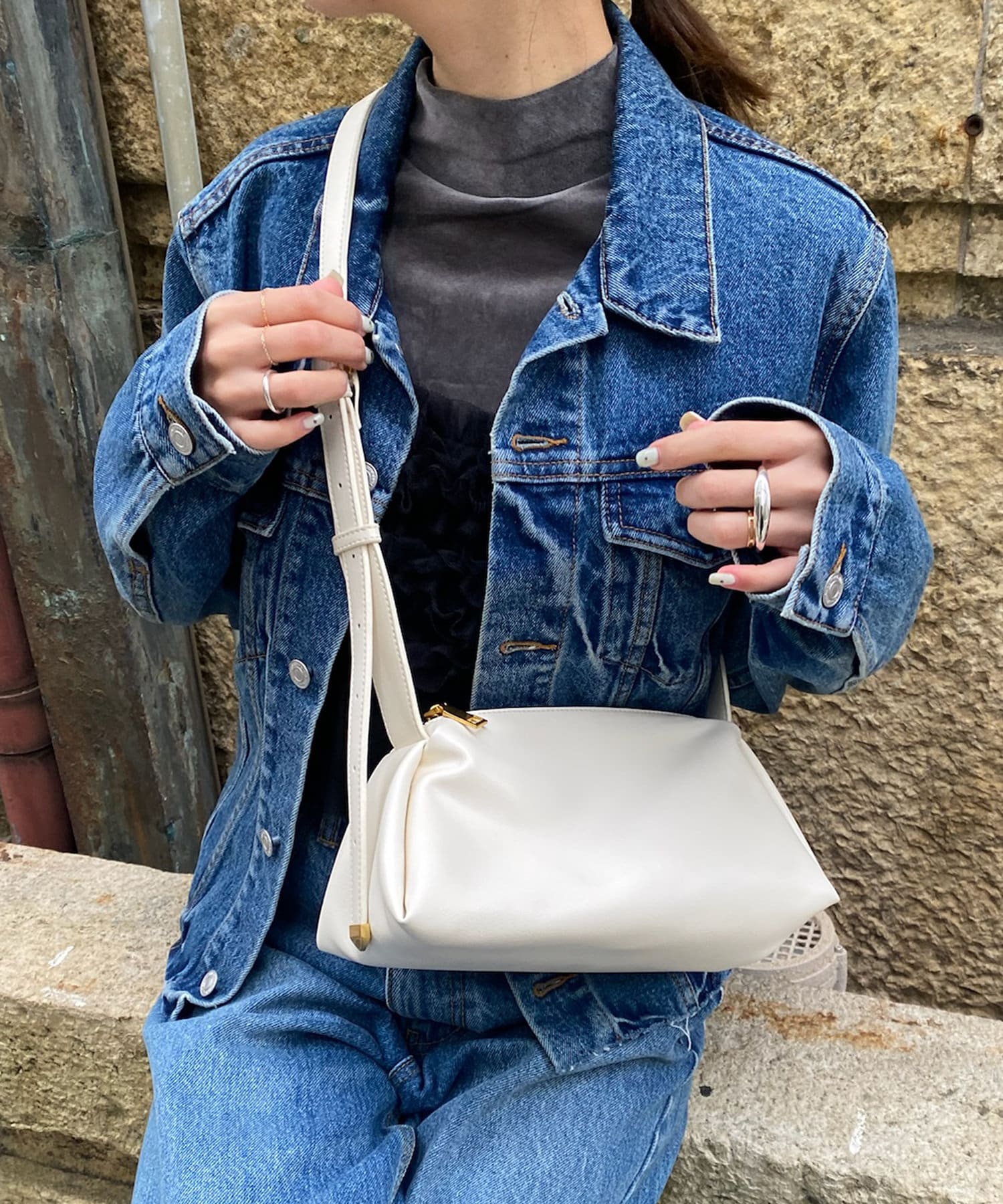 肩にかけたり、斜め掛けもできる長さなので実用性も抜群◎