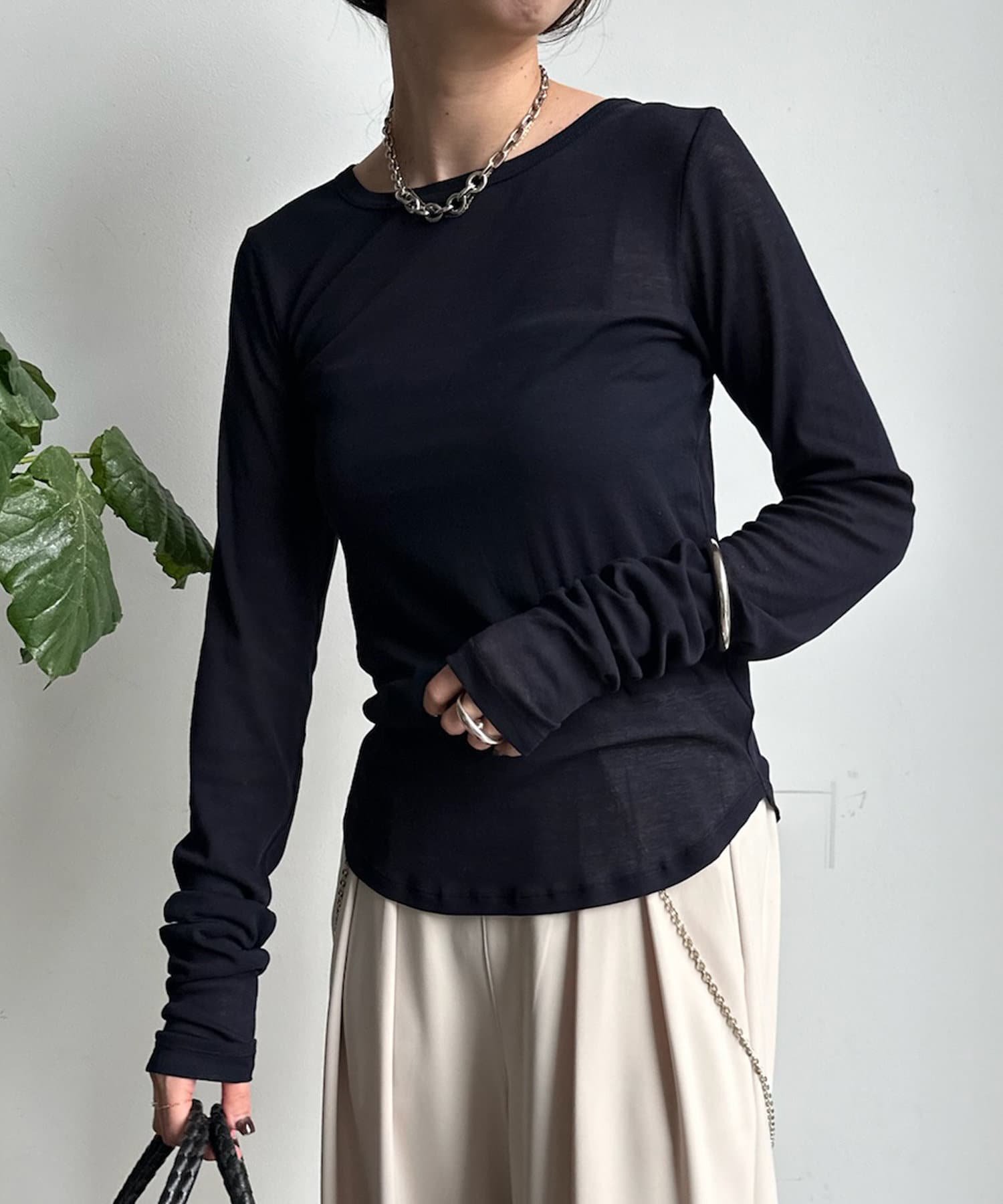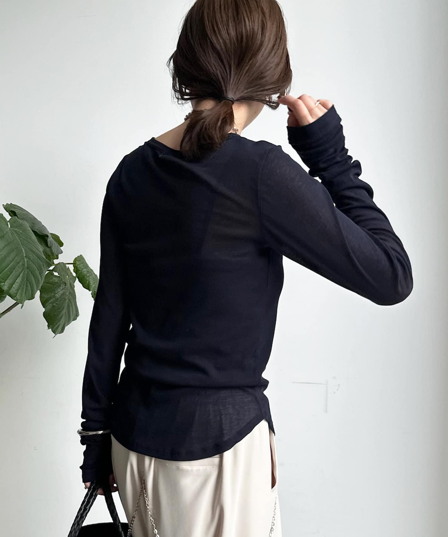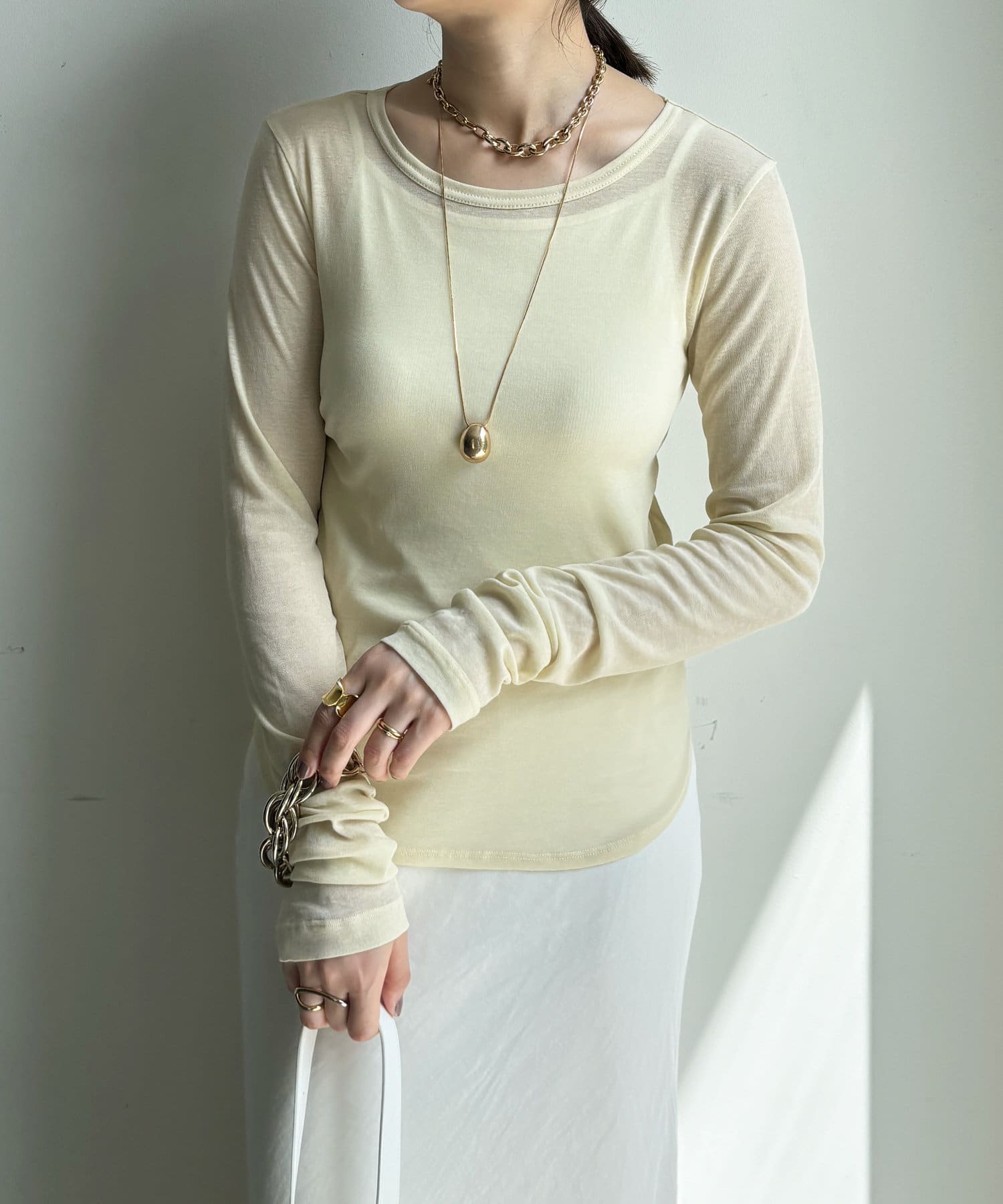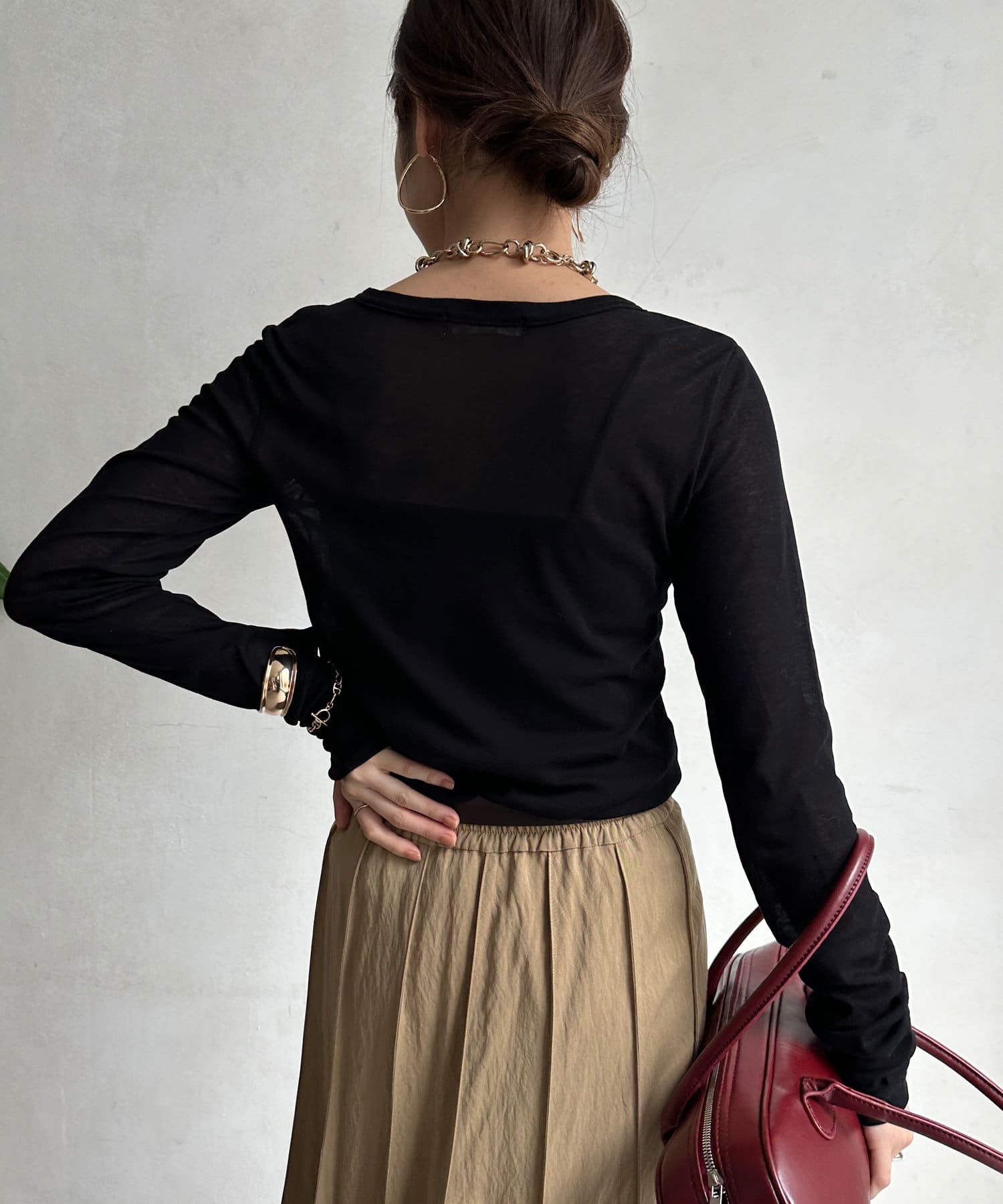 程よいシアー感がきれいで、1枚着としてもレイヤードとしても活躍してくれます。