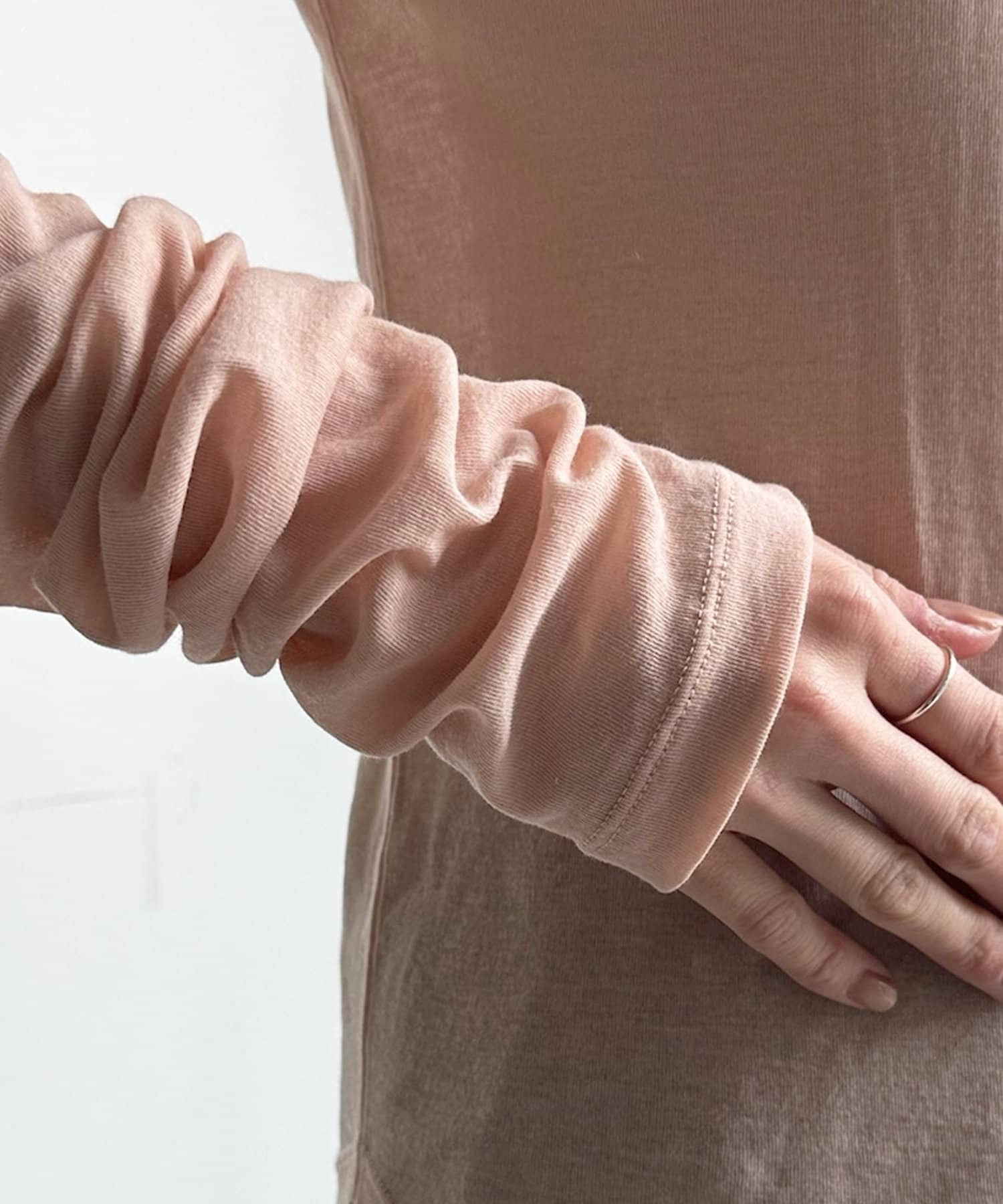 お袖は長めに仕上げることで、袖口にくしゅくしゅっと溜まるシルエットがポイントとなってくれます。