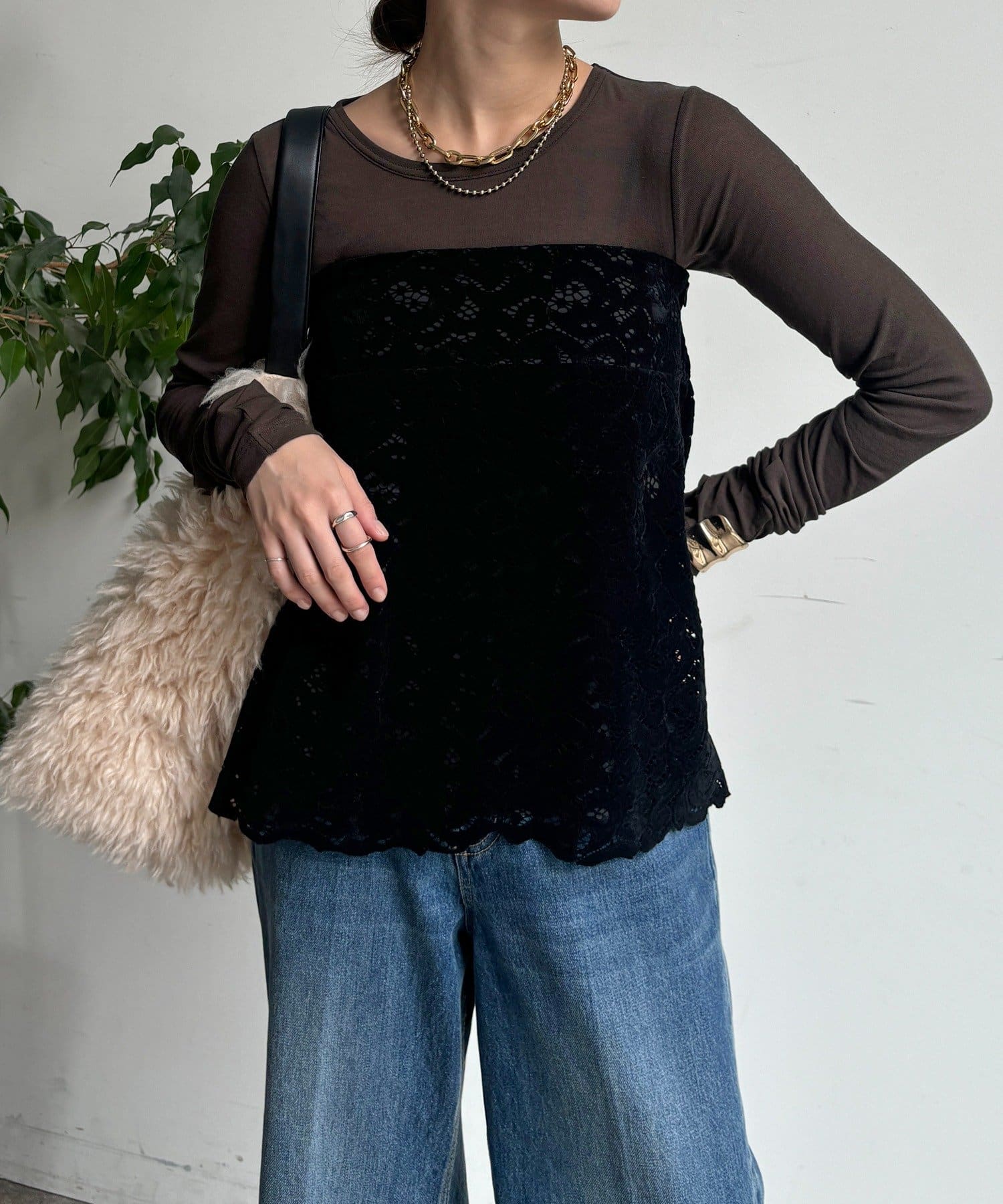 長めのお袖や上品なシアー感で抜け感のある印象に