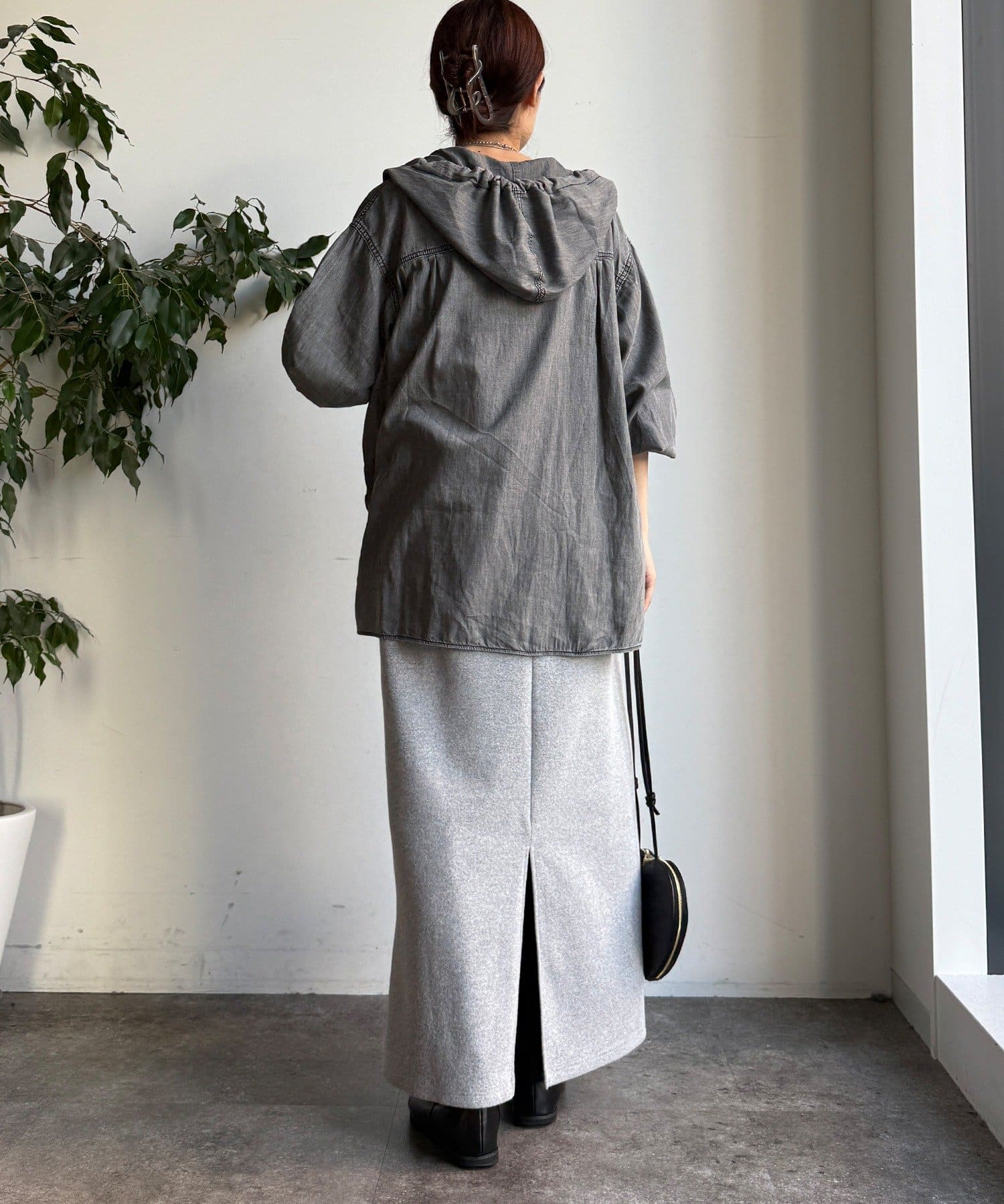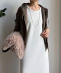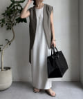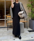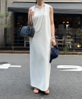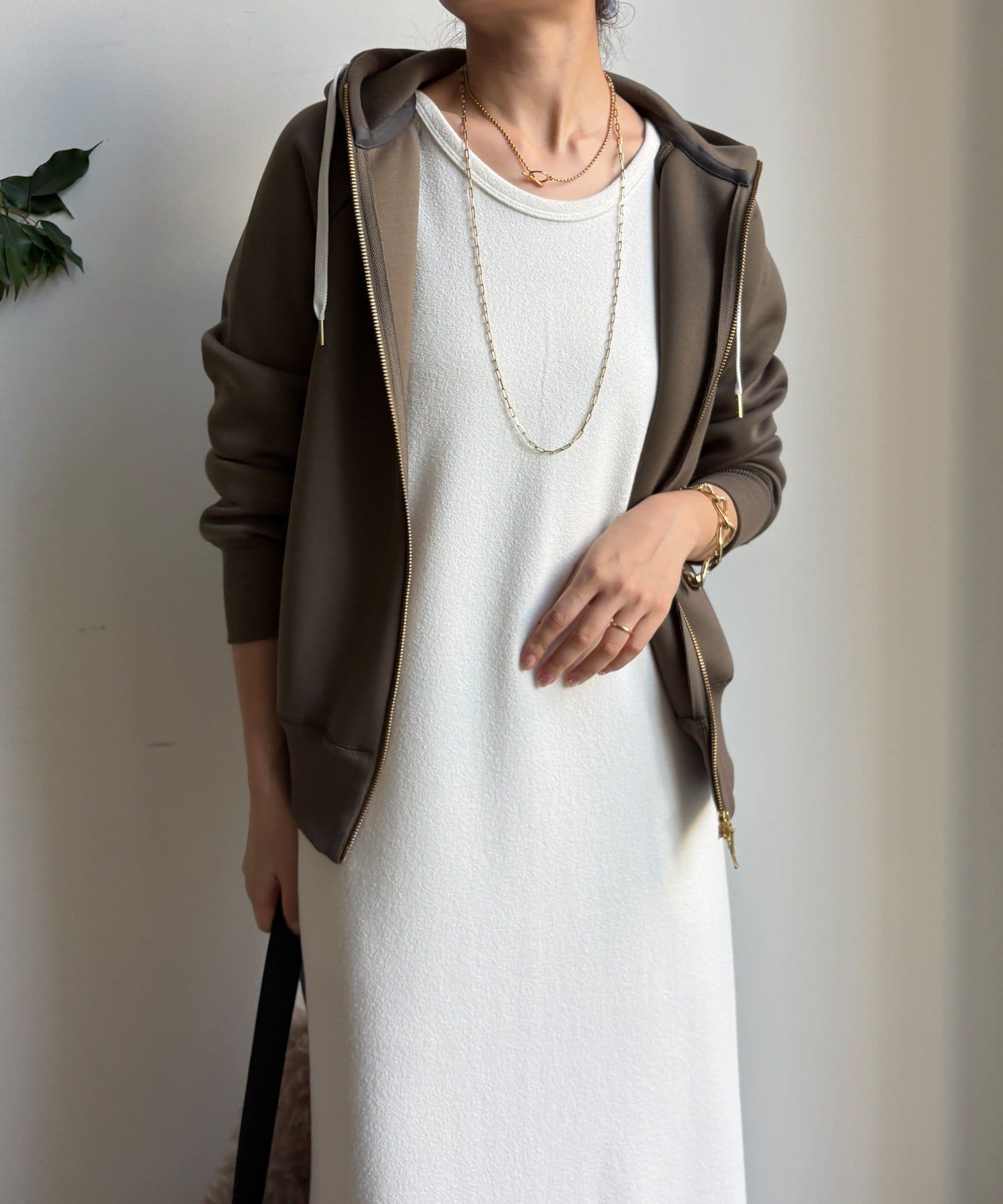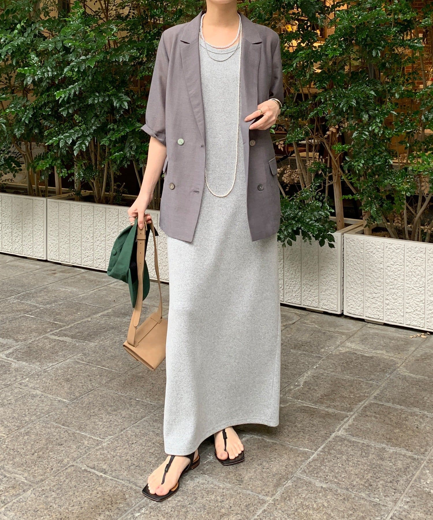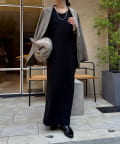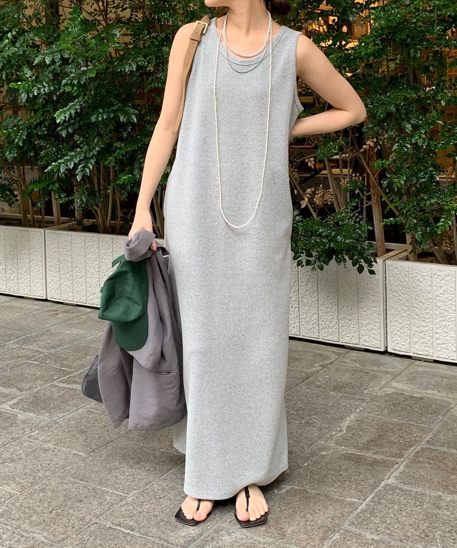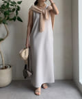 こういうワンピはどうしてものっぺりしますがこちらは生地が厚めで、長いけど良いです。リネンやデニムのシャツと合わせたい。