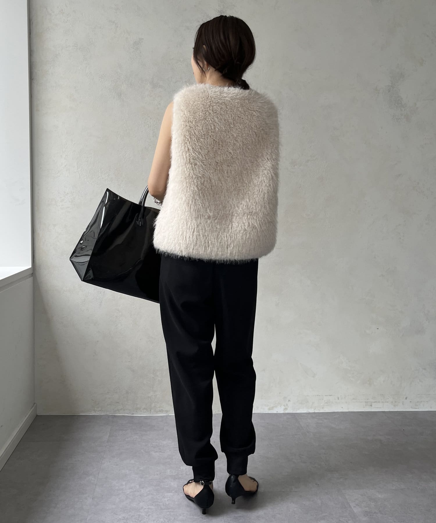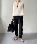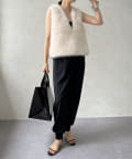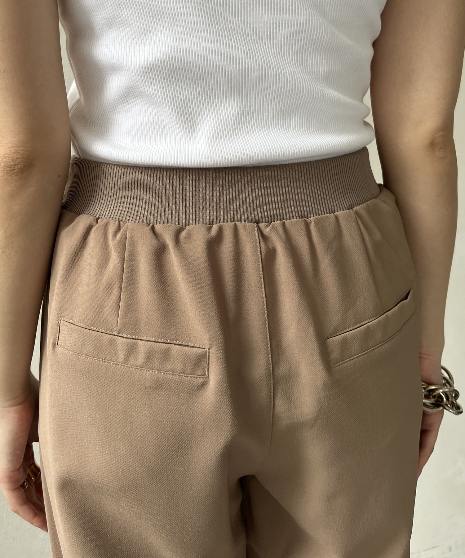 裾のリブ切替で、脚をすっきりと見せてくれるので、ボリューム感のあるブラウスなどともバランス◎