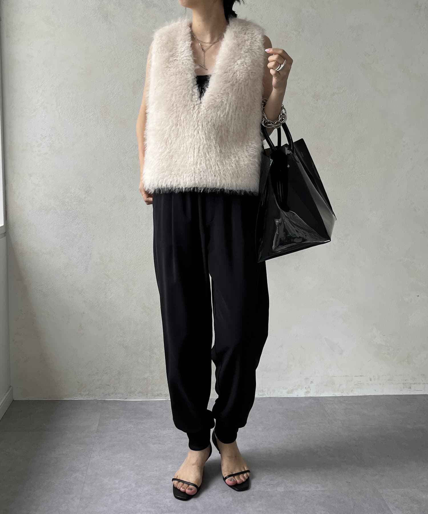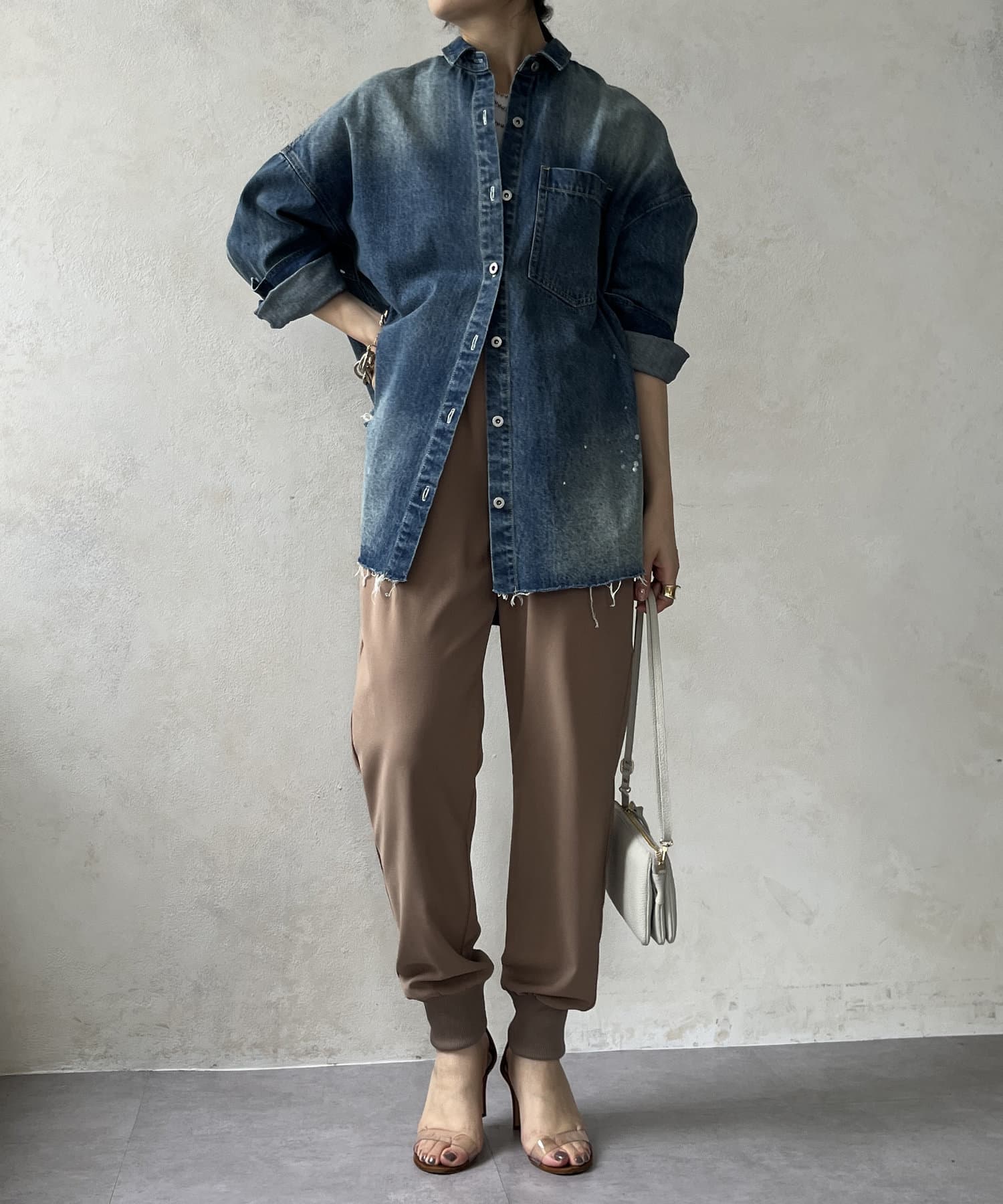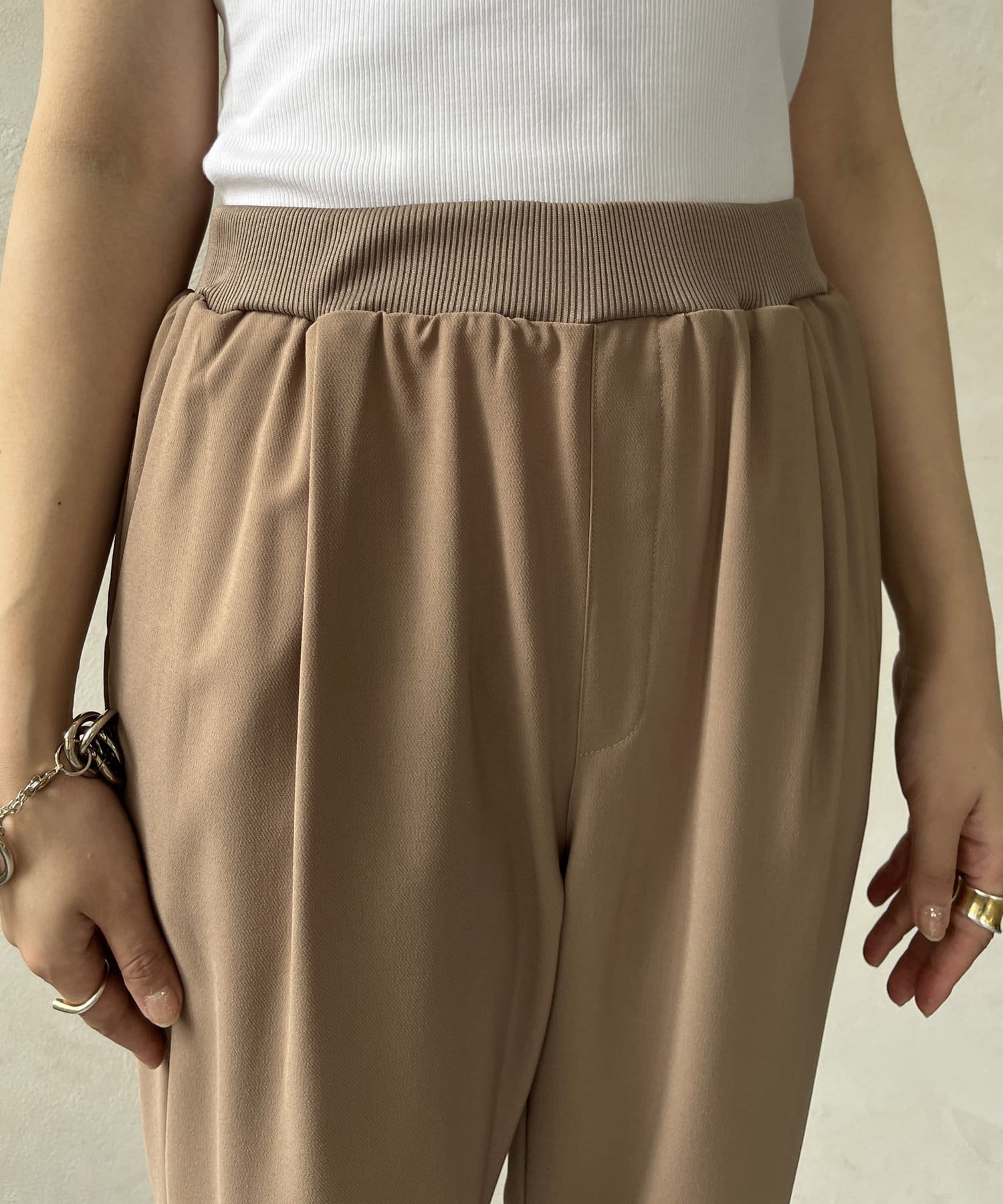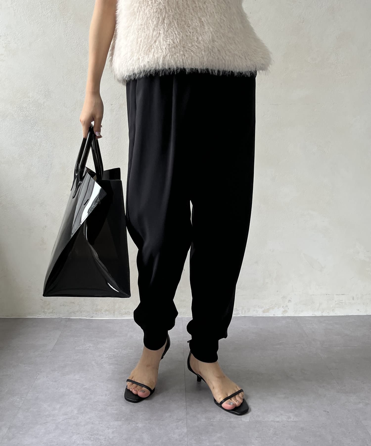 落ち感がありテロっとした素材で仕上げたジョグパンツは、楽なのにおしゃれな印象を与えてくれるトレンドシルエット。