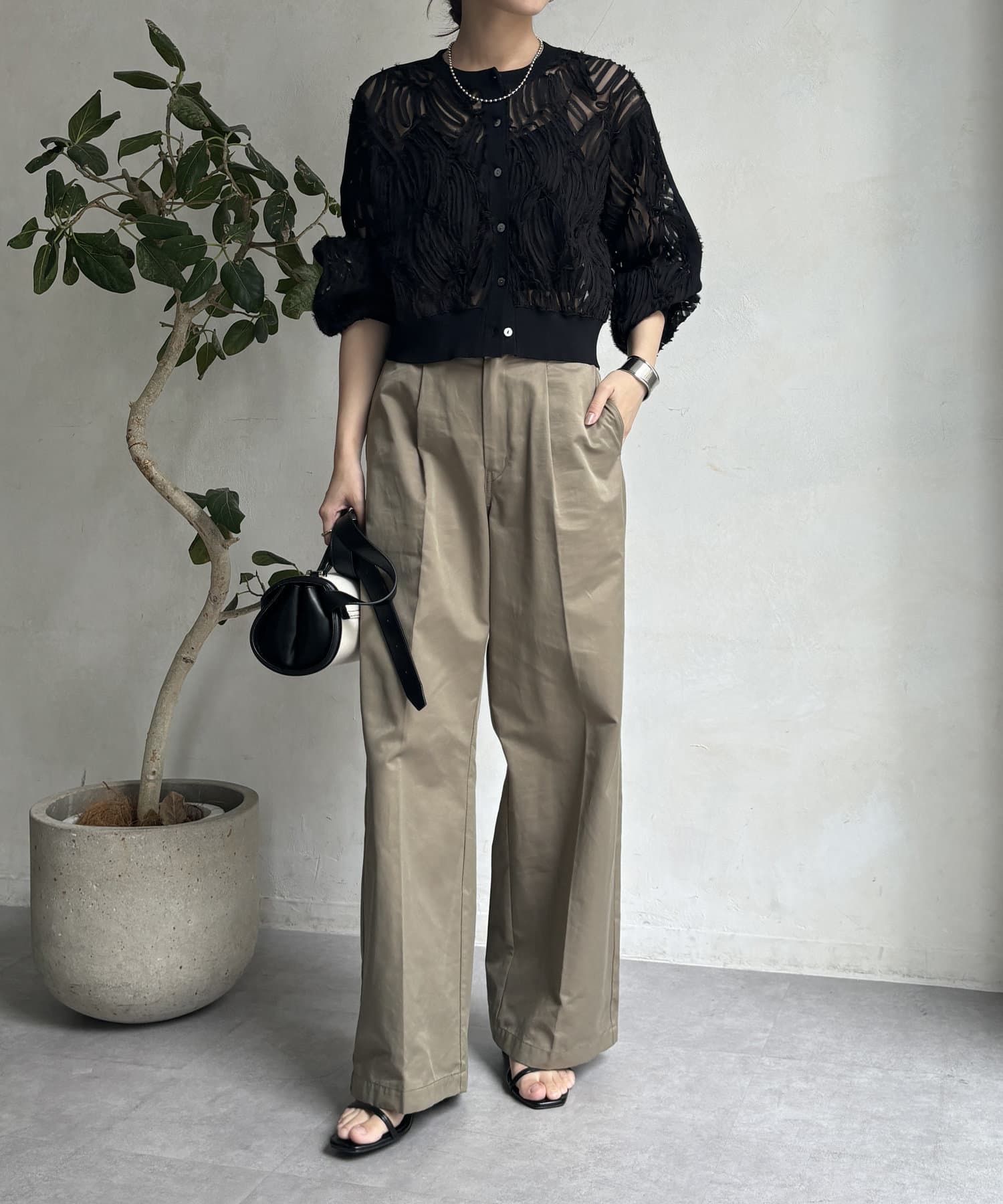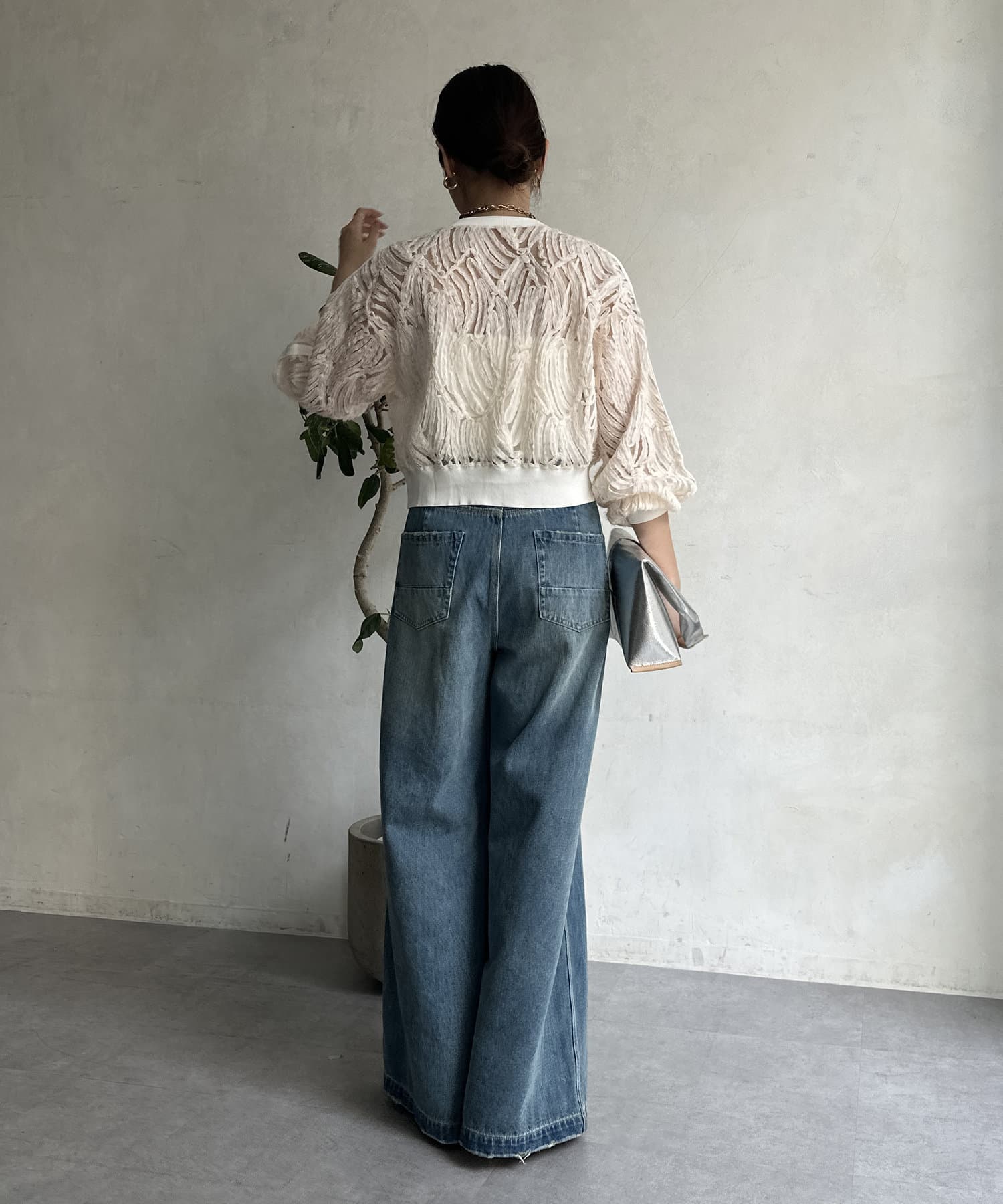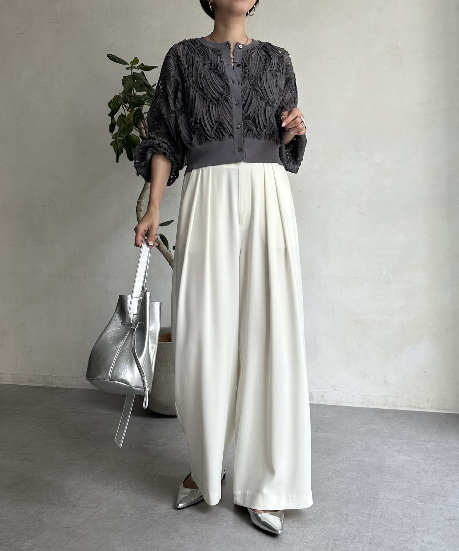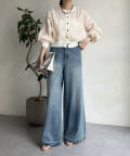 ボリュームのあるボトムスと合わせるのがおすすめです◎