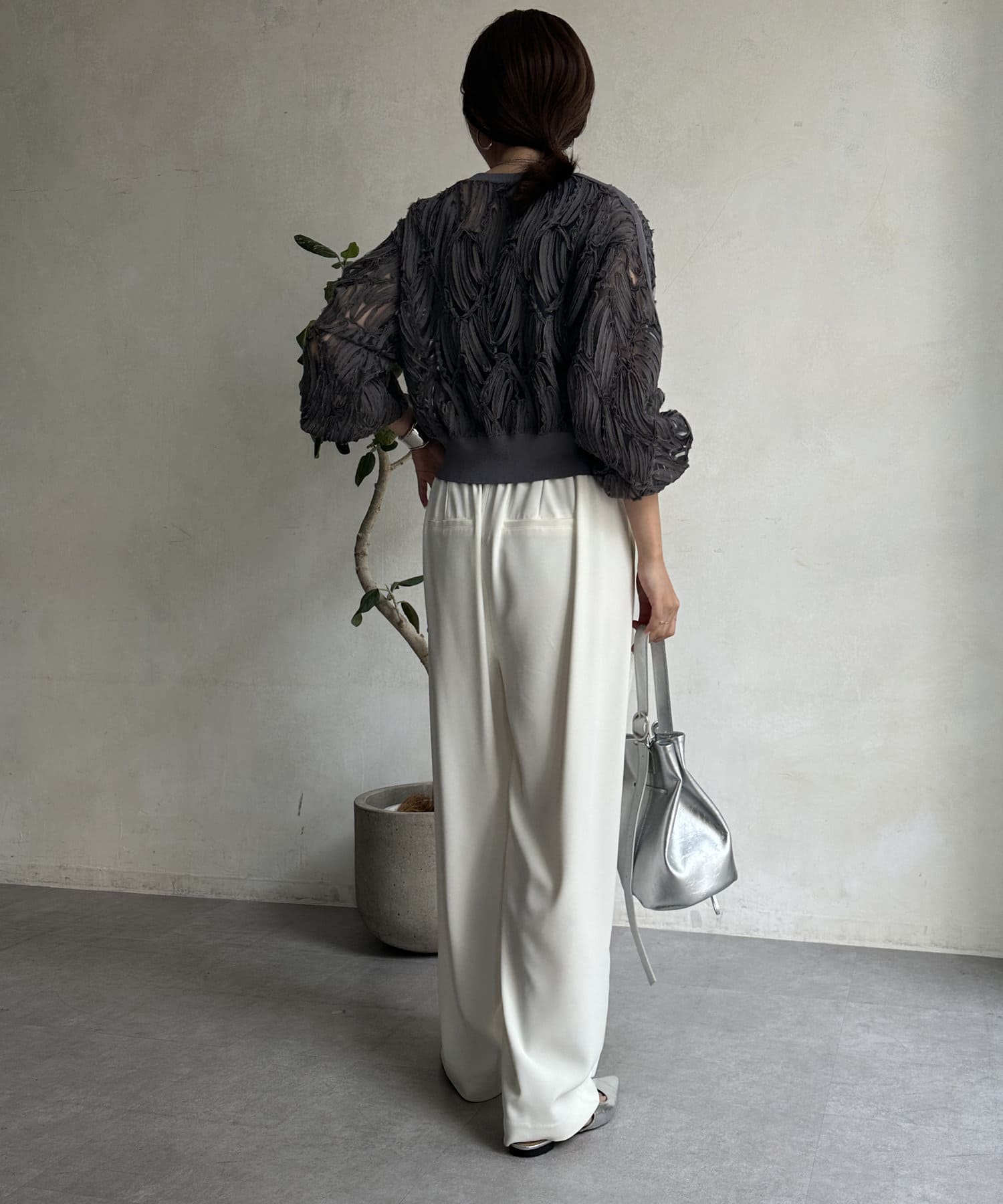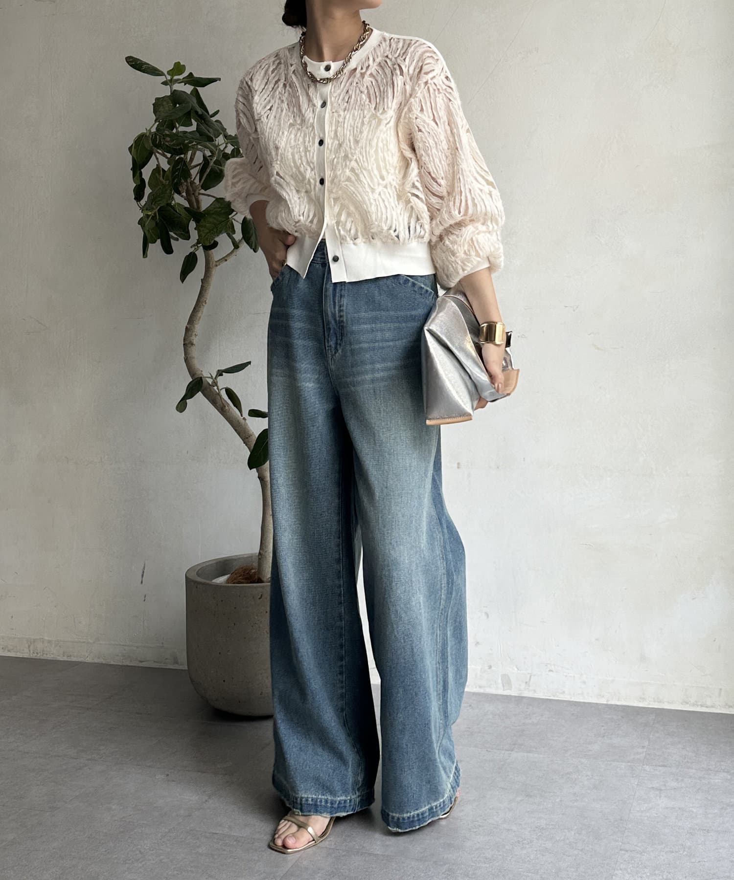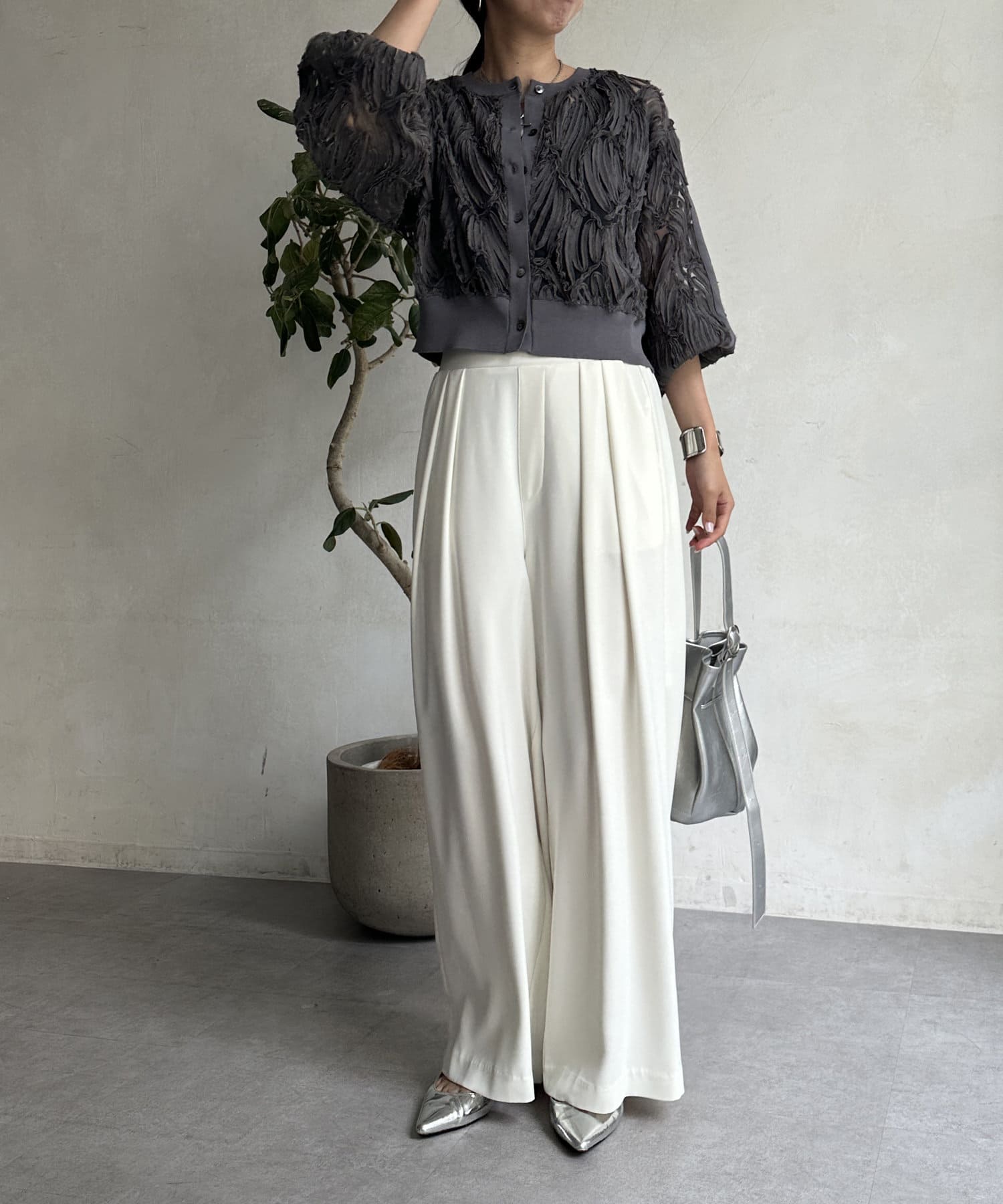ボリュームのあるボトムスと合わせるのがおすすめです◎