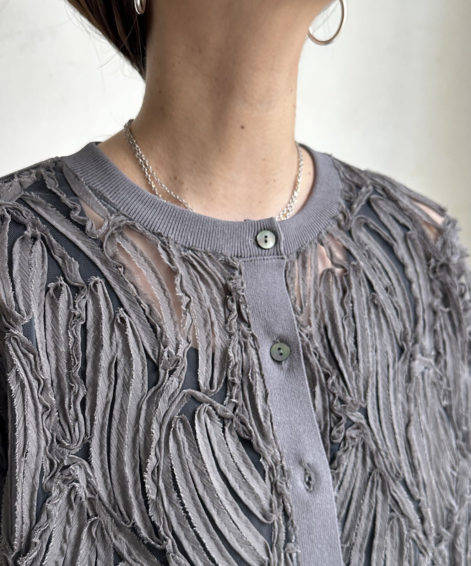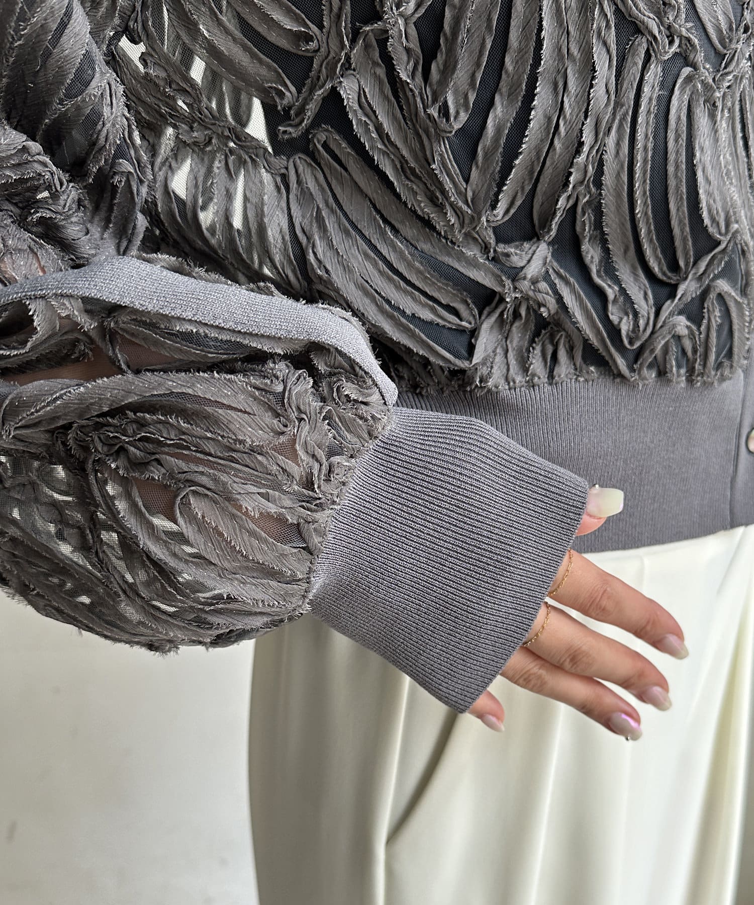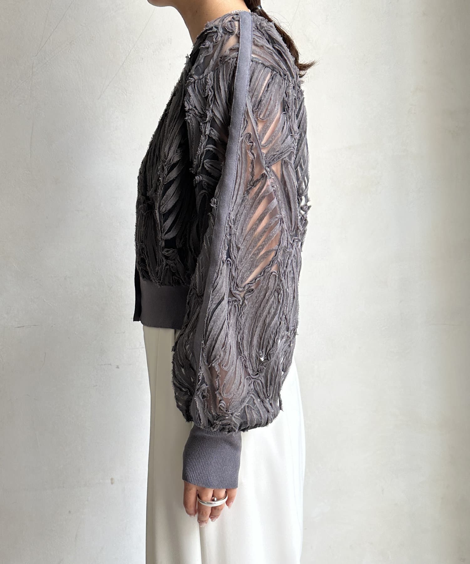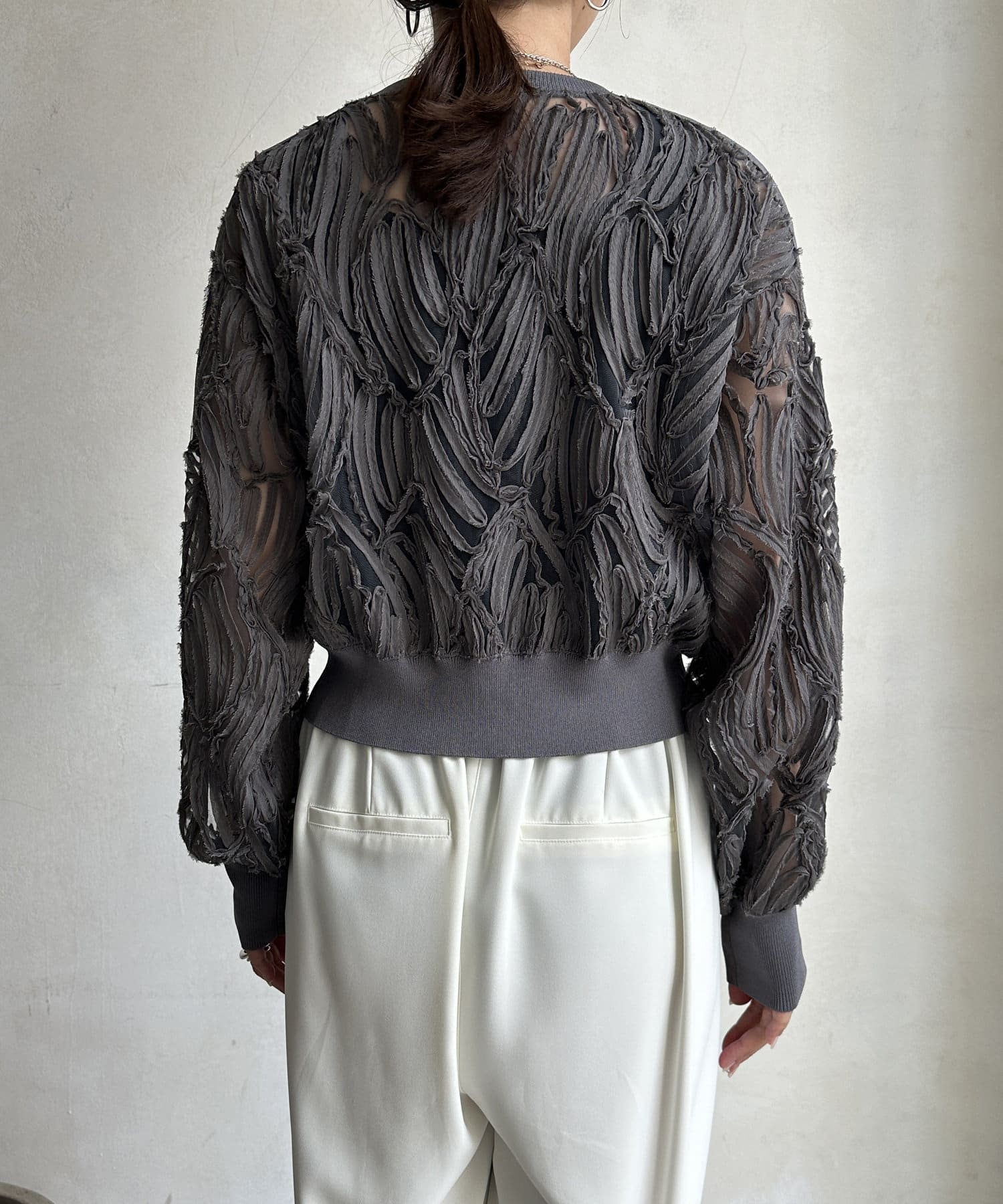ベースの生地は薄手で、透け感があるので、