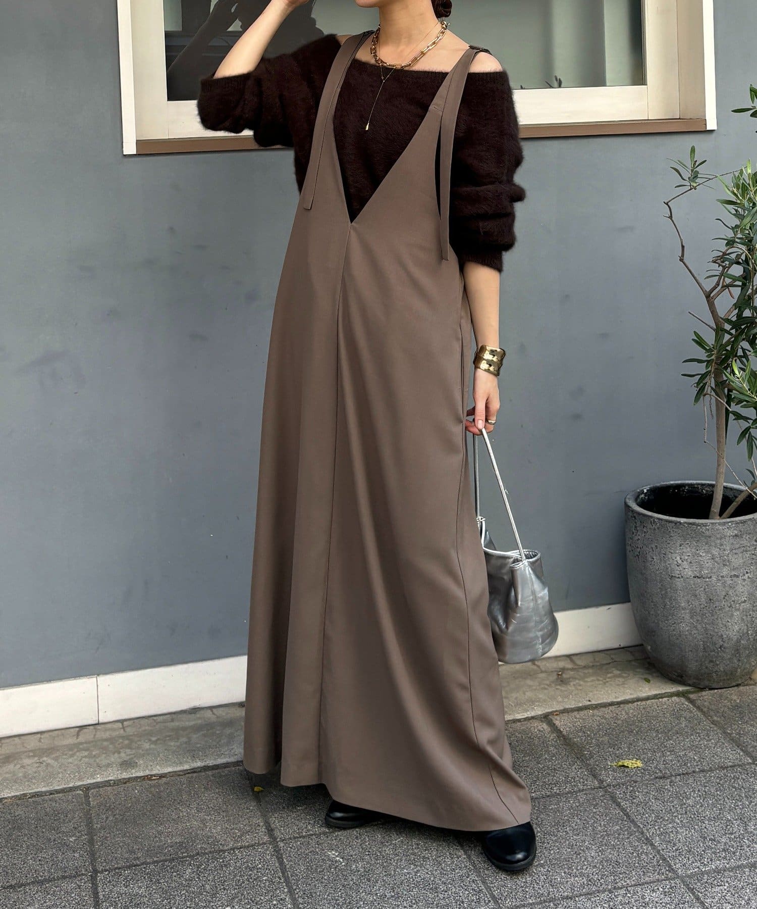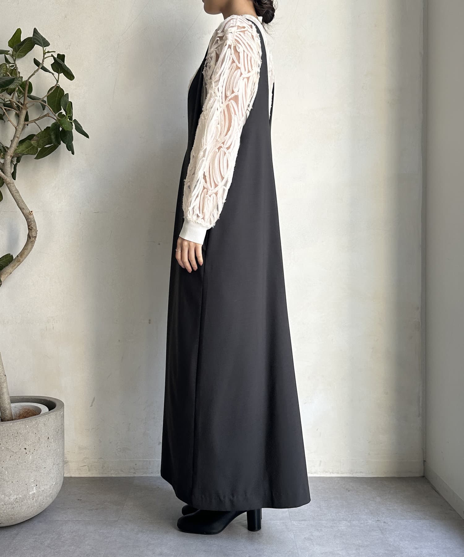 落ち感があるので、広がりすぎず大人っぽい印象でお召しいただけます。