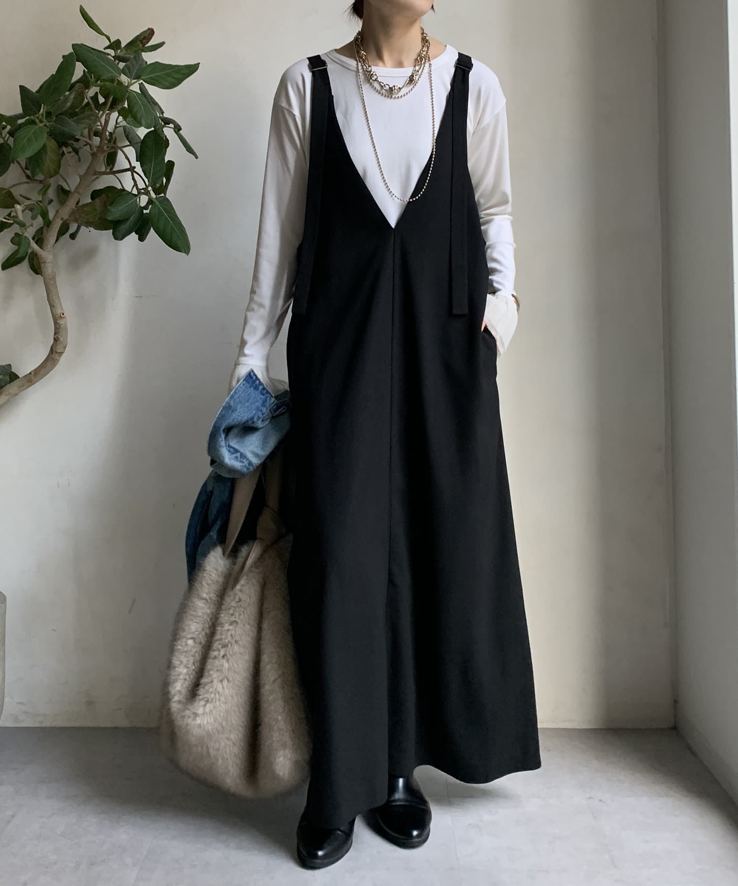【前後2WAYで着られる】深Vワンピース