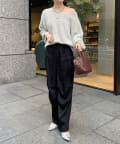 柔らかさのある生地と、ひざ下から施されているギャザーデザインで