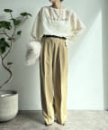カジュアルになりすぎない素材が大人の女性をさりげなくプラスしてくれます。