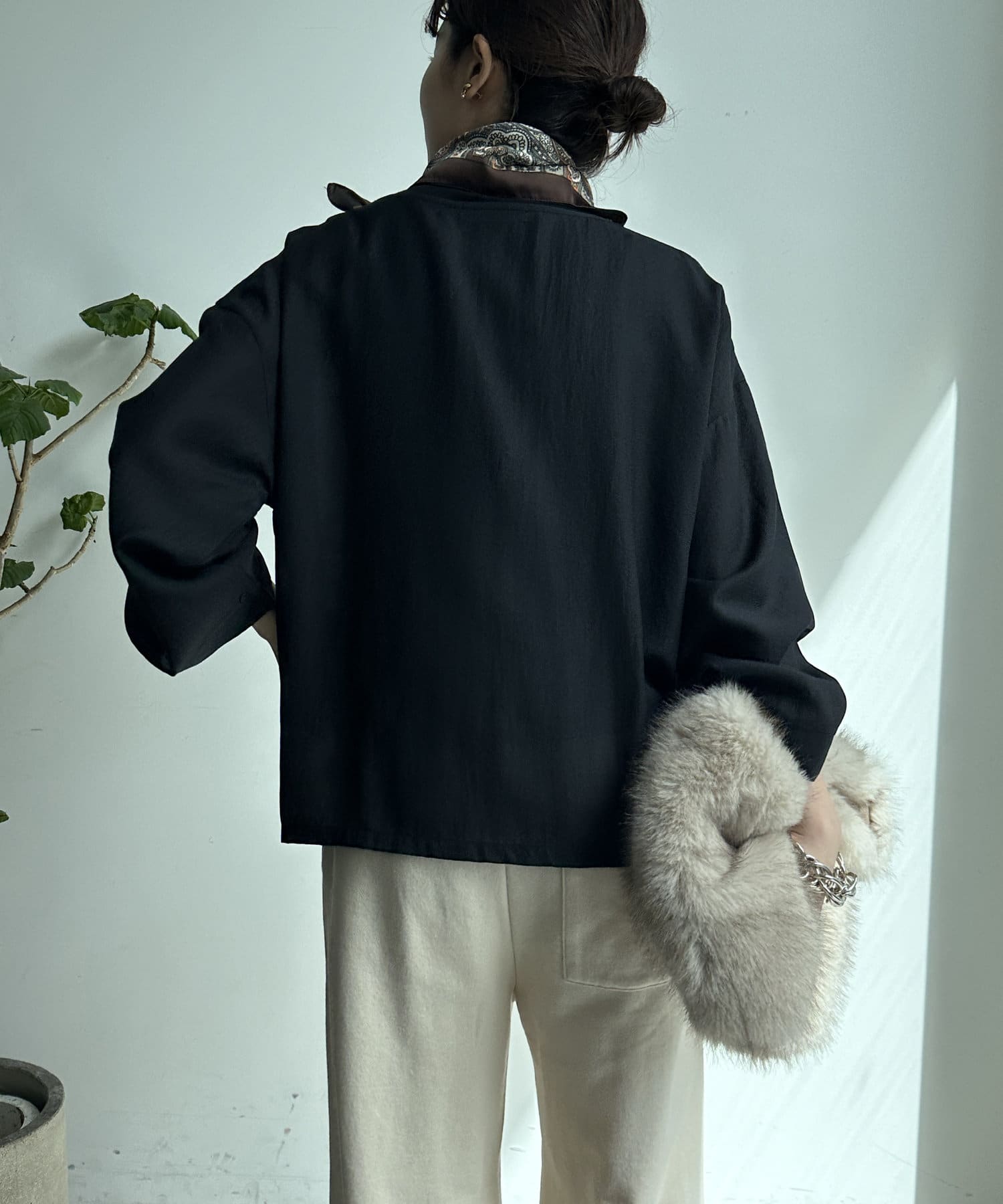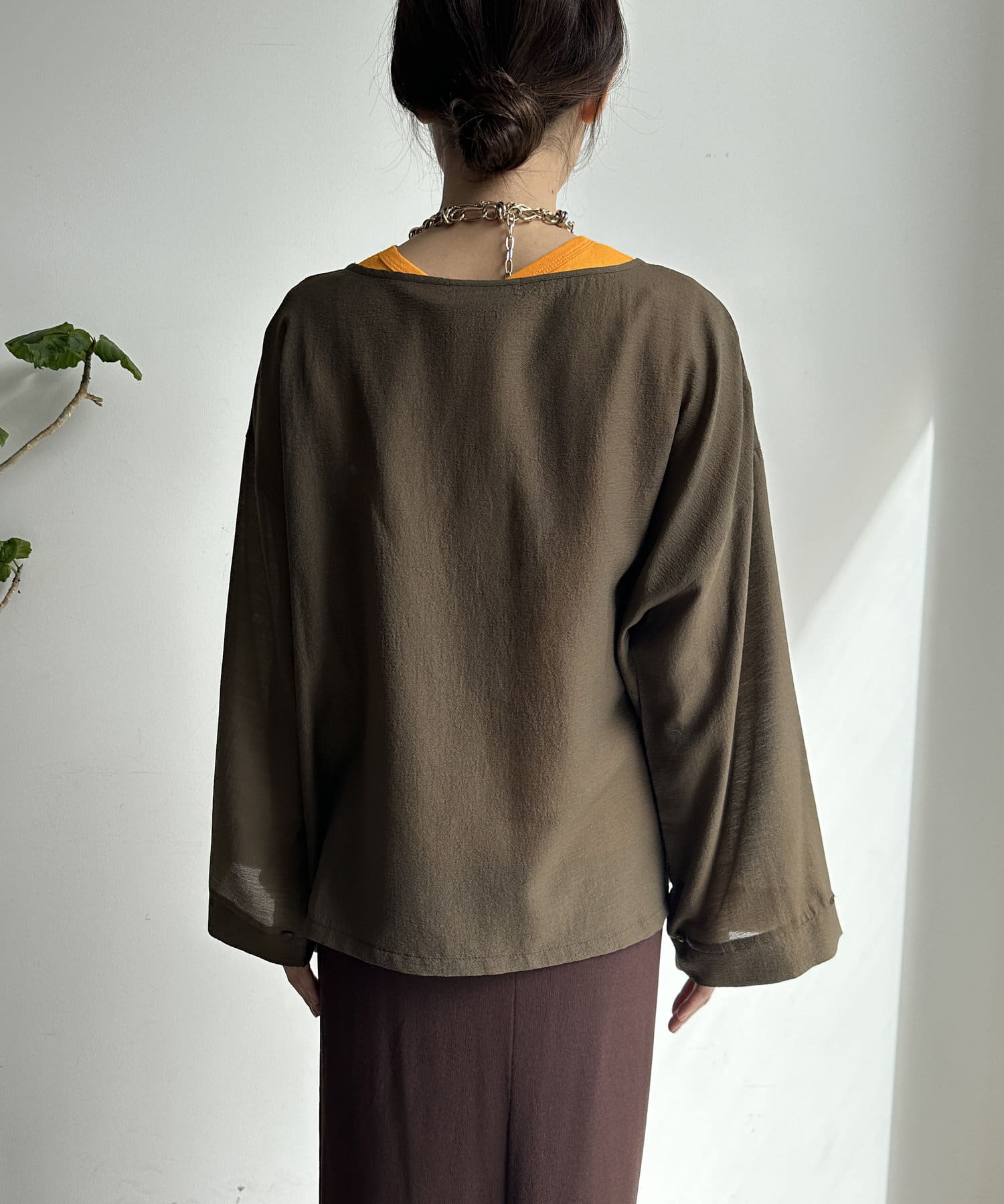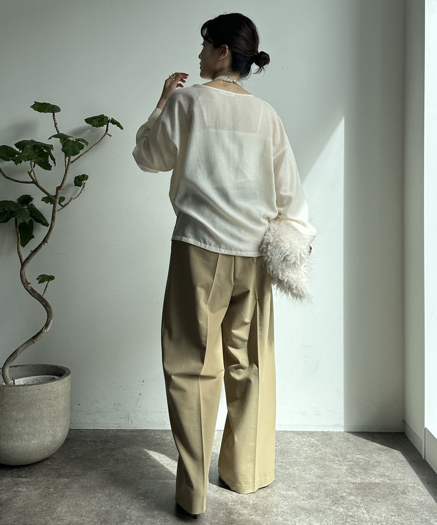 ボタンを外せばゆったりとした袖元になり、ボタンをつければ、くしゃとメリハリのあるシルエットに!