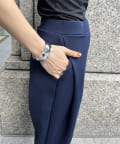 サイドから前方向に施されたタックデザインが立体感と、美脚効果をプラスしてくれますよ◎