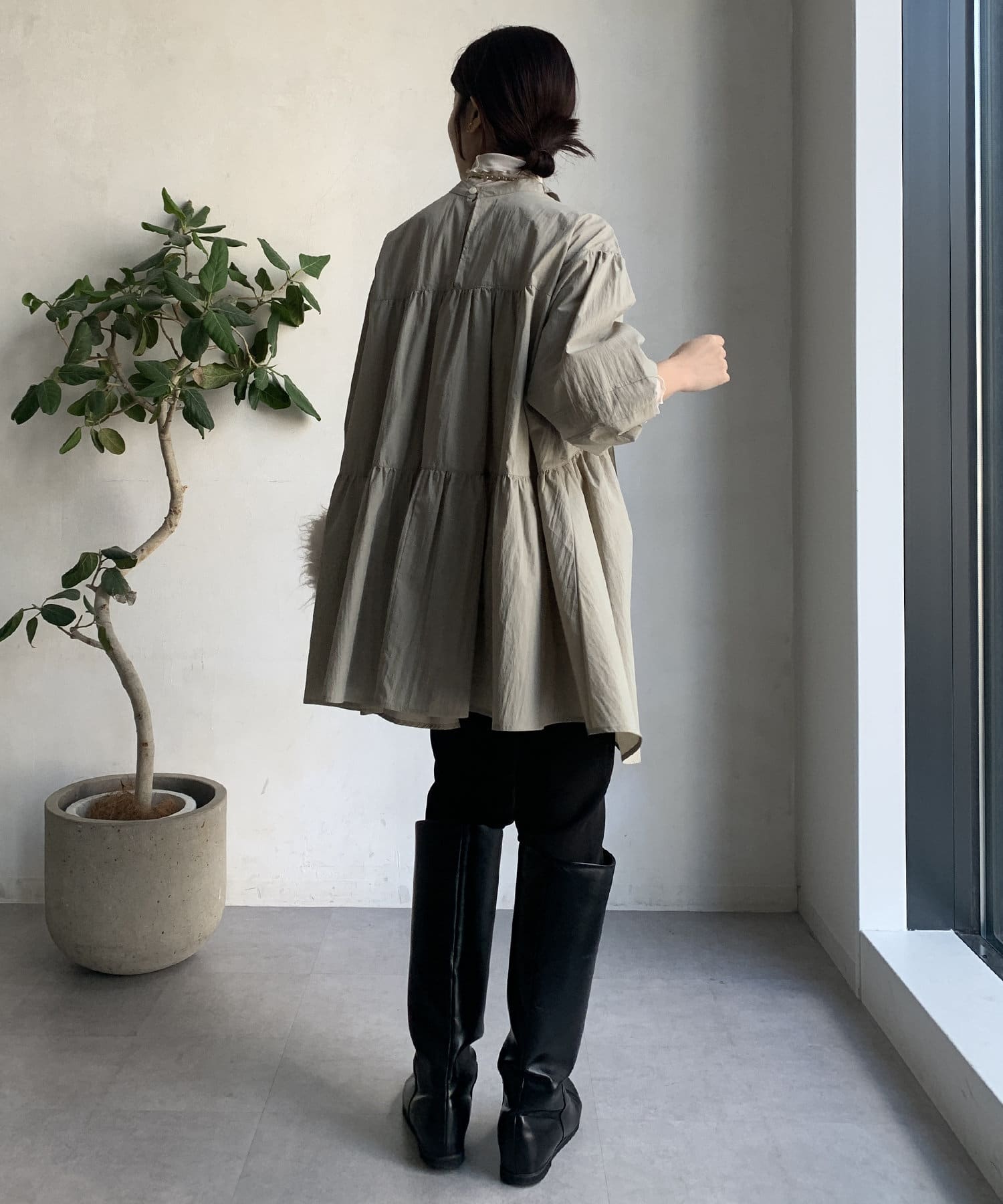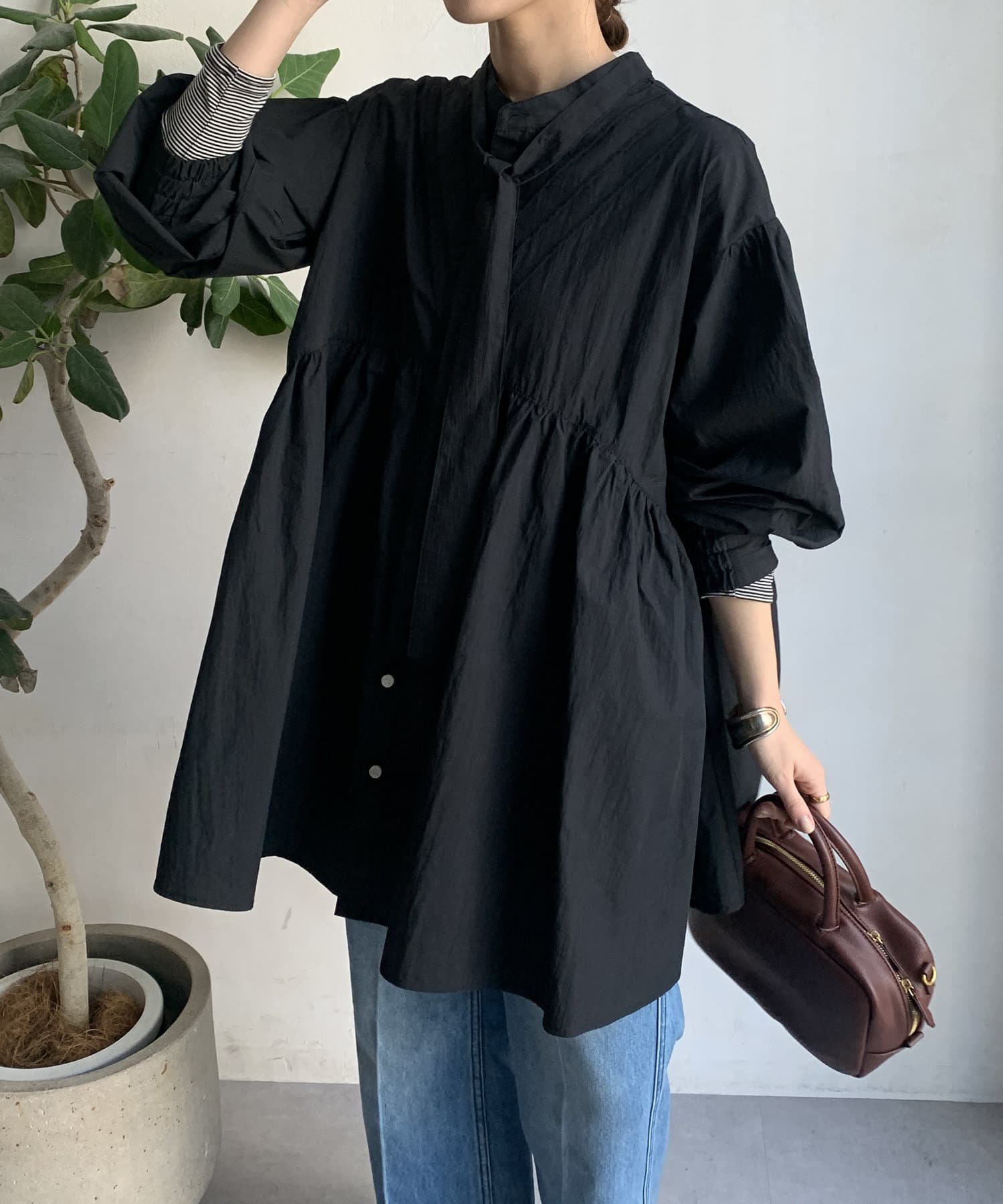 切替やさりげないギャザーで生み出すふんわりとしたシルエットが