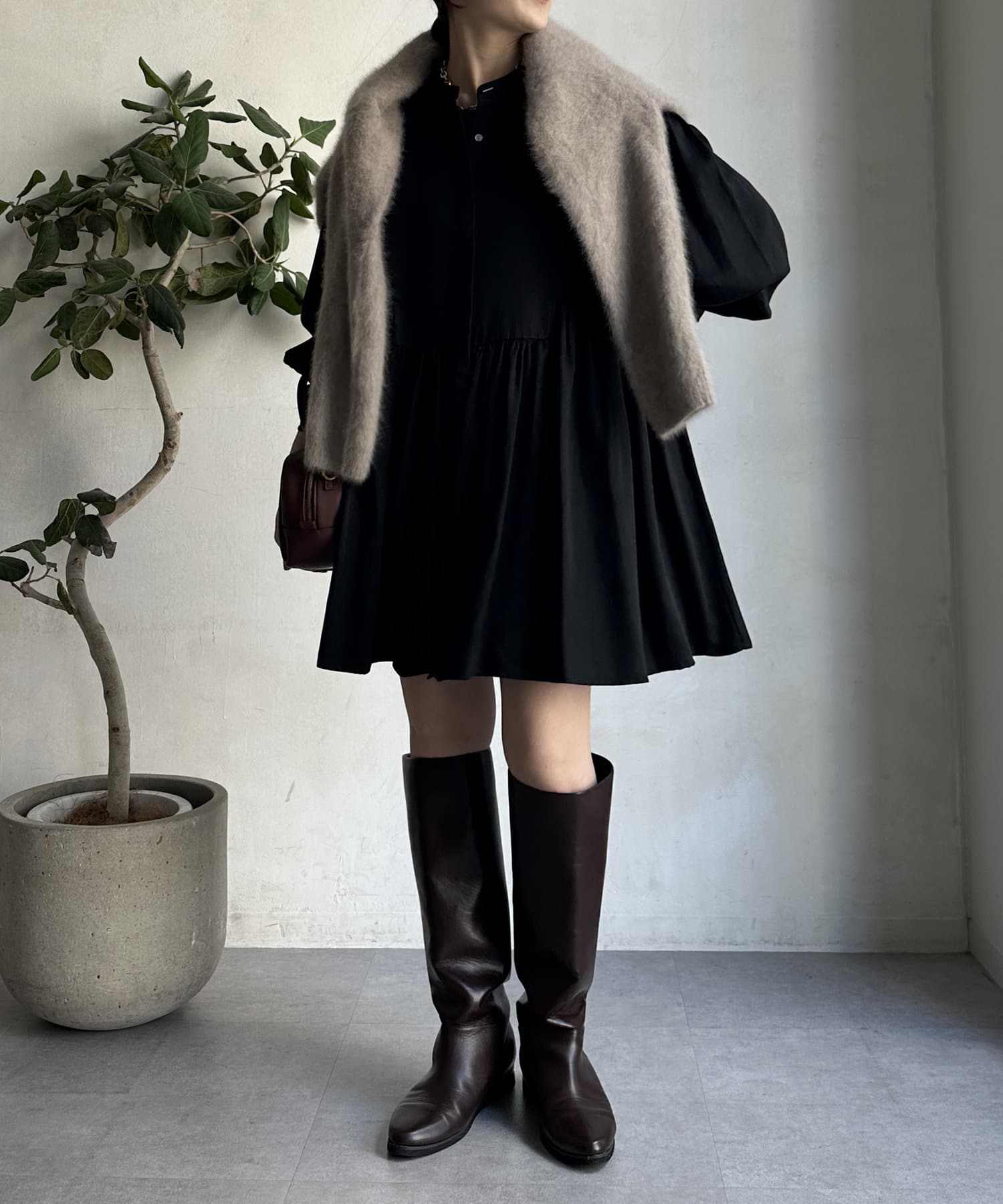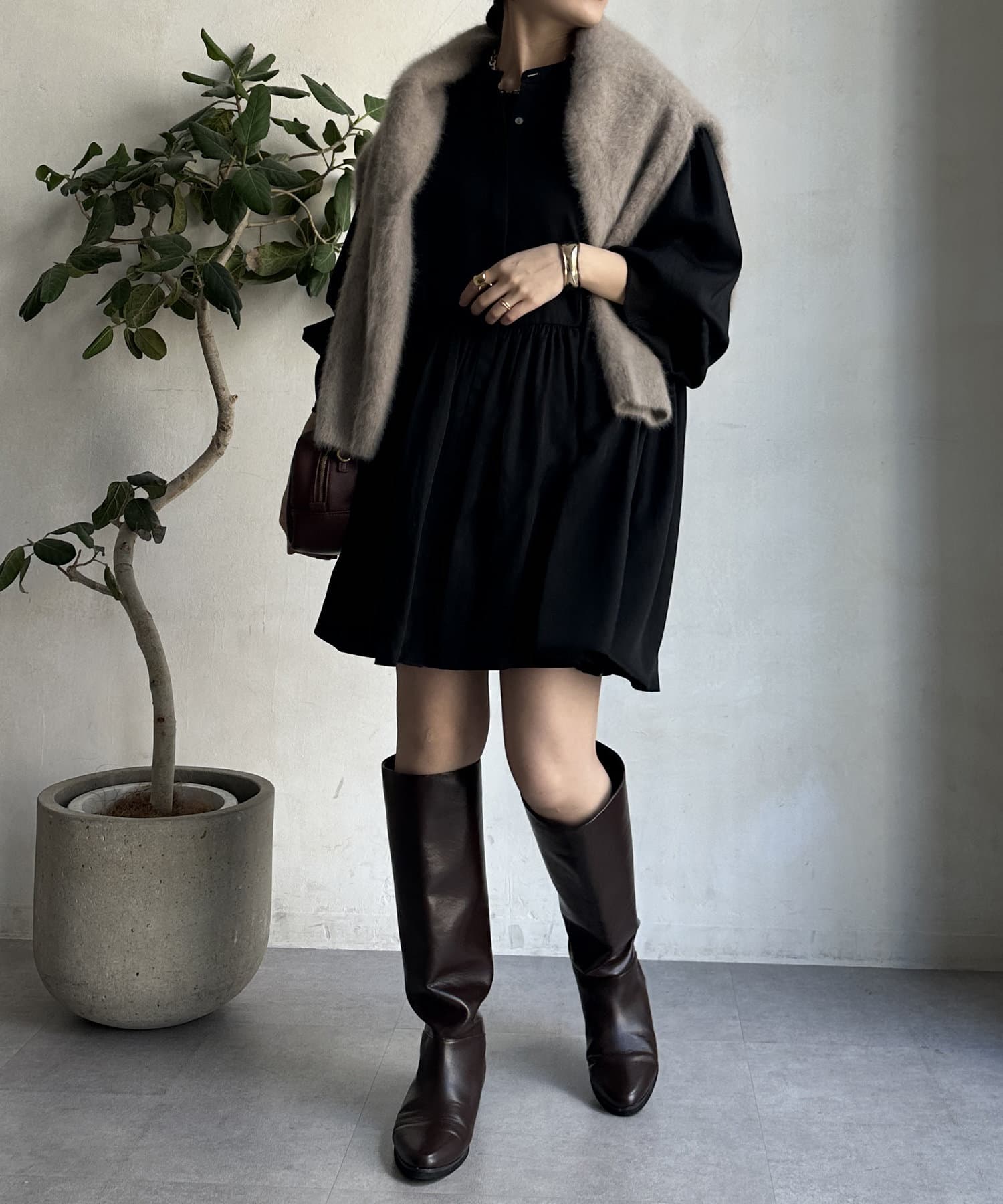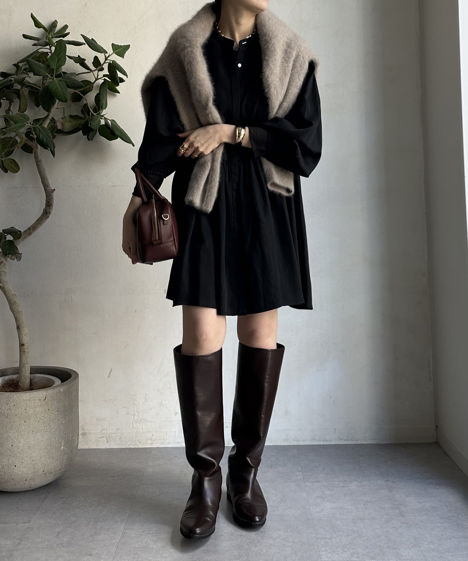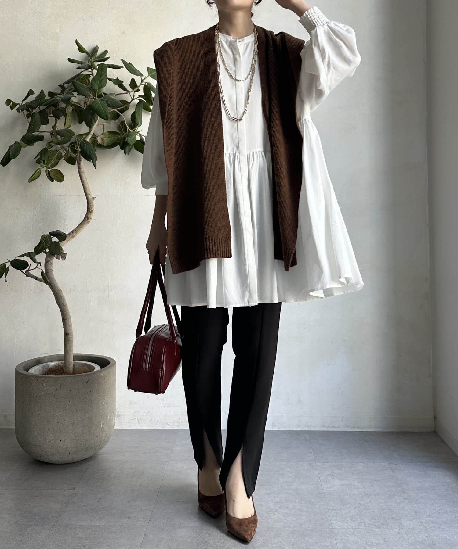 ロングブーツと合わせたり、細みのパンツスタイルとも相性抜群のトップスです!