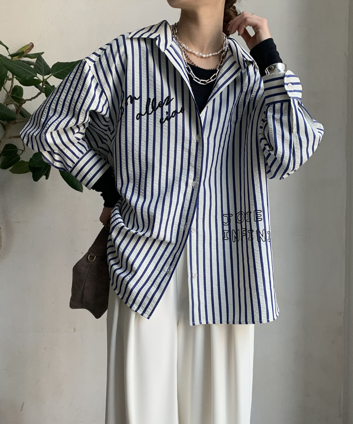 【着映え◎/WEB限定】ロゴストライプシャツ