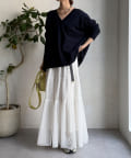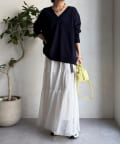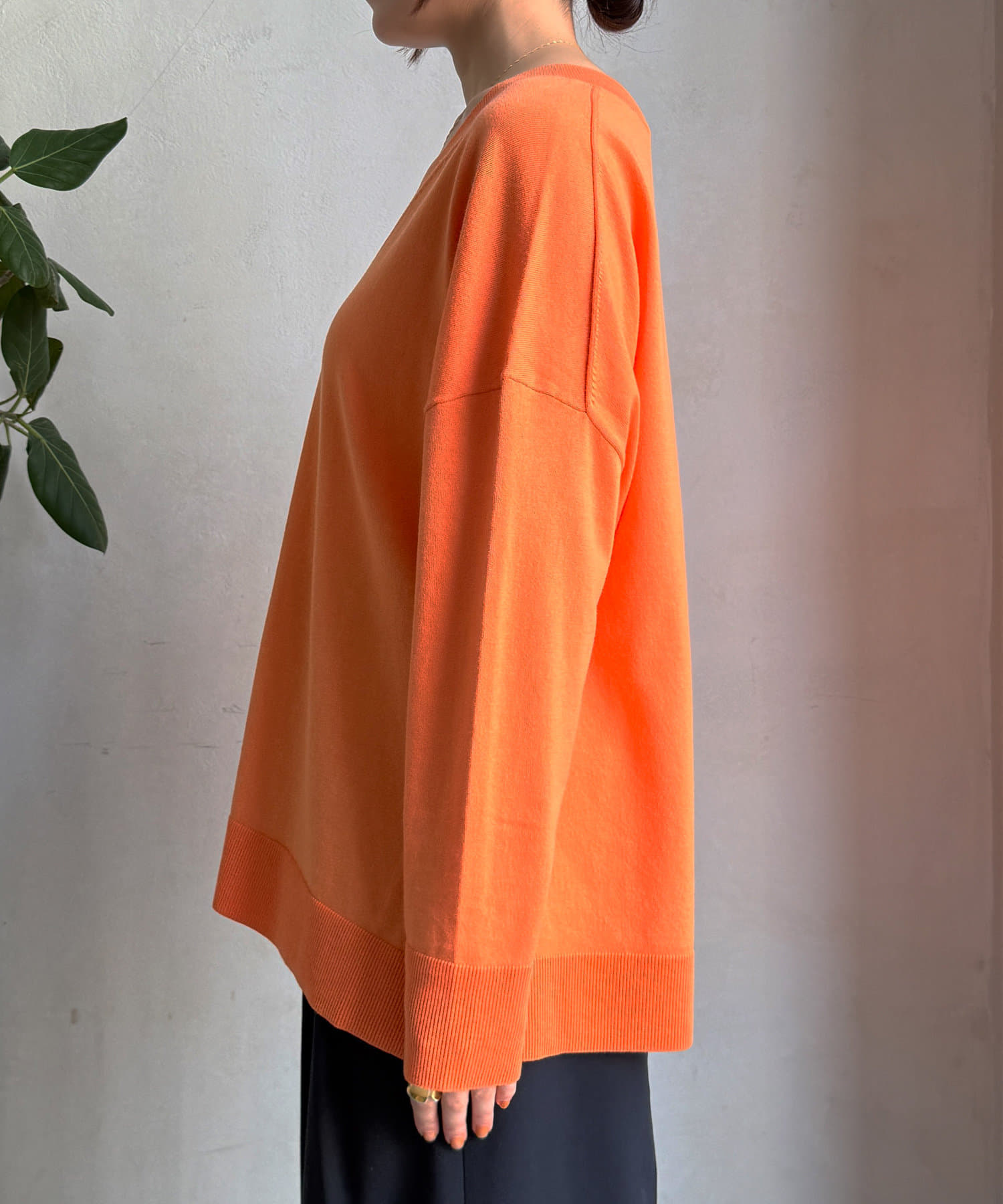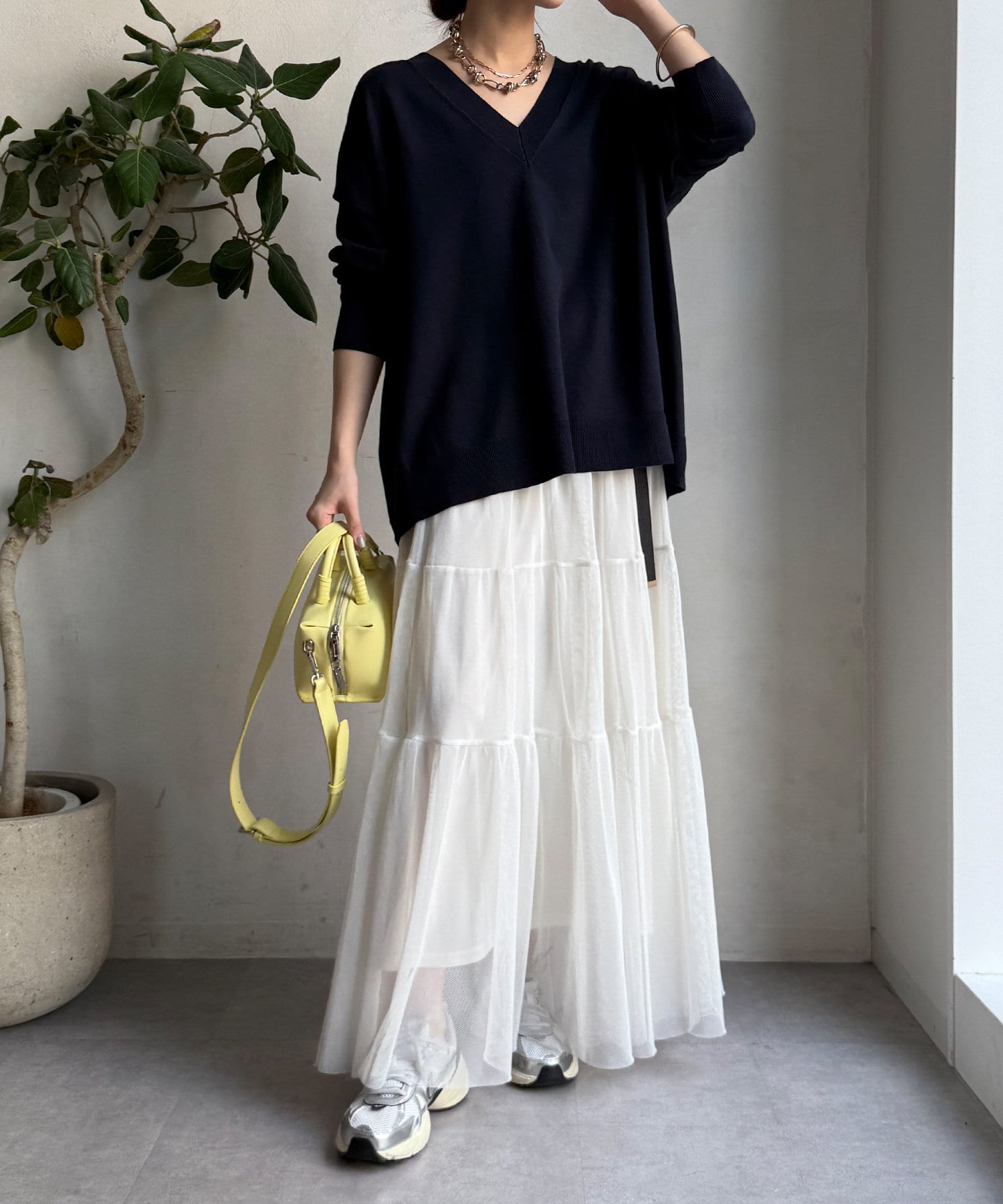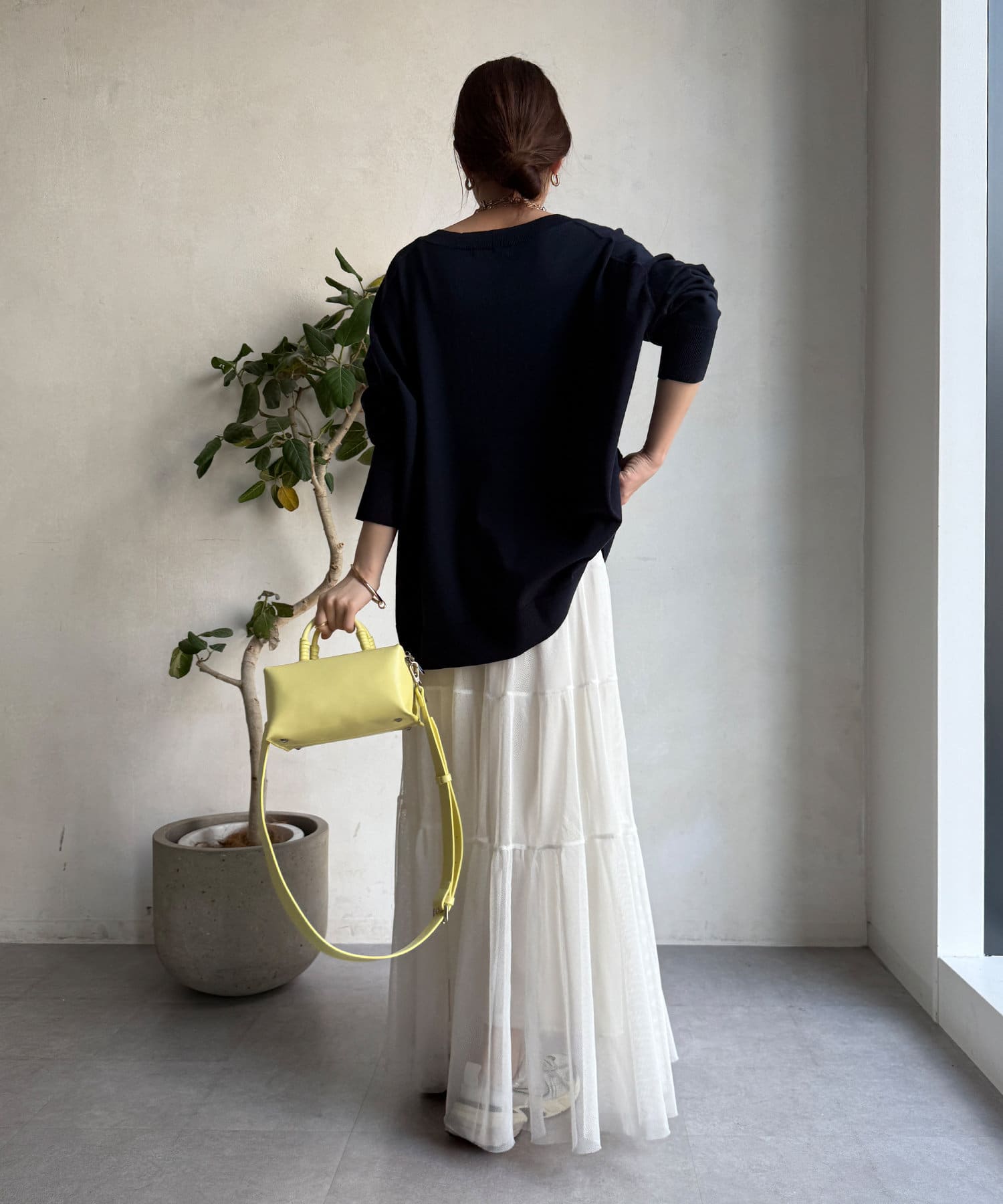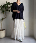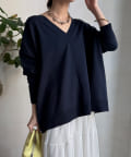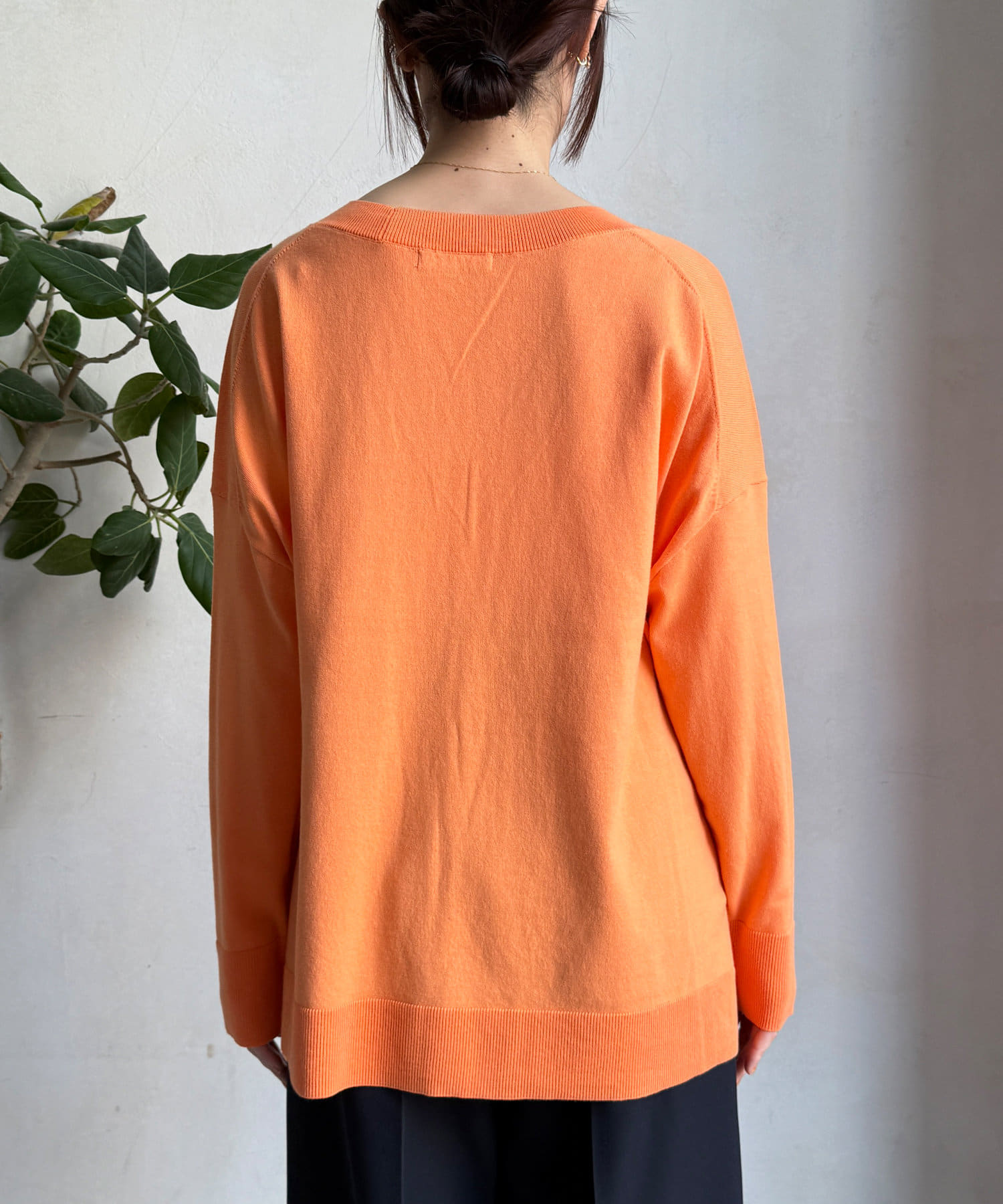 レイヤードでのスタイリングも素敵に着ていただけますが、1枚で着た際もVネックが開きすぎないようにこだわっているため1枚でのスタイルも楽しんでいただけます。