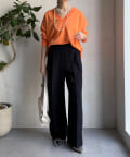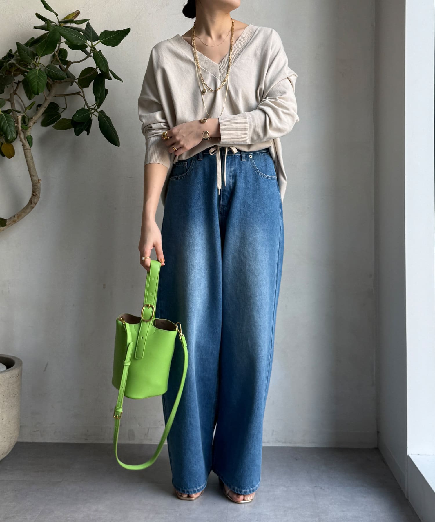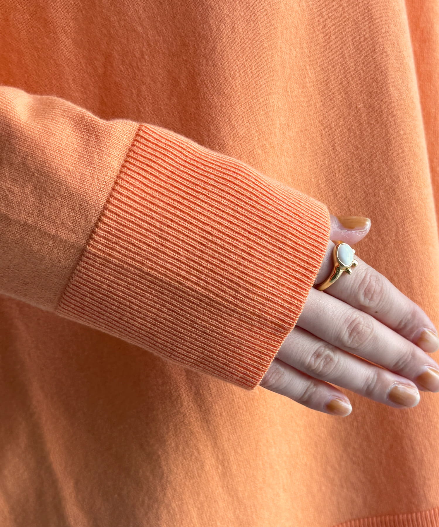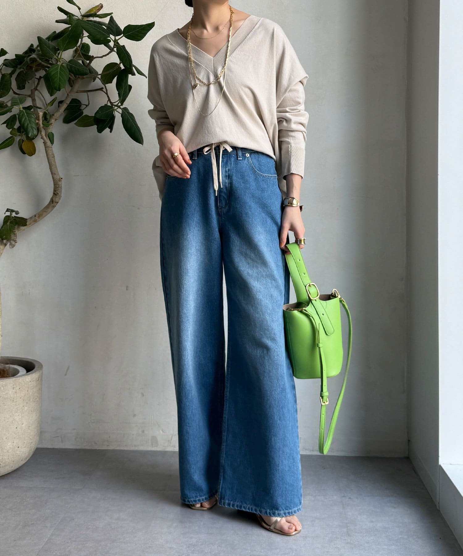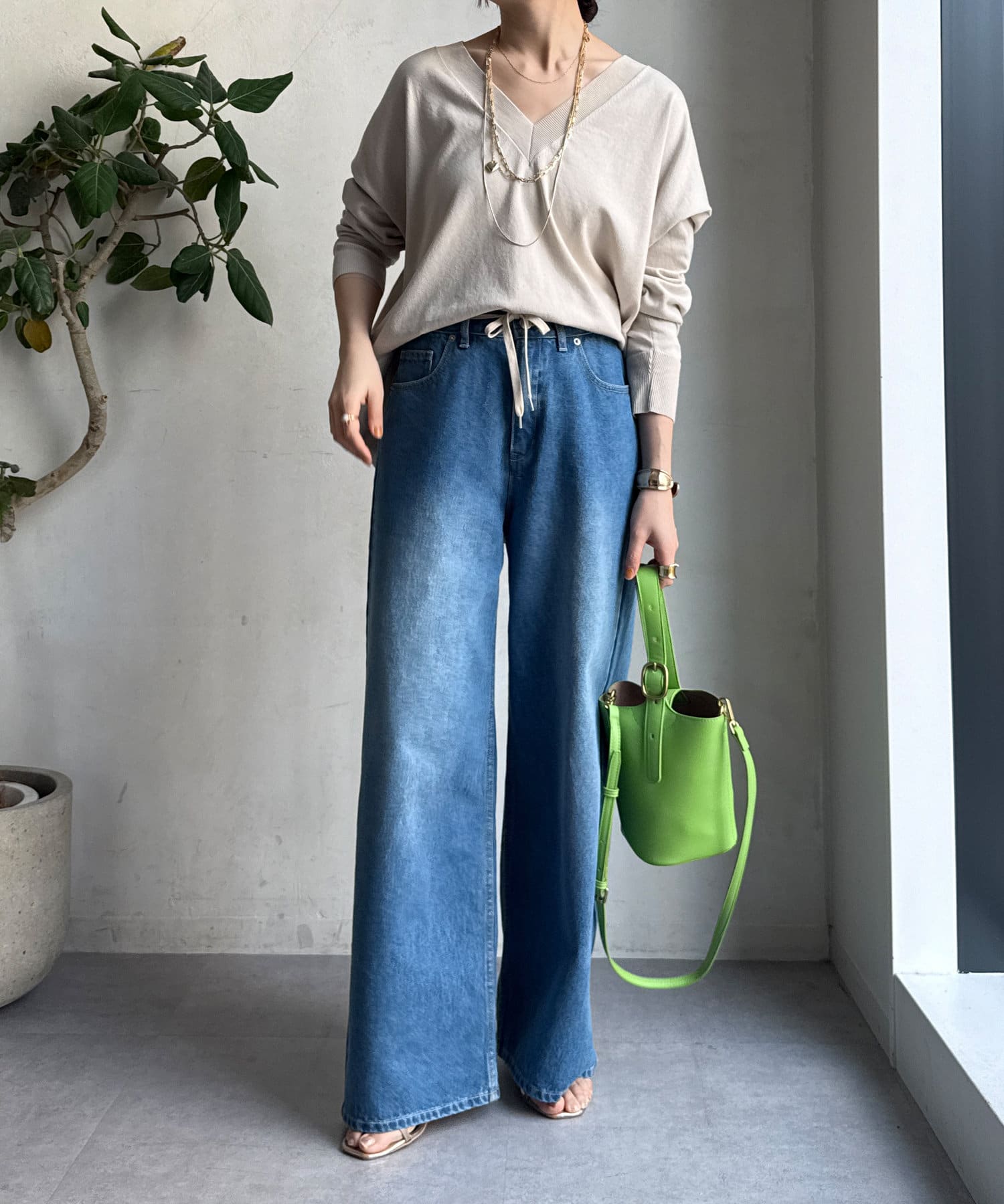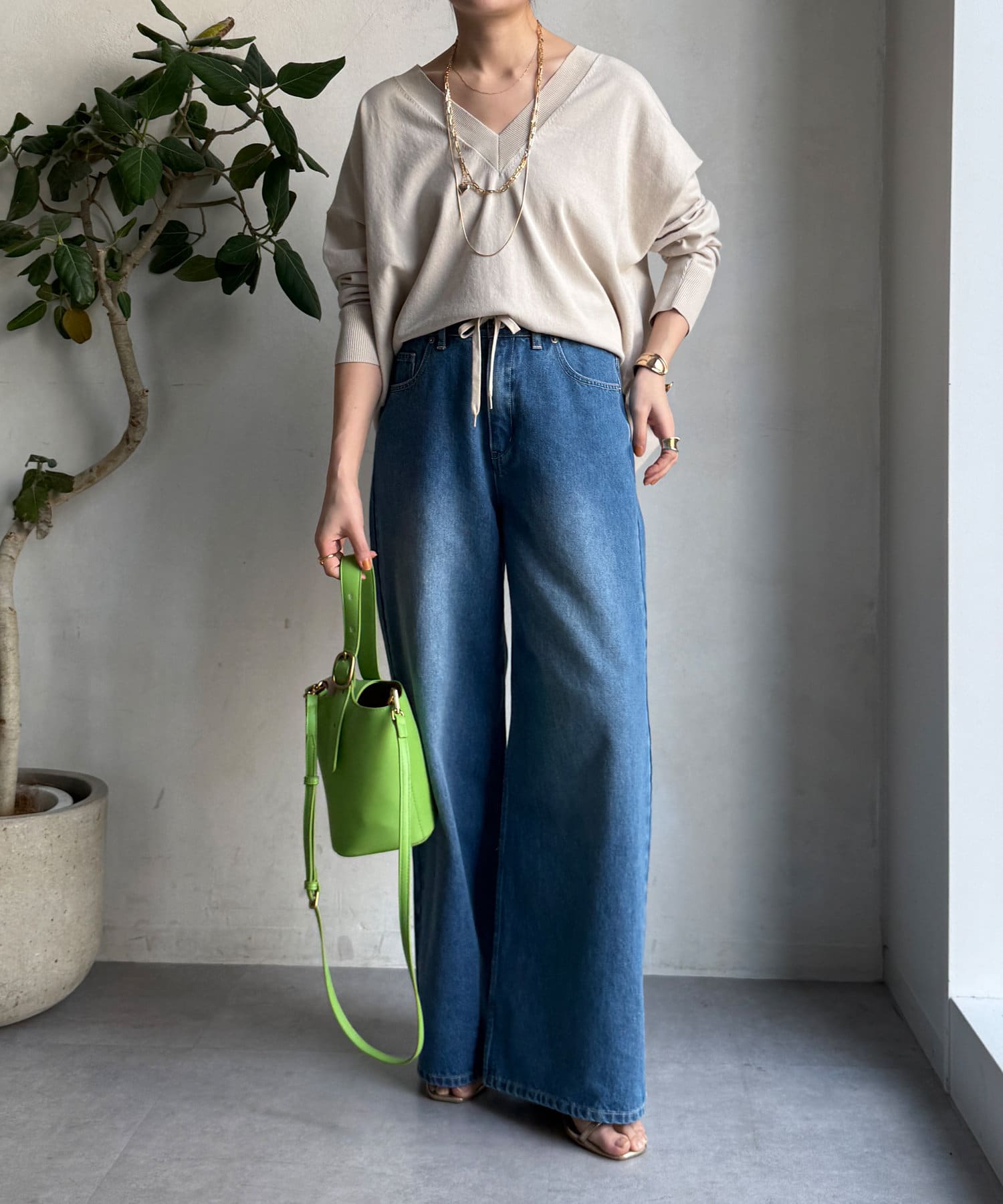 レイヤードでのスタイリングも素敵に着ていただけますが、1枚で着た際もVネックが開きすぎないようにこだわっているため1枚でのスタイルも楽しんでいただけます。