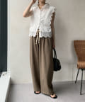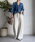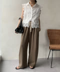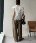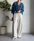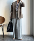 両サイドにはあえて、切りっぱなしの切り替えラインを施して縦ラインを強調。抜け感のある印象を与えてくれます。