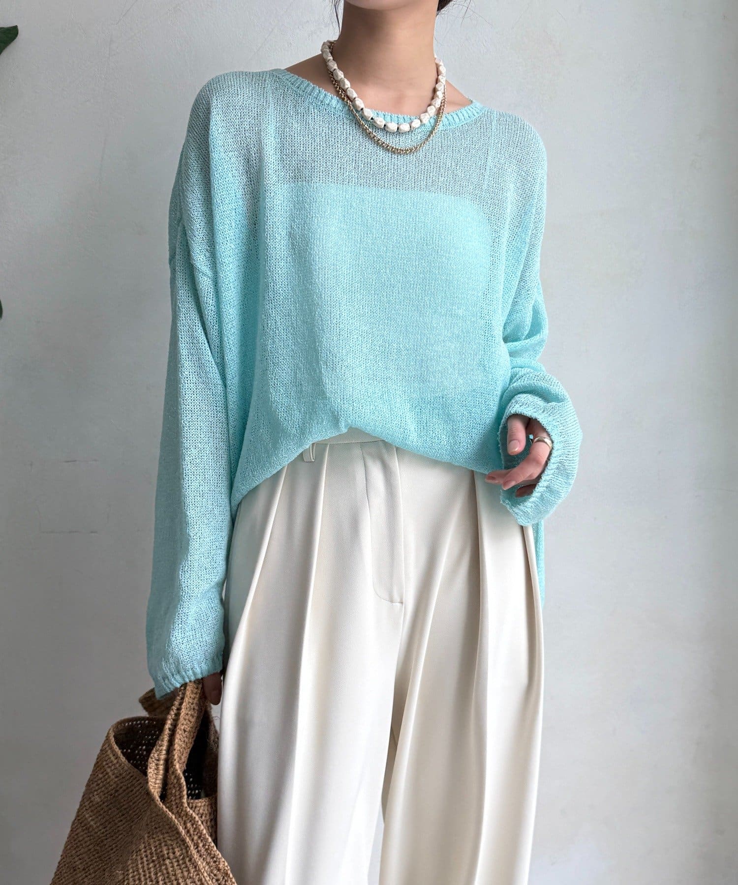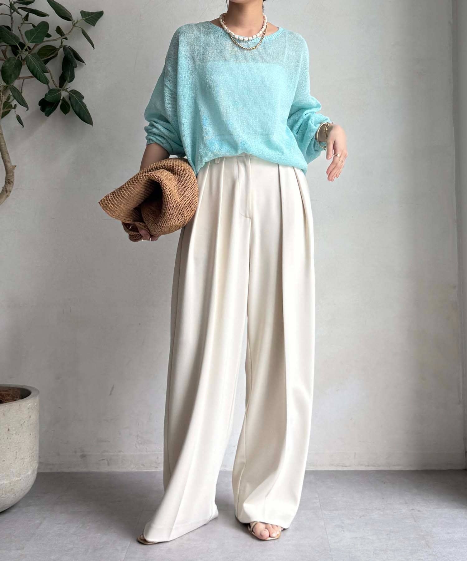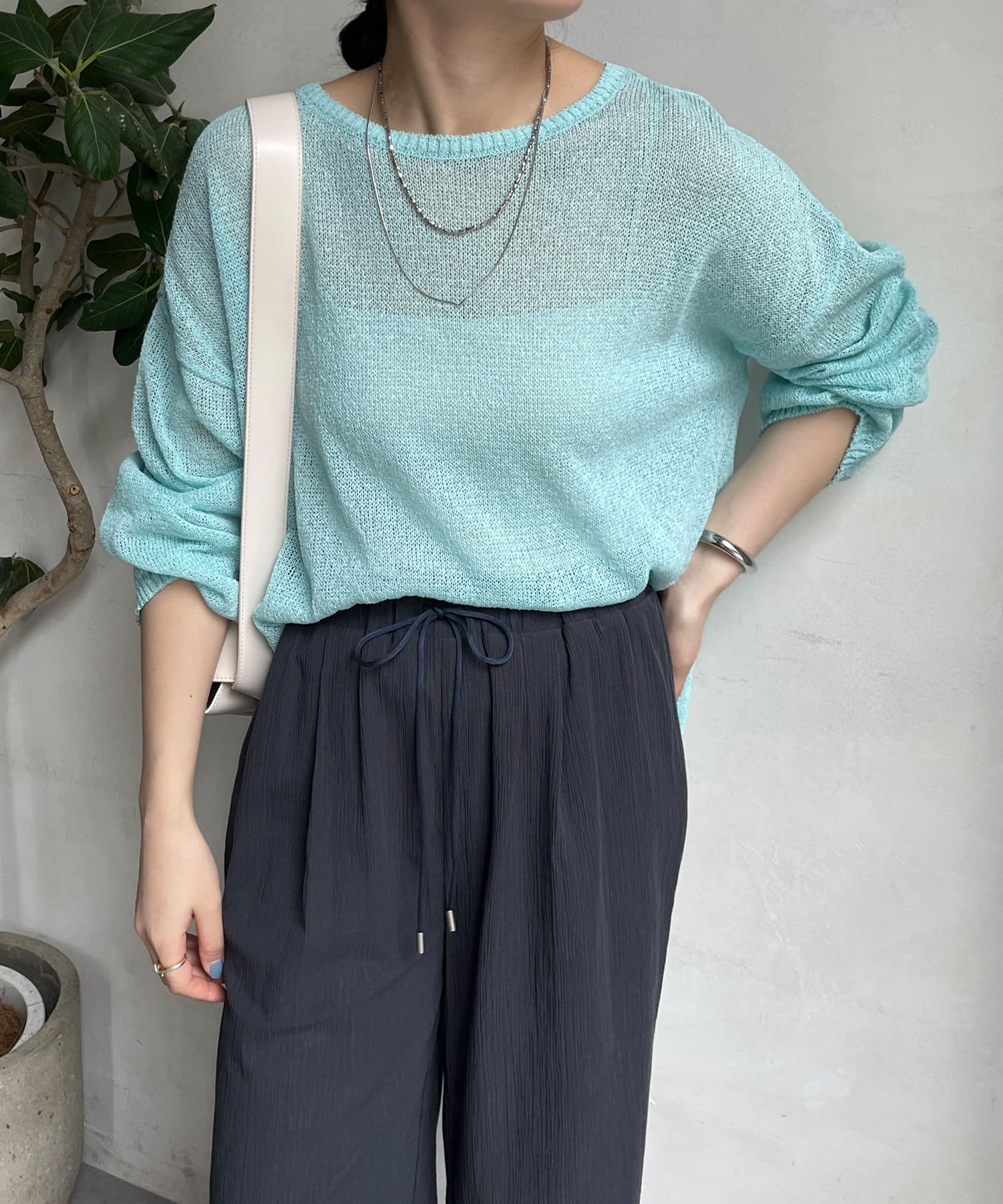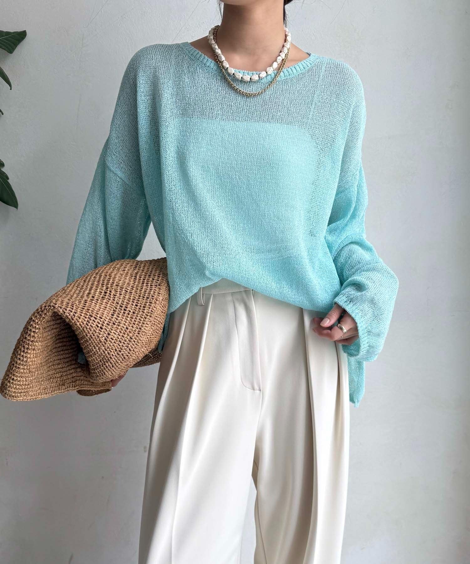 清涼感あるざっくり編みがポイントのプルオーバー