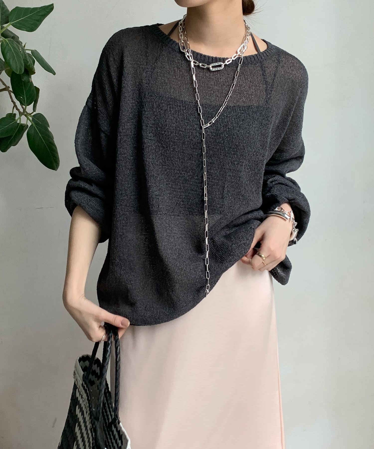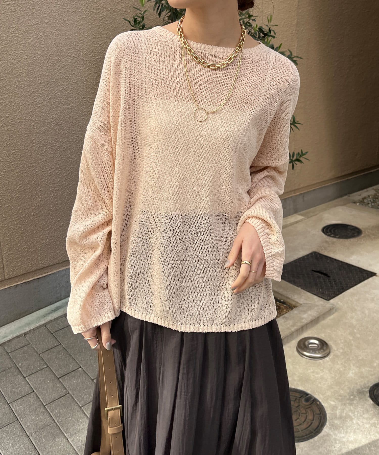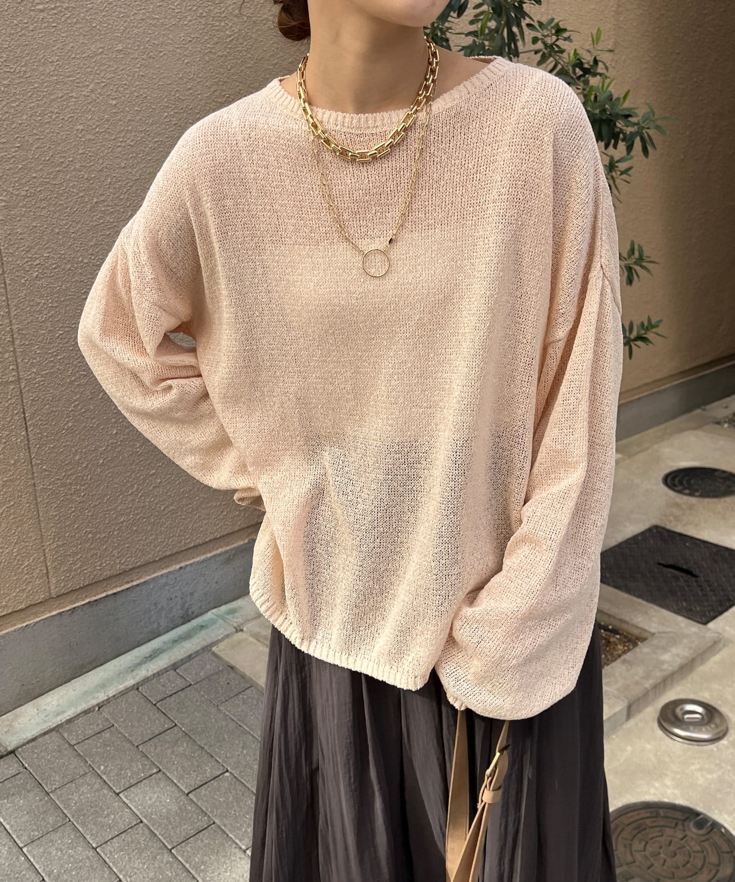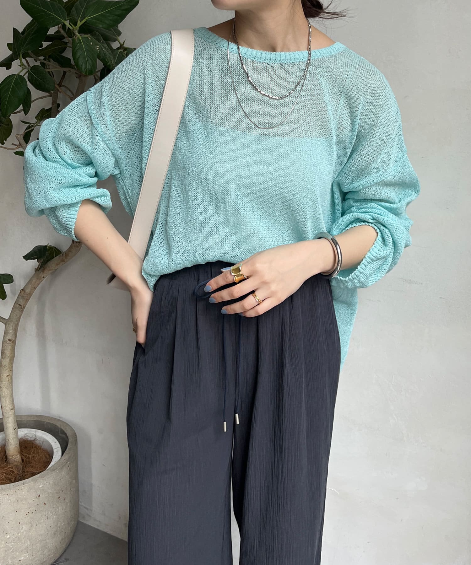 清涼感あるざっくり編みがポイントのプルオーバー