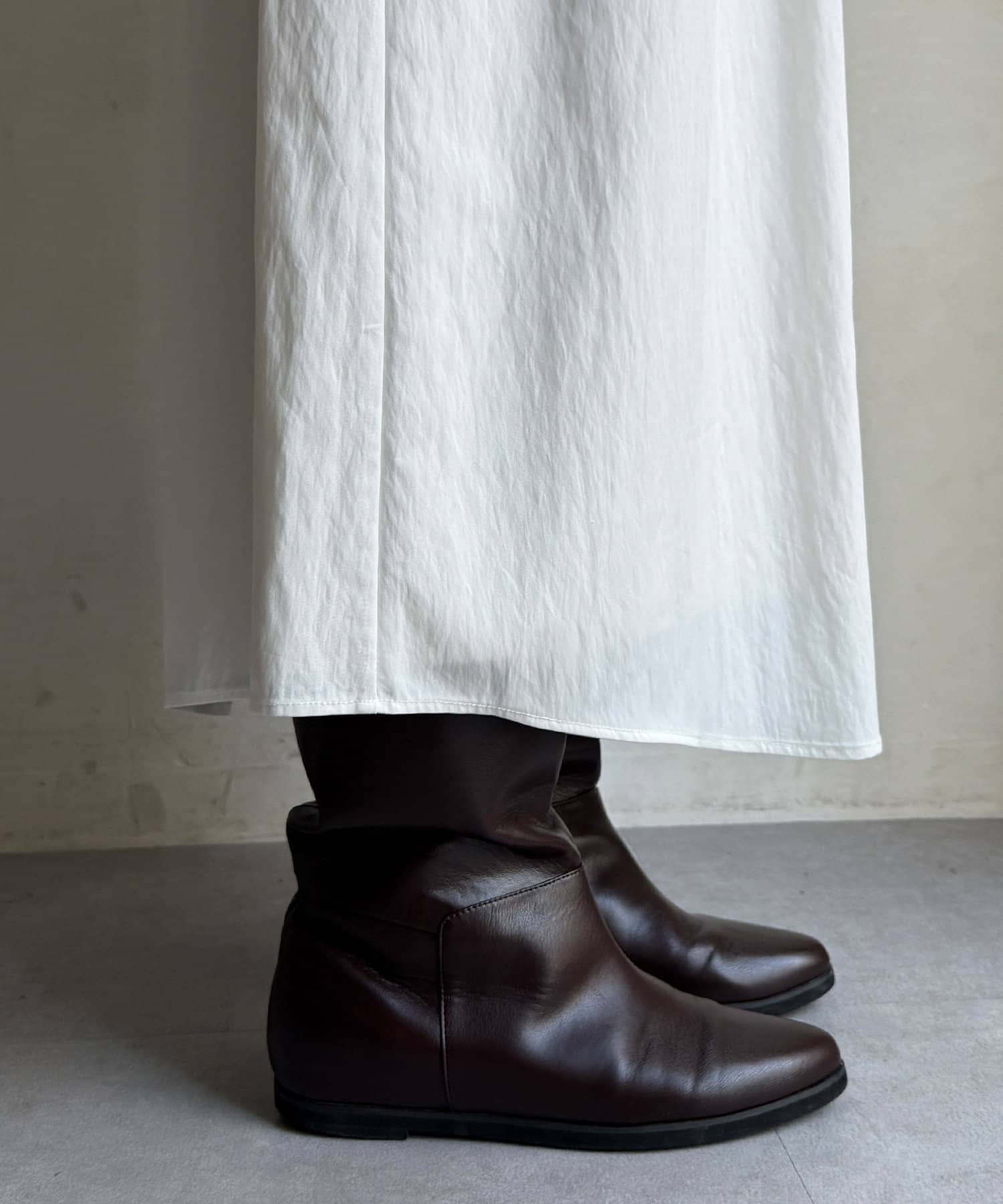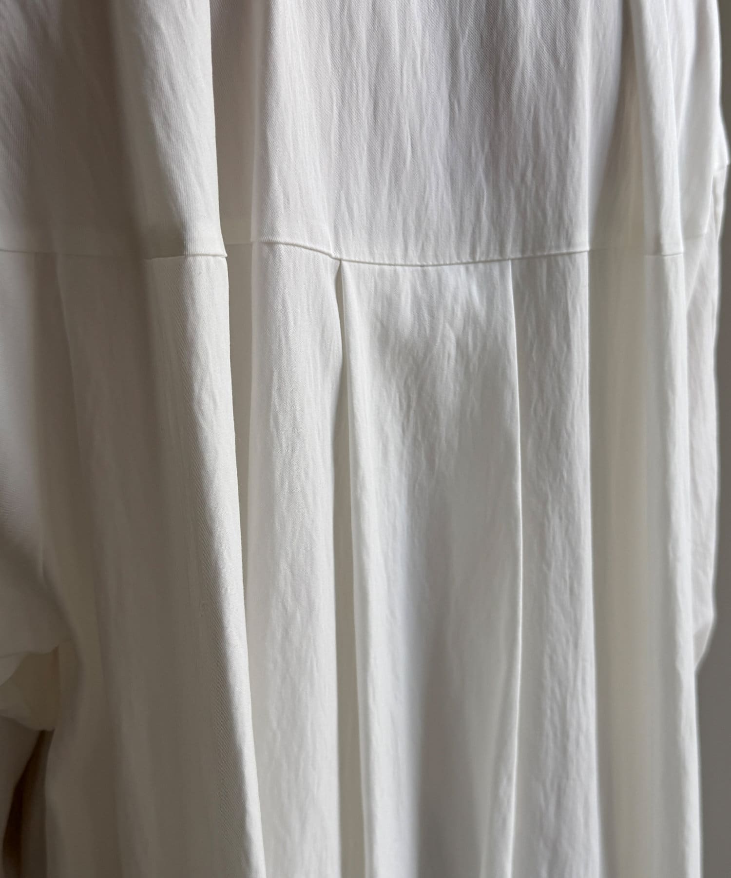 バックにはタックのデザインを施し、裾に向かって自然と広がるラインに。