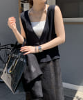 ネックラインはVネックに仕上げているため、お顔周りをすっきり見せてくれる効果も。