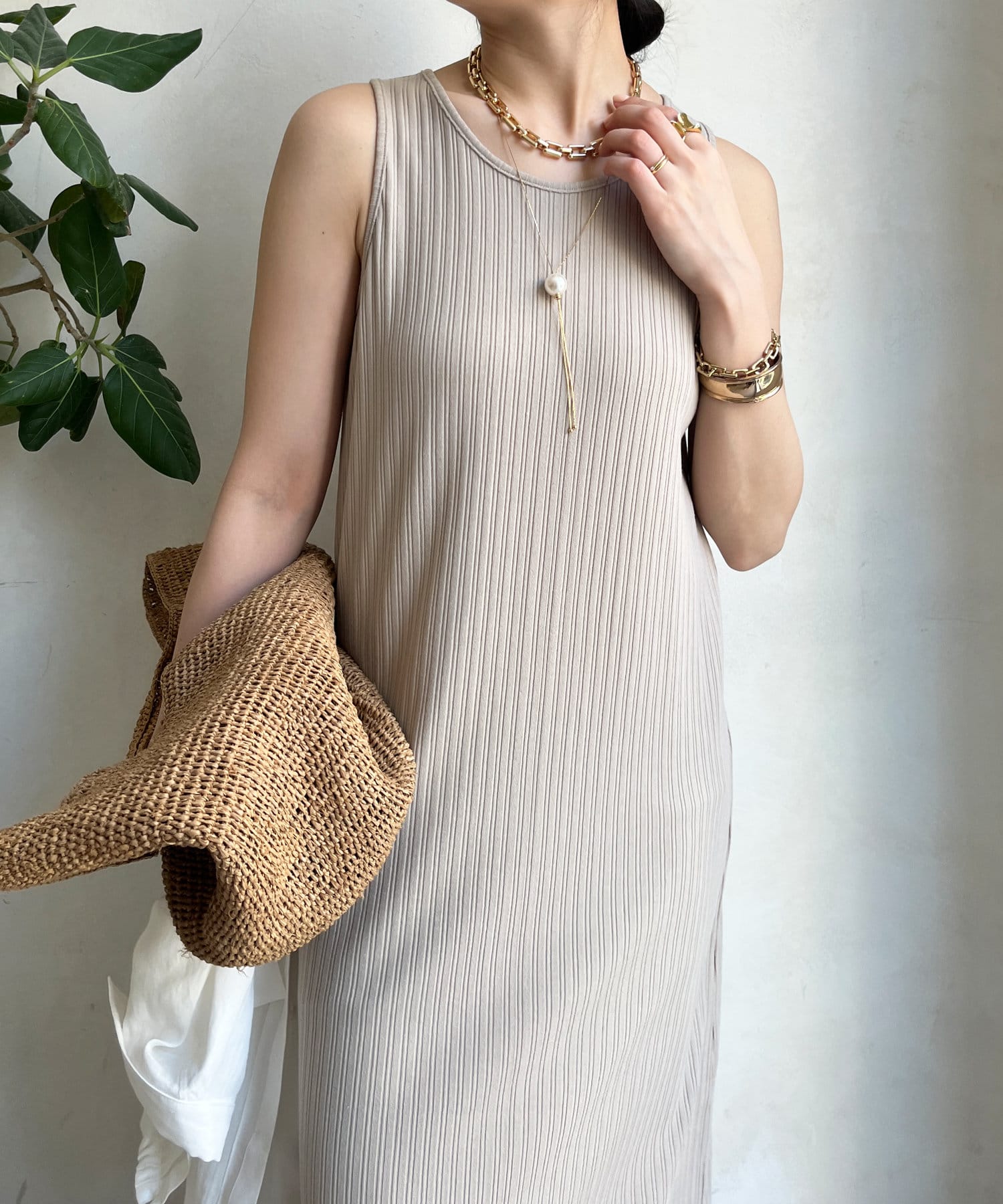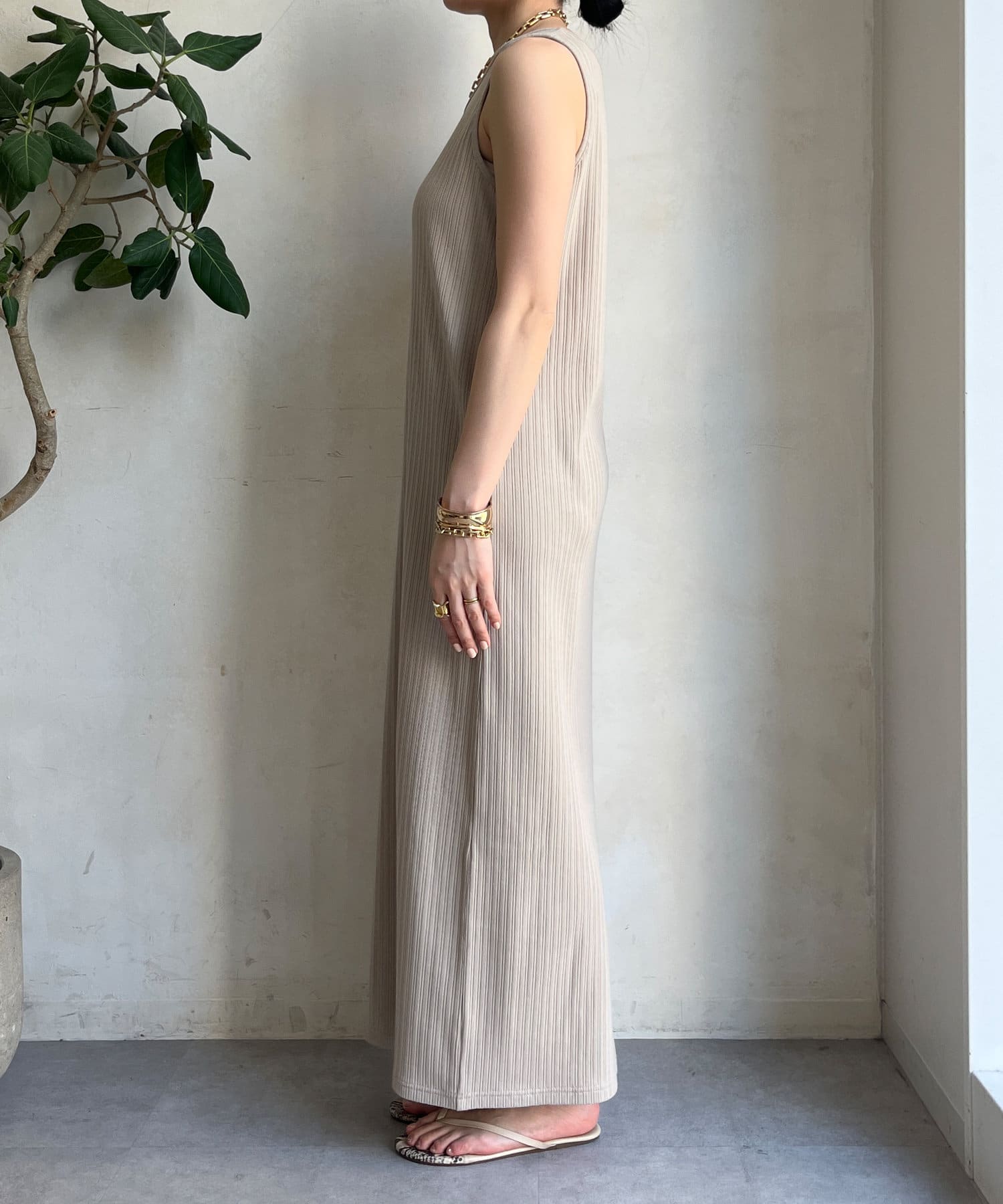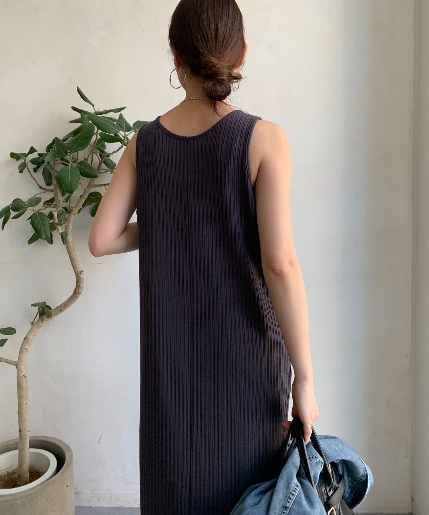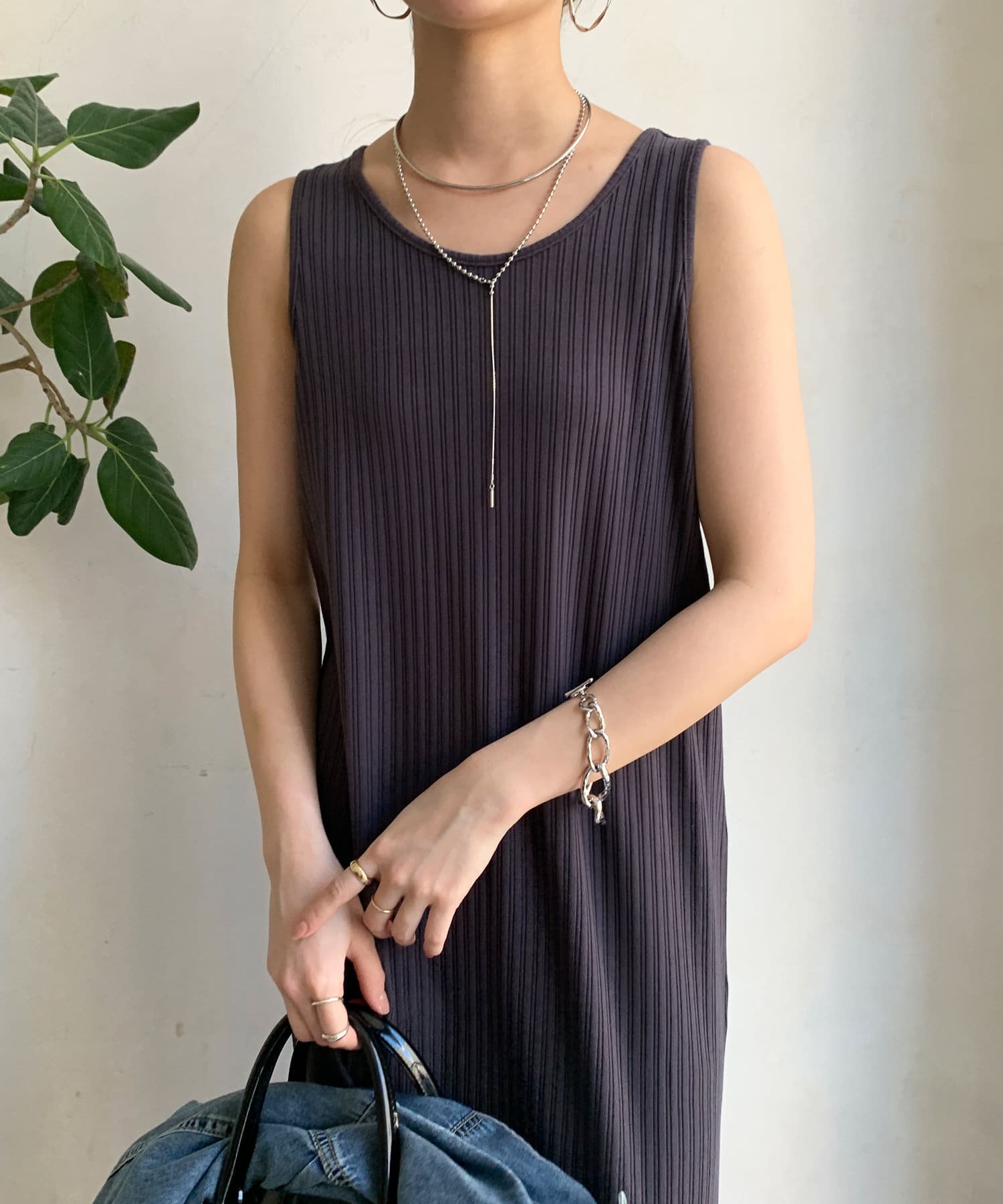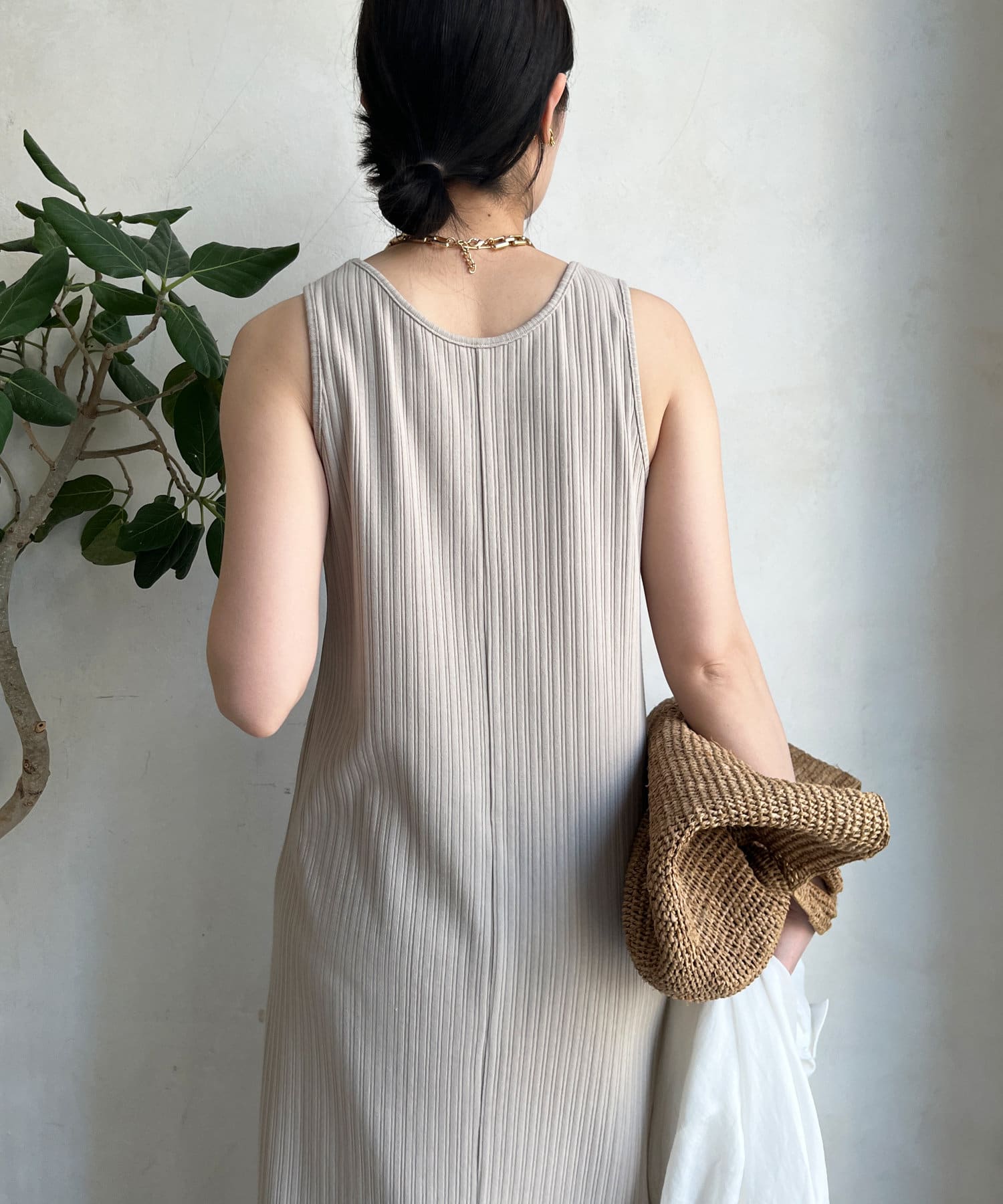 伸びやかなリブ素材で仕上げたタンクワンピース。