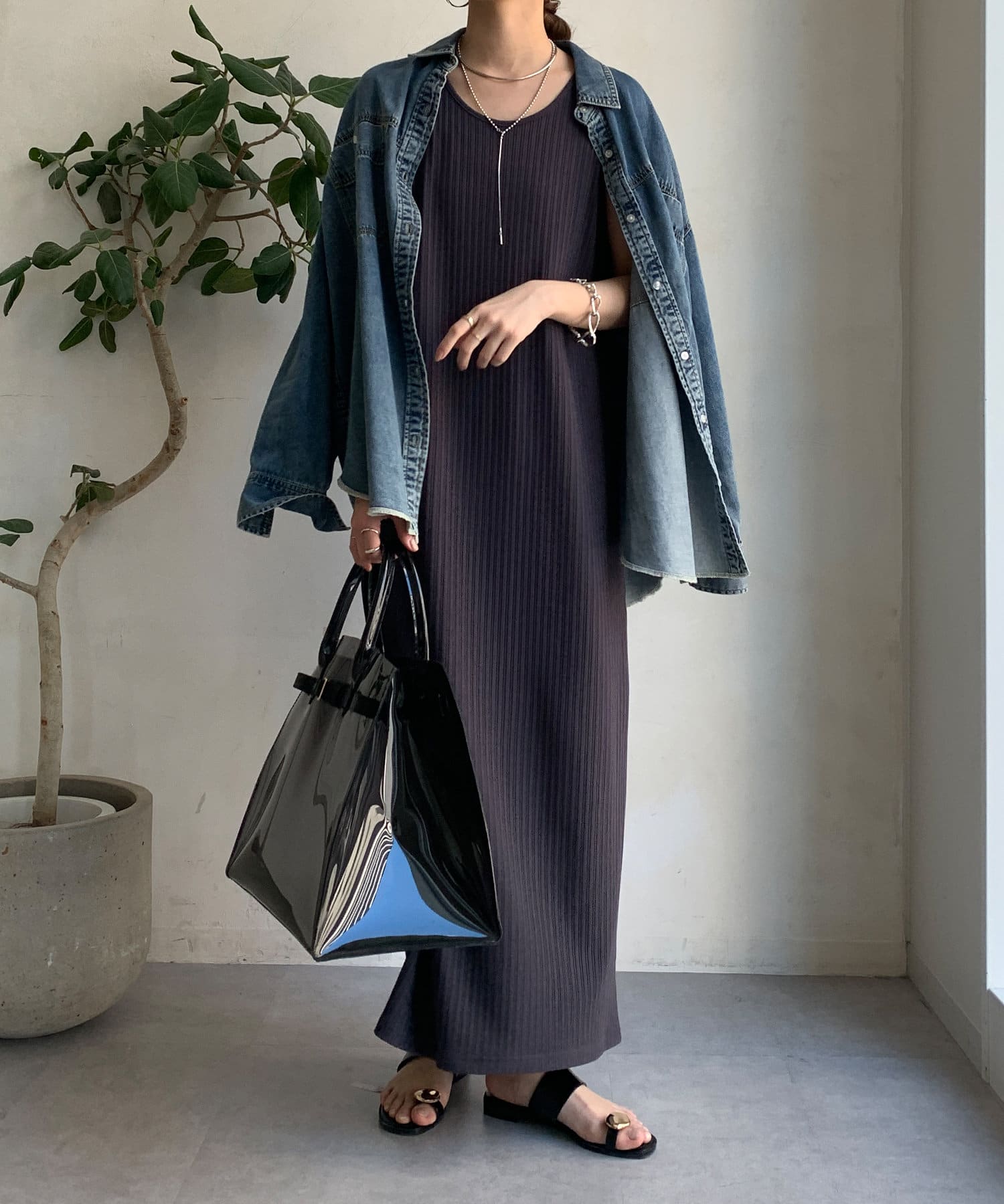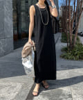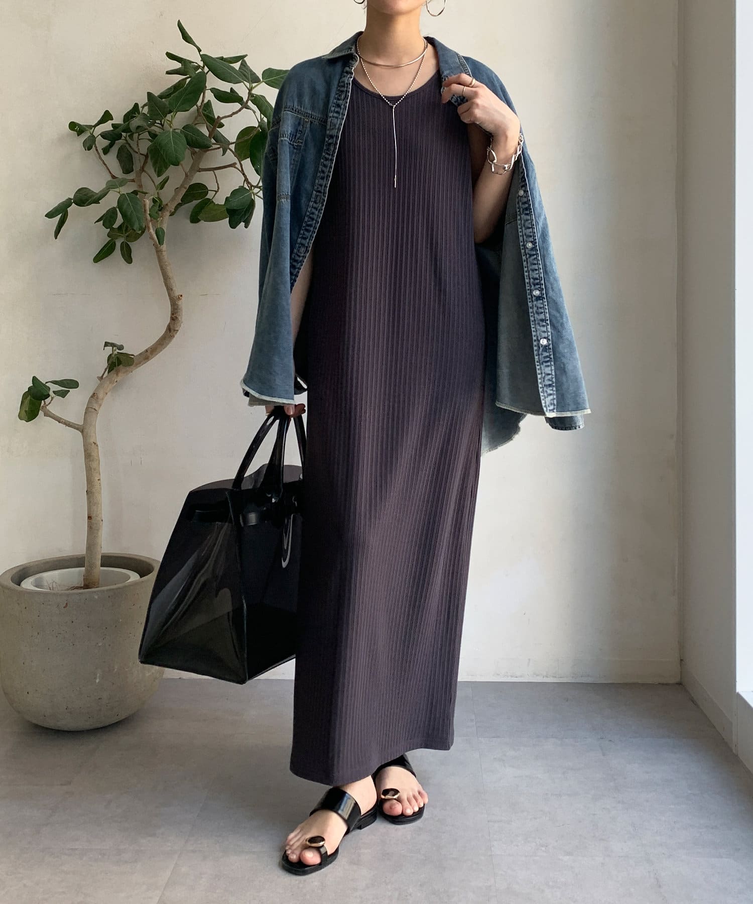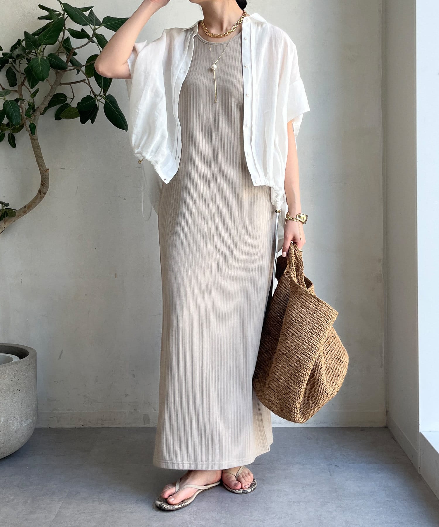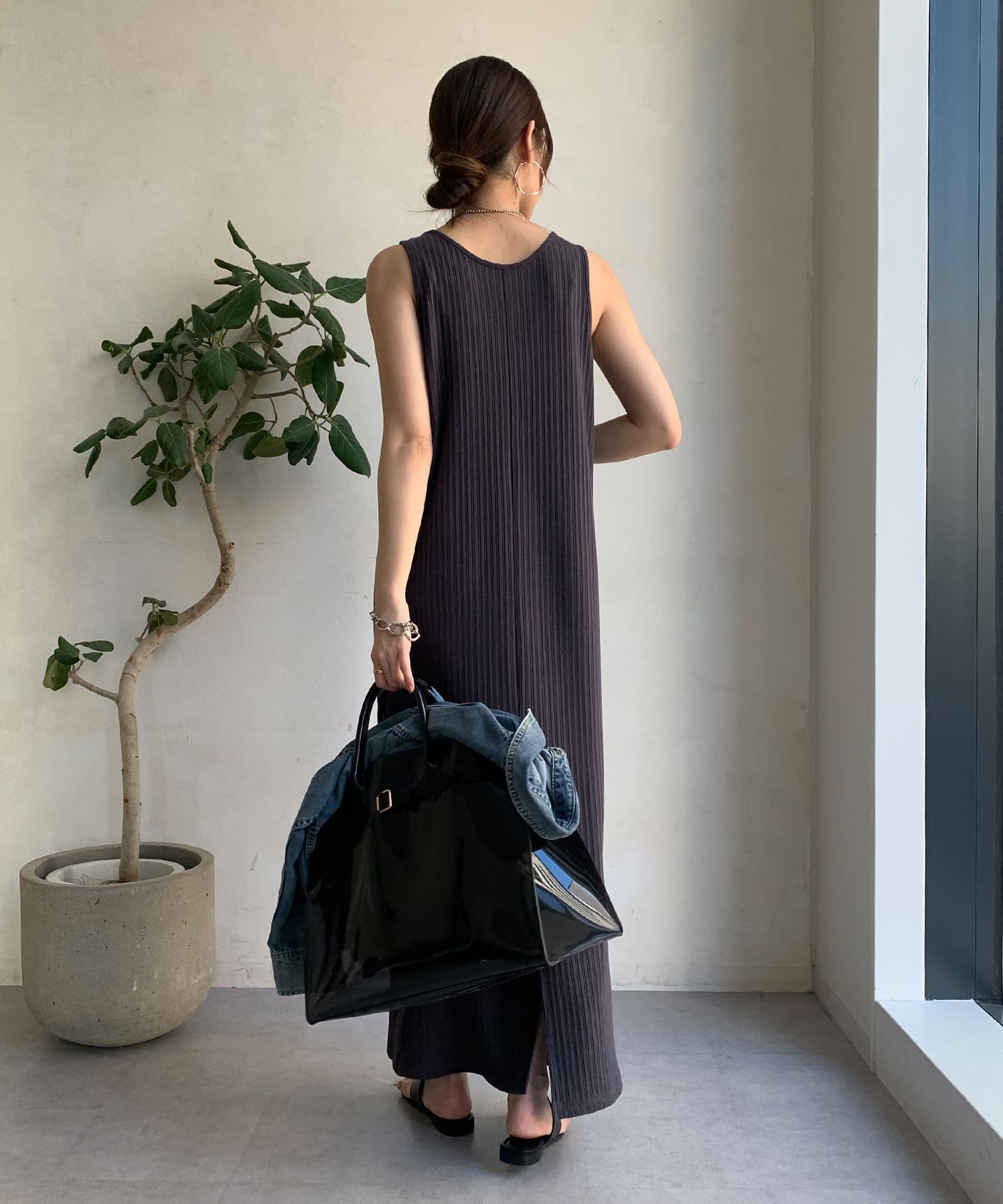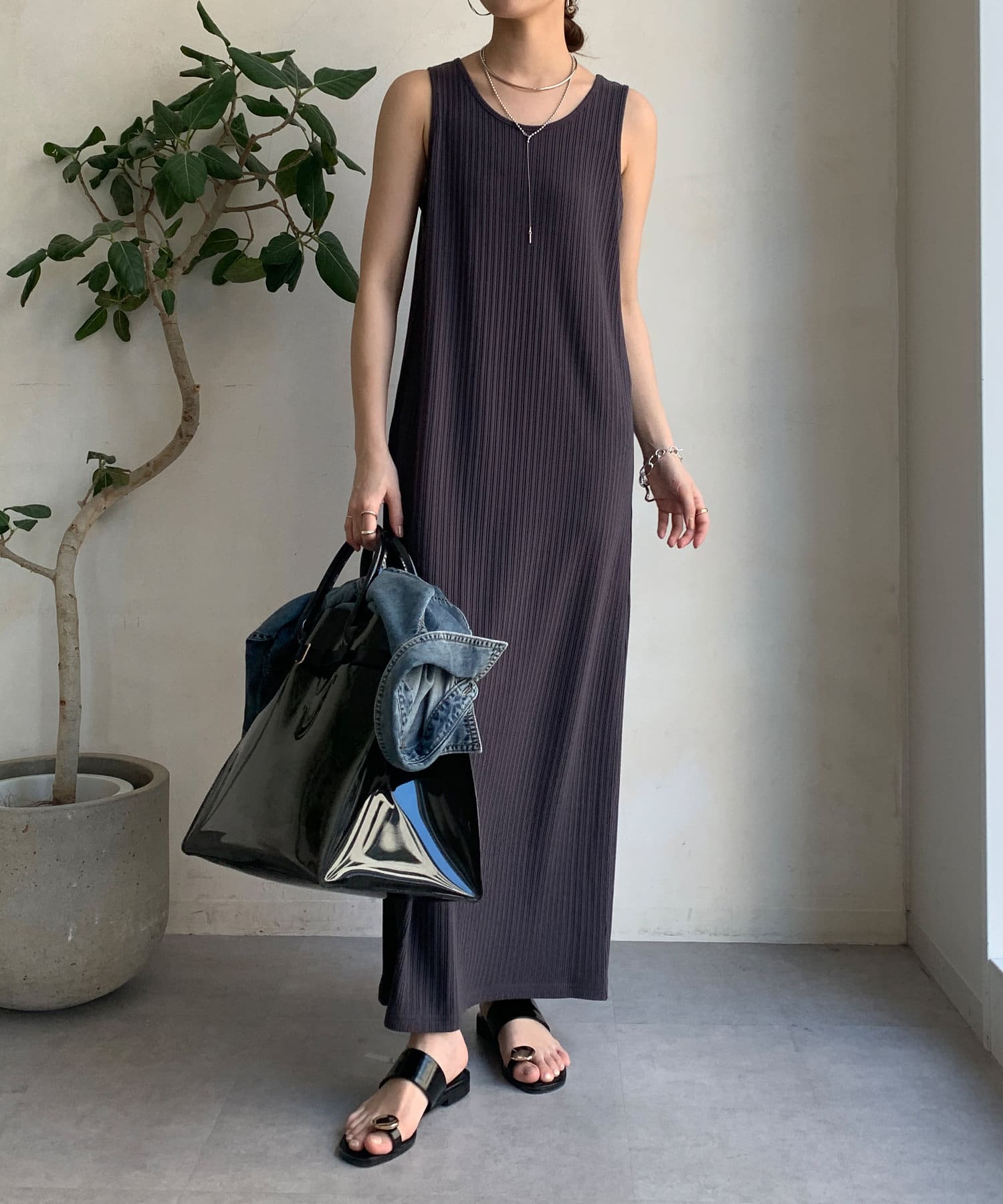伸びやかなリブ素材で仕上げたタンクワンピース。