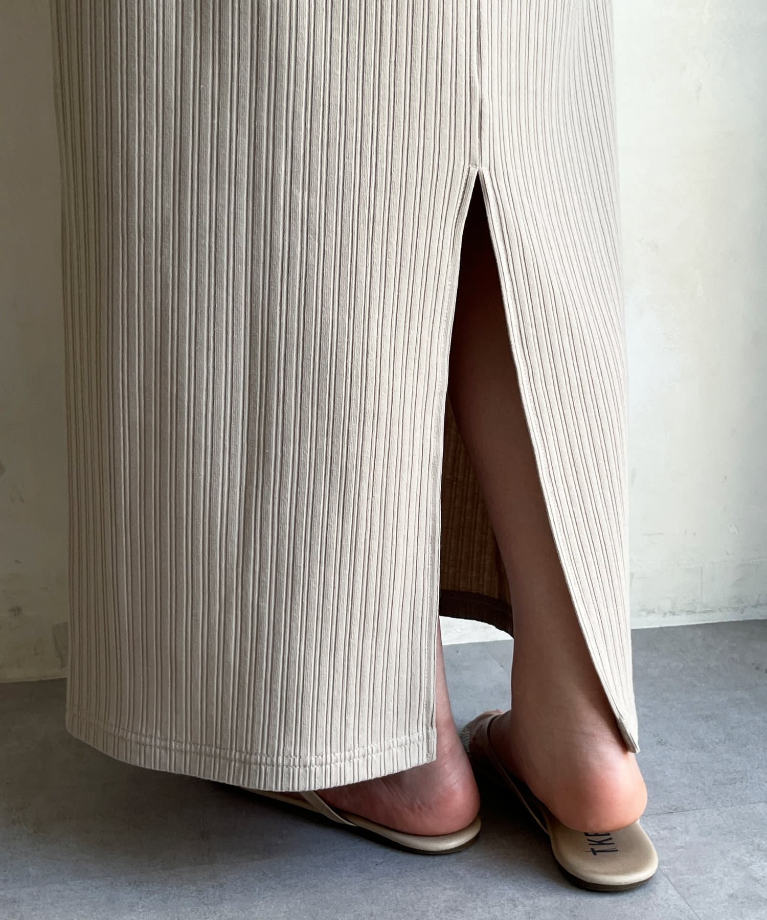 伸びのいいリブ素材がストレスフリーな上、バック裾のセンターにはスリットをプラスし、足さばきの良さもキープ。
