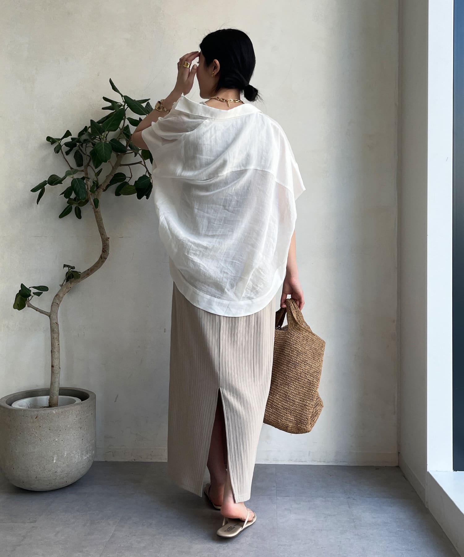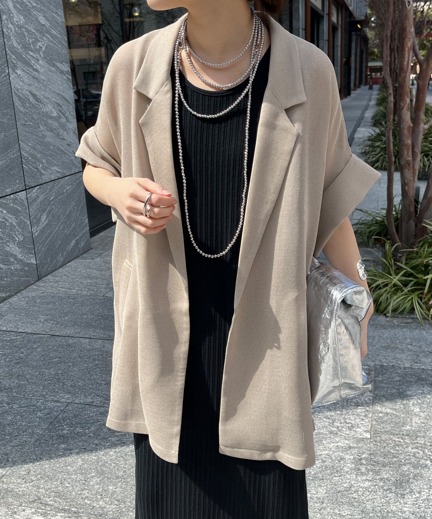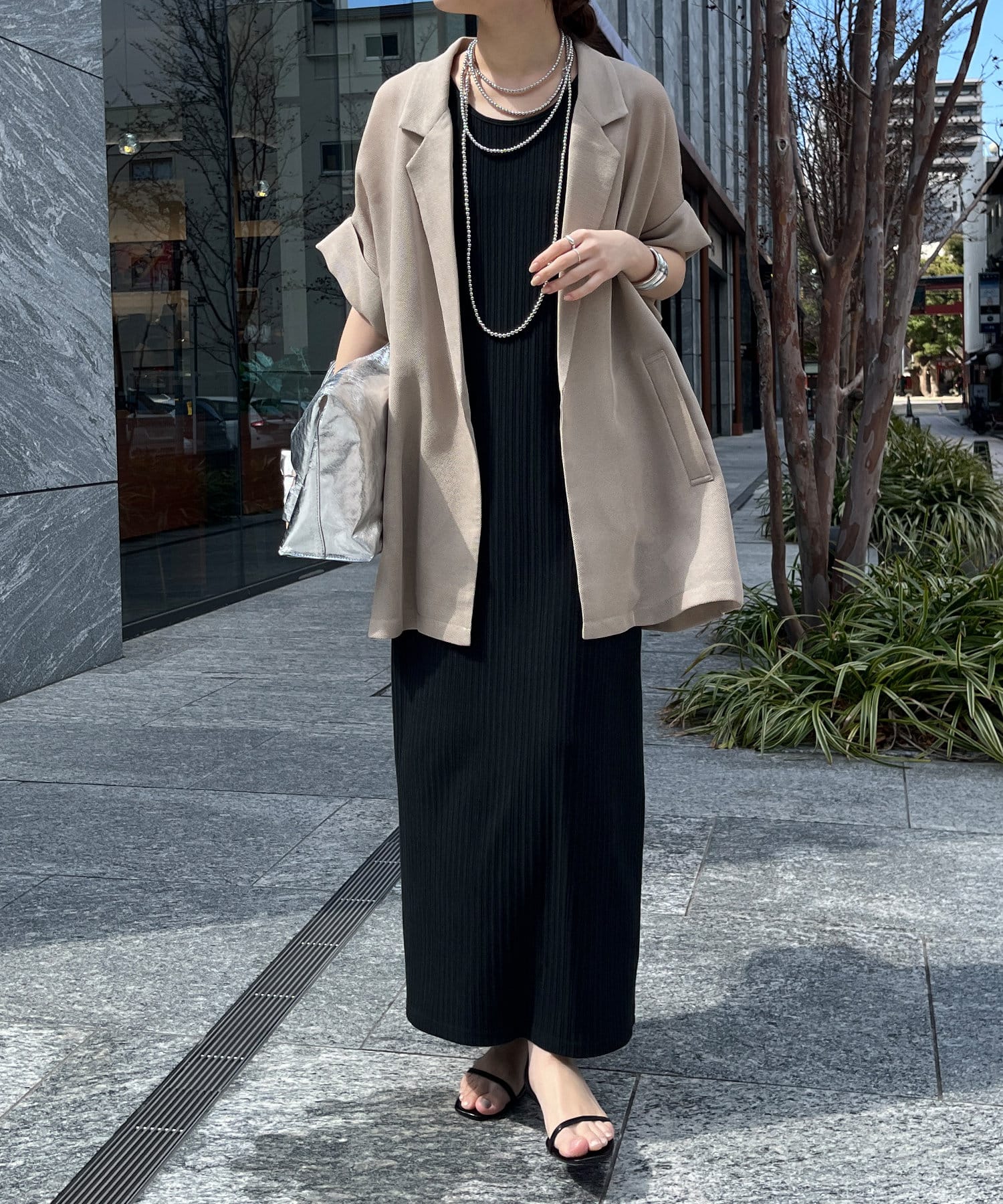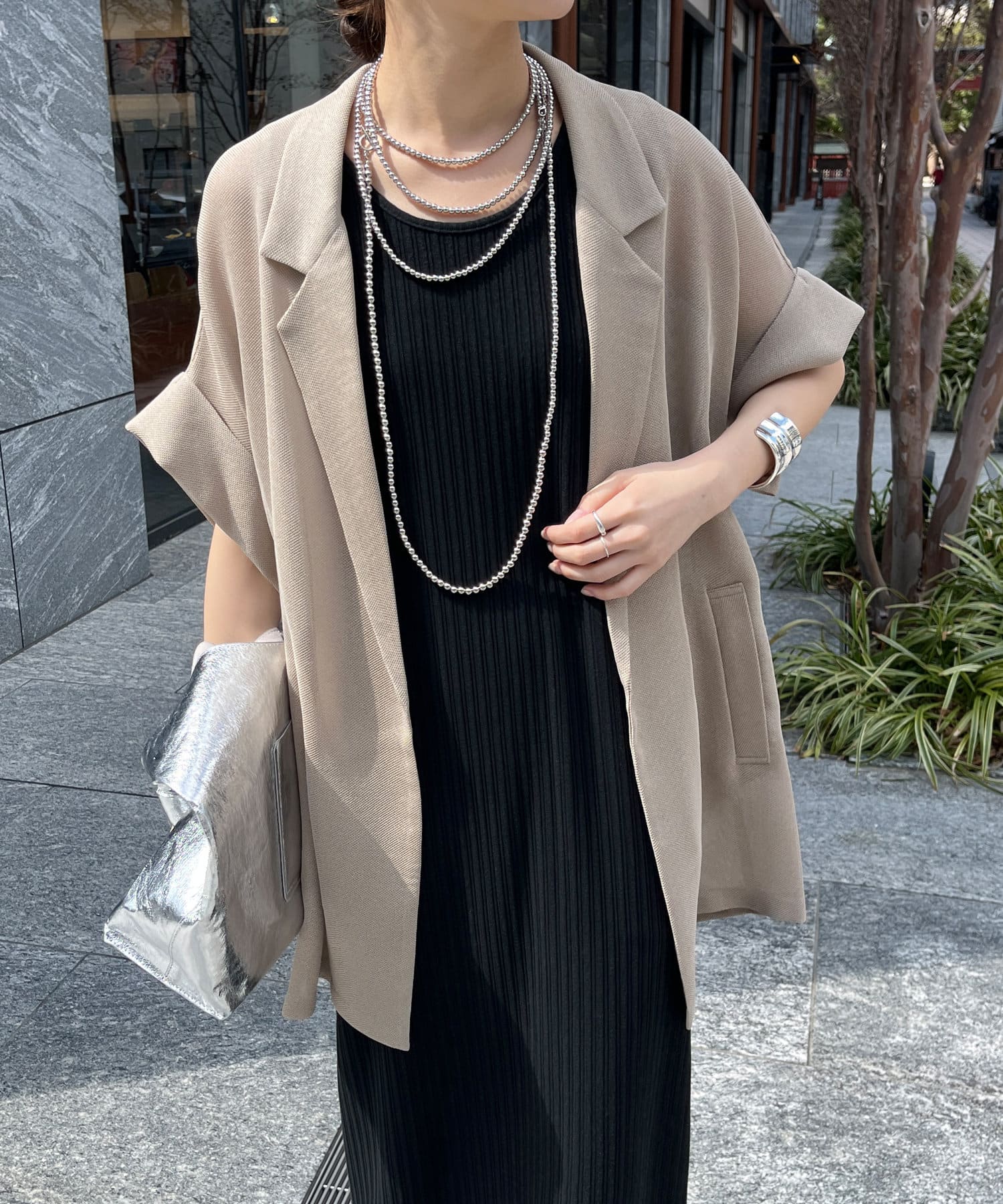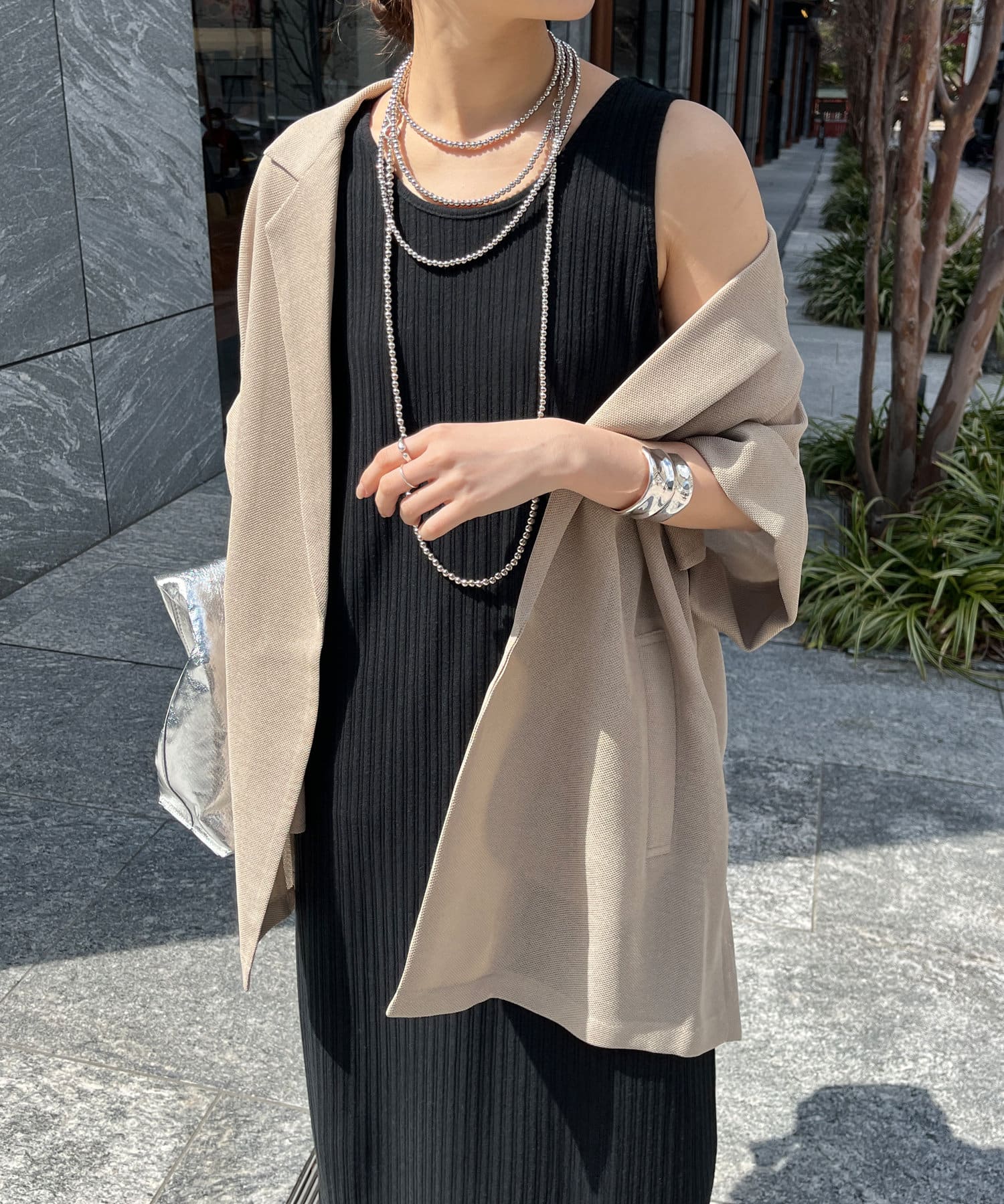 デコルテを綺麗に見せてくれる、程よいネックラインの開き具合で、大人の余裕感を醸します。