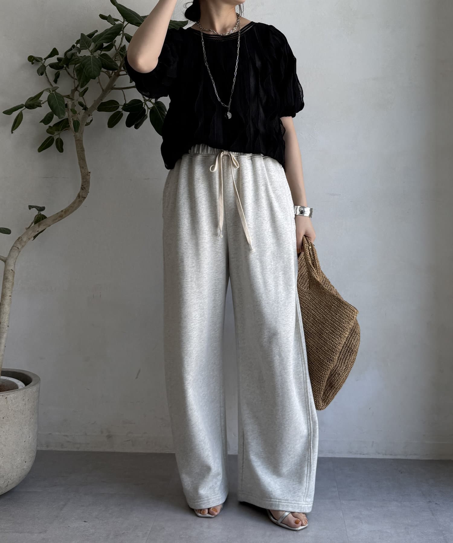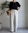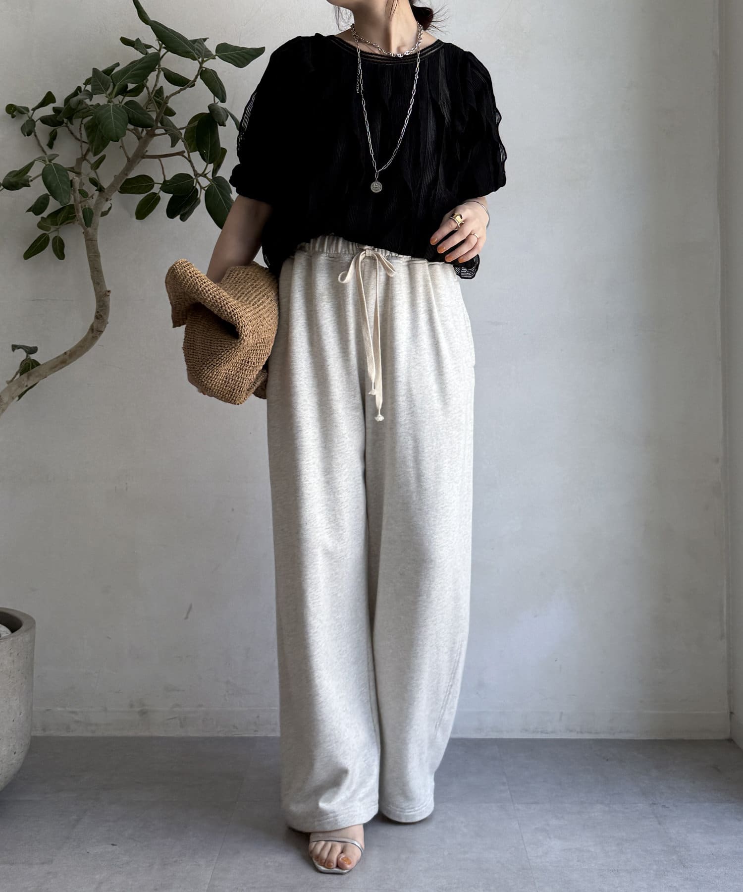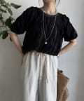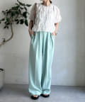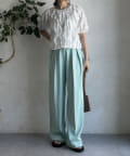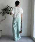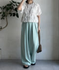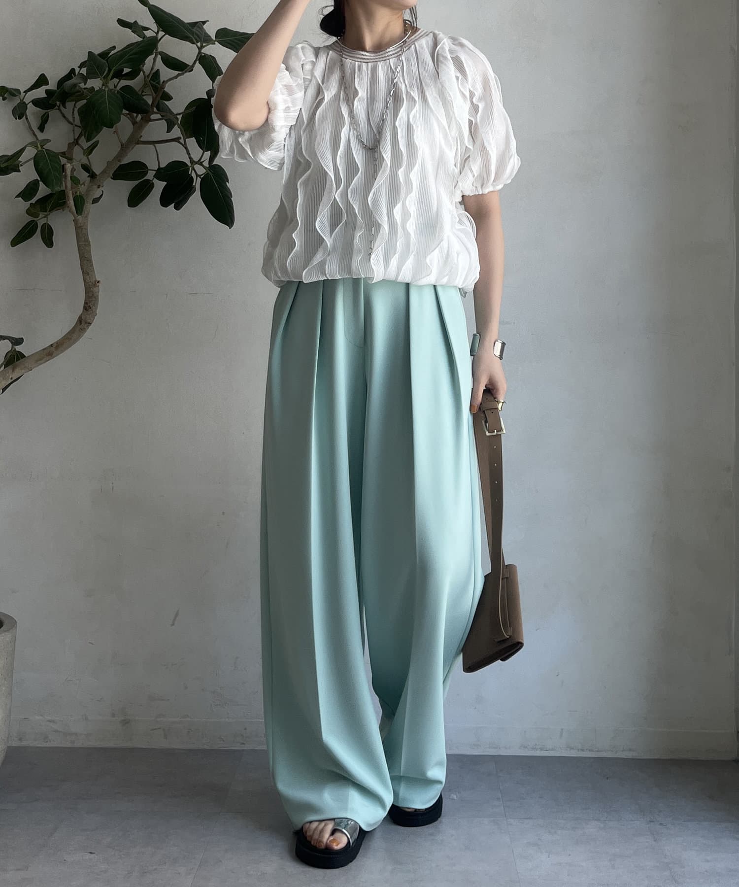 軽やかなフリルが、フェミニンな印象を与えつつ、大人の女性らしい上品さも演出。