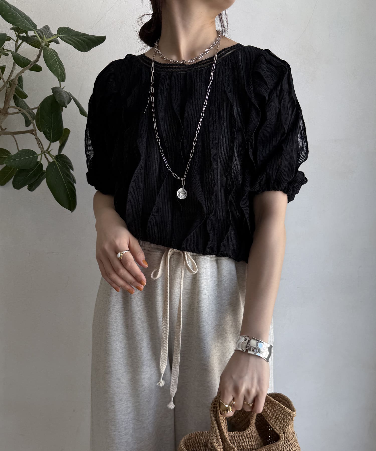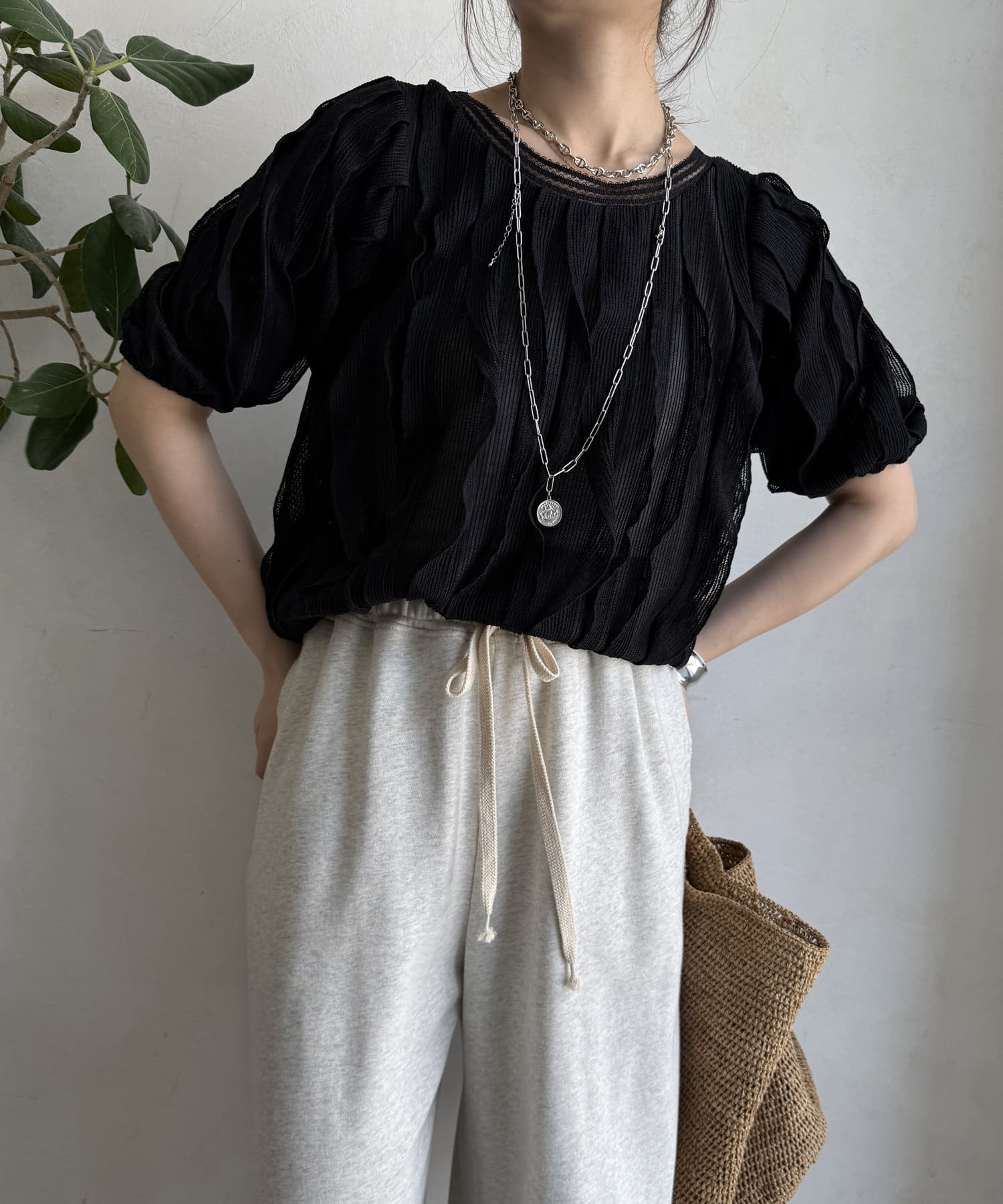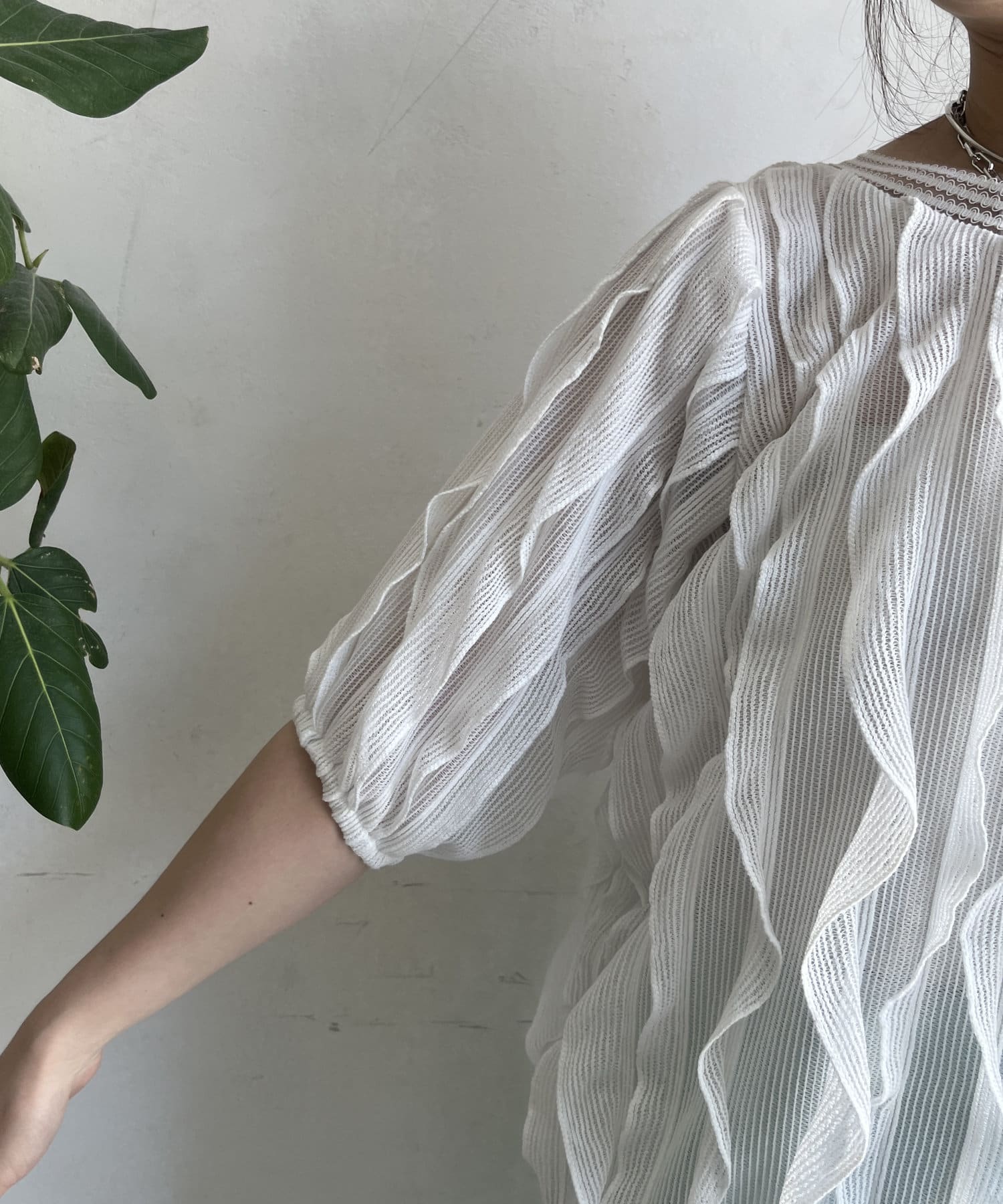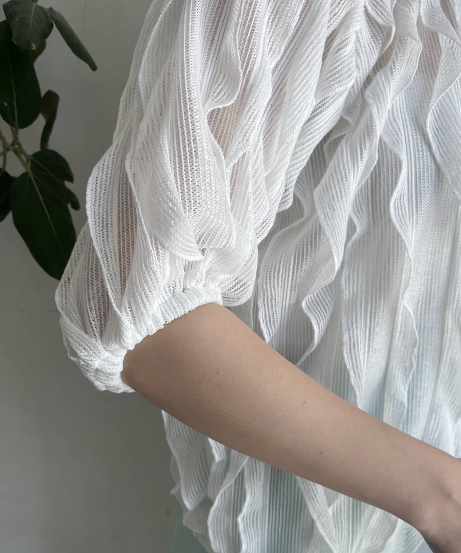 ふんわりと波打つフリルが、身にまとうだけで華やかさを添えるトップス。