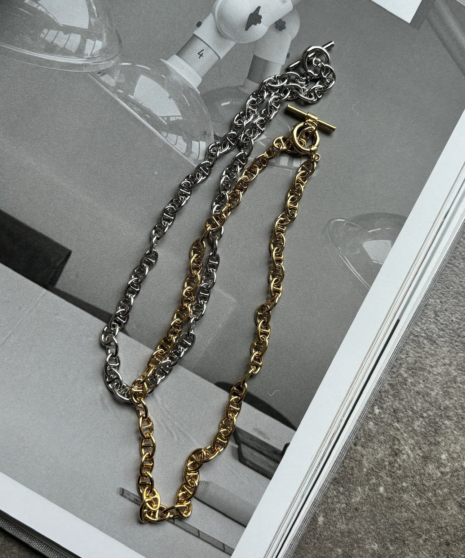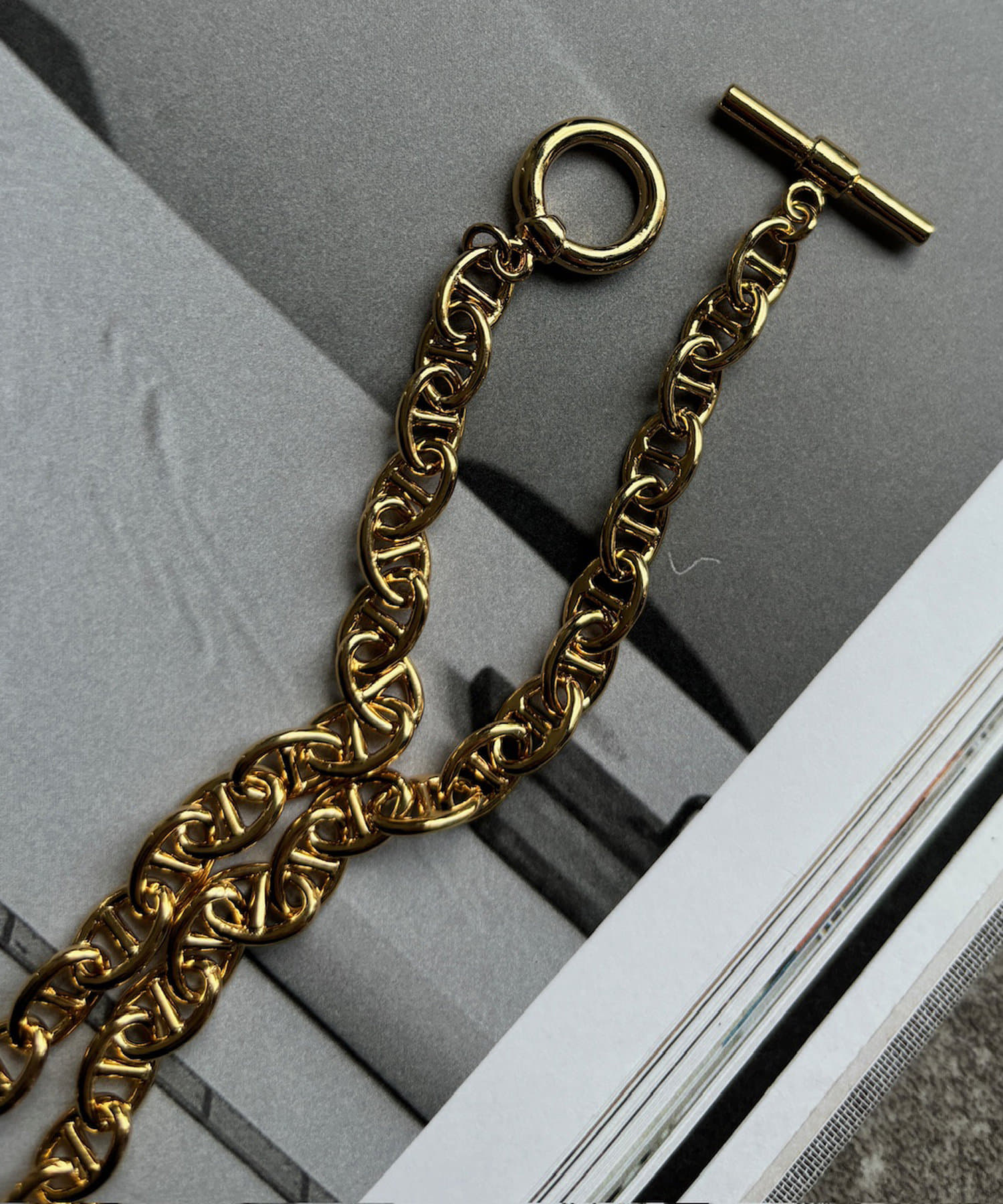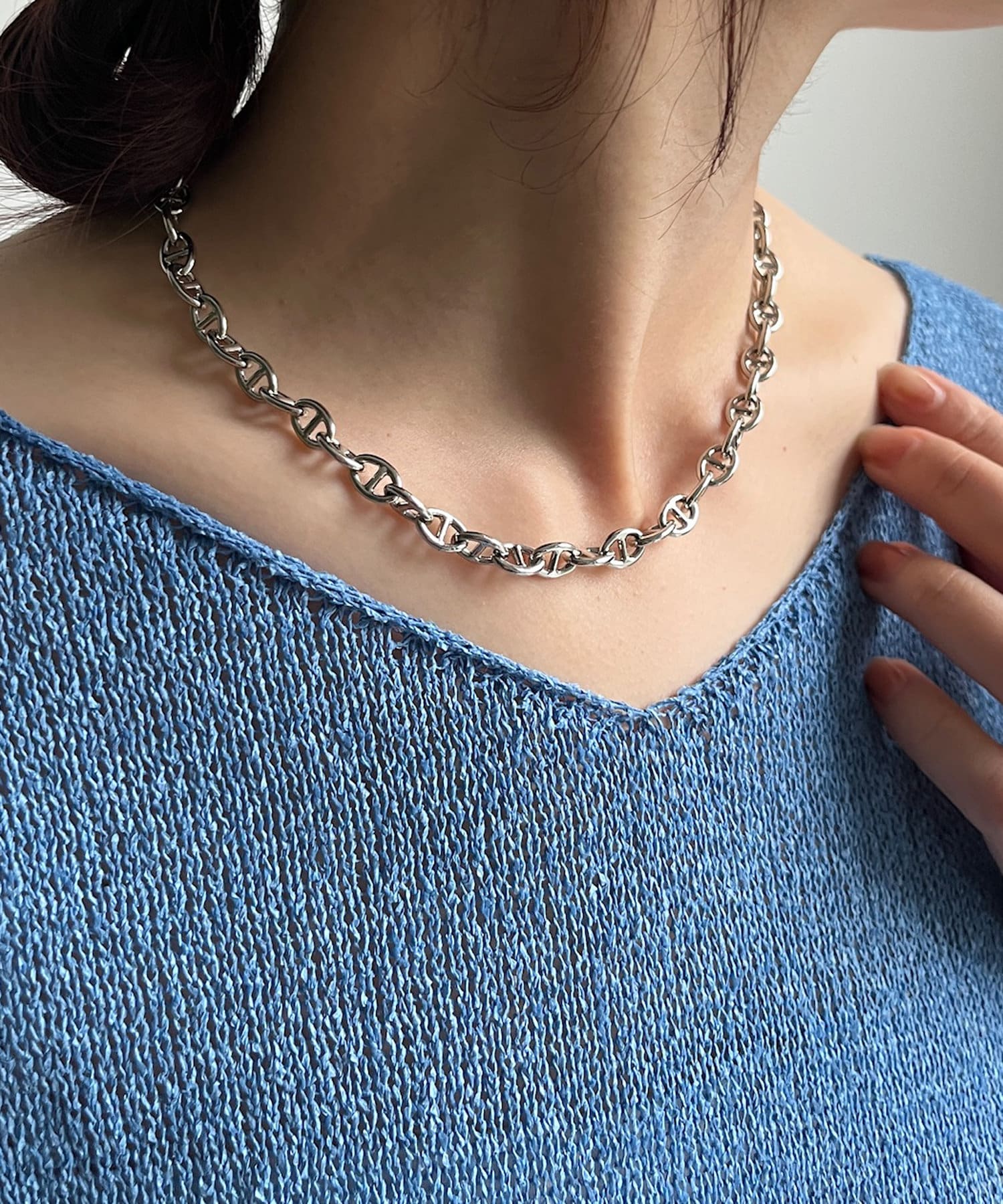 程よいボリュームのチェーンモチーフが抜け感のあるアクセントになります。