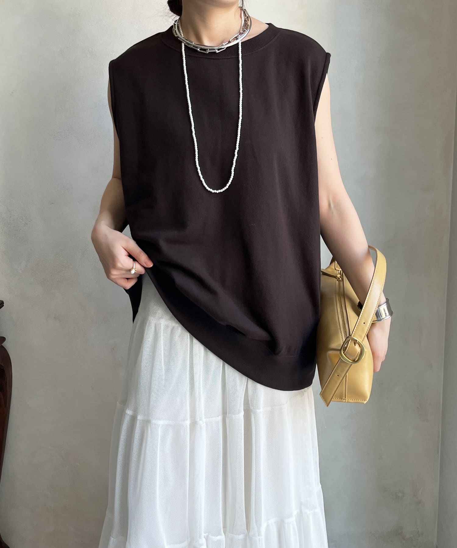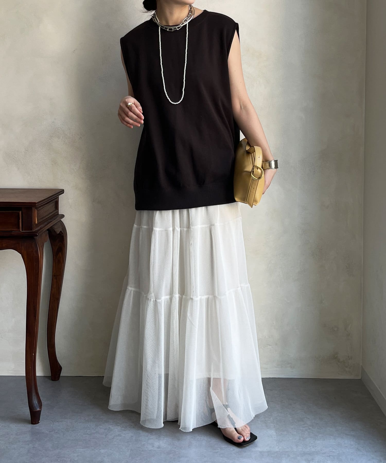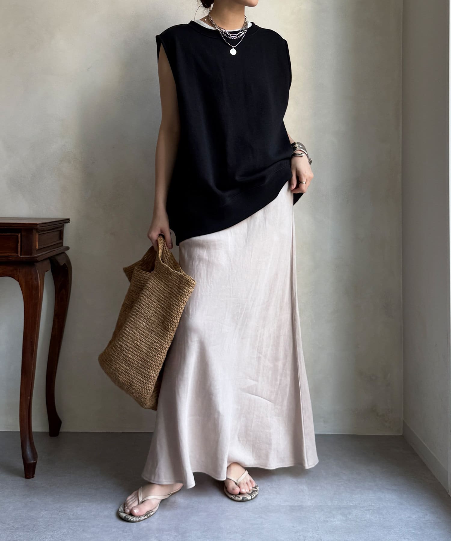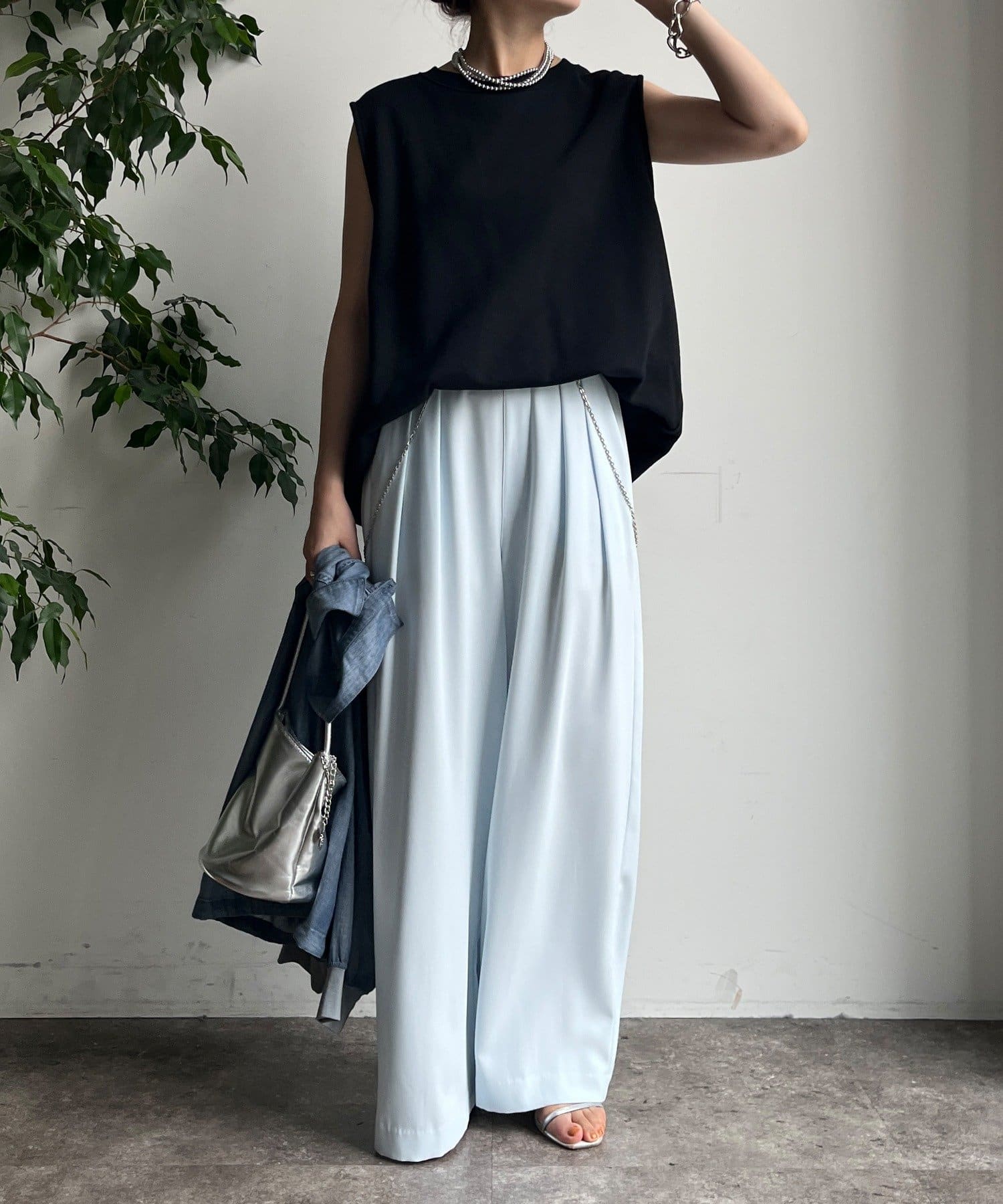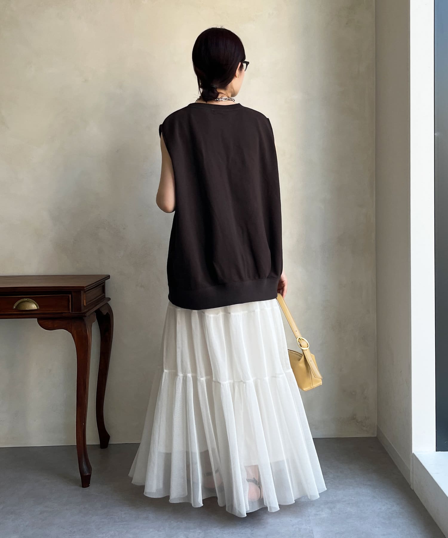 やや長めの丈感に仕上げ、ヒップや腰回りを自然とカバー。