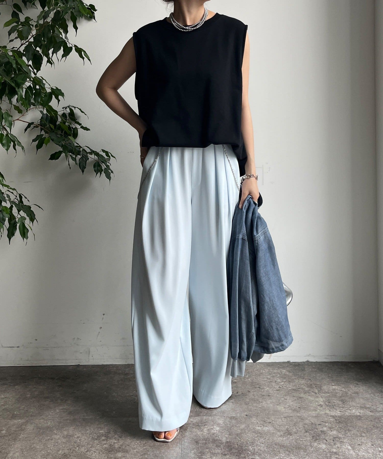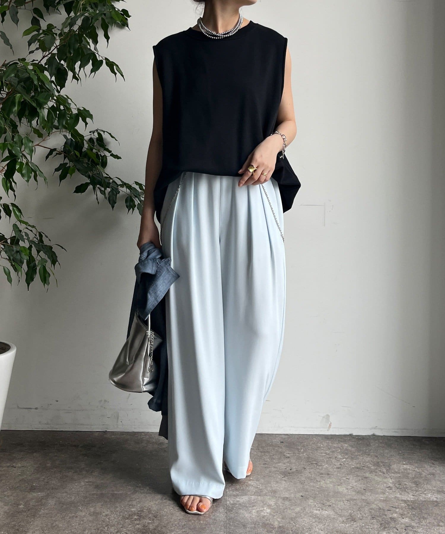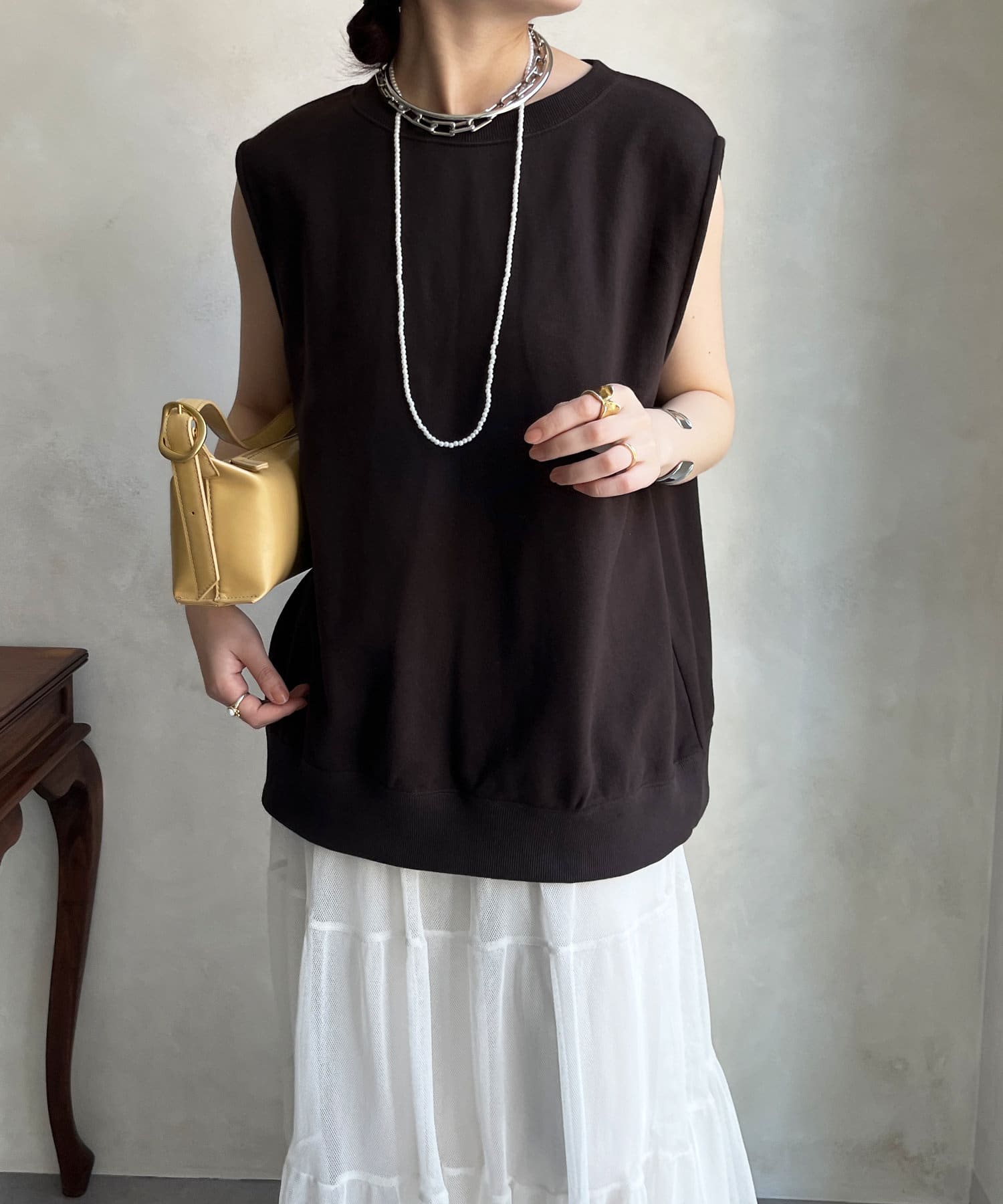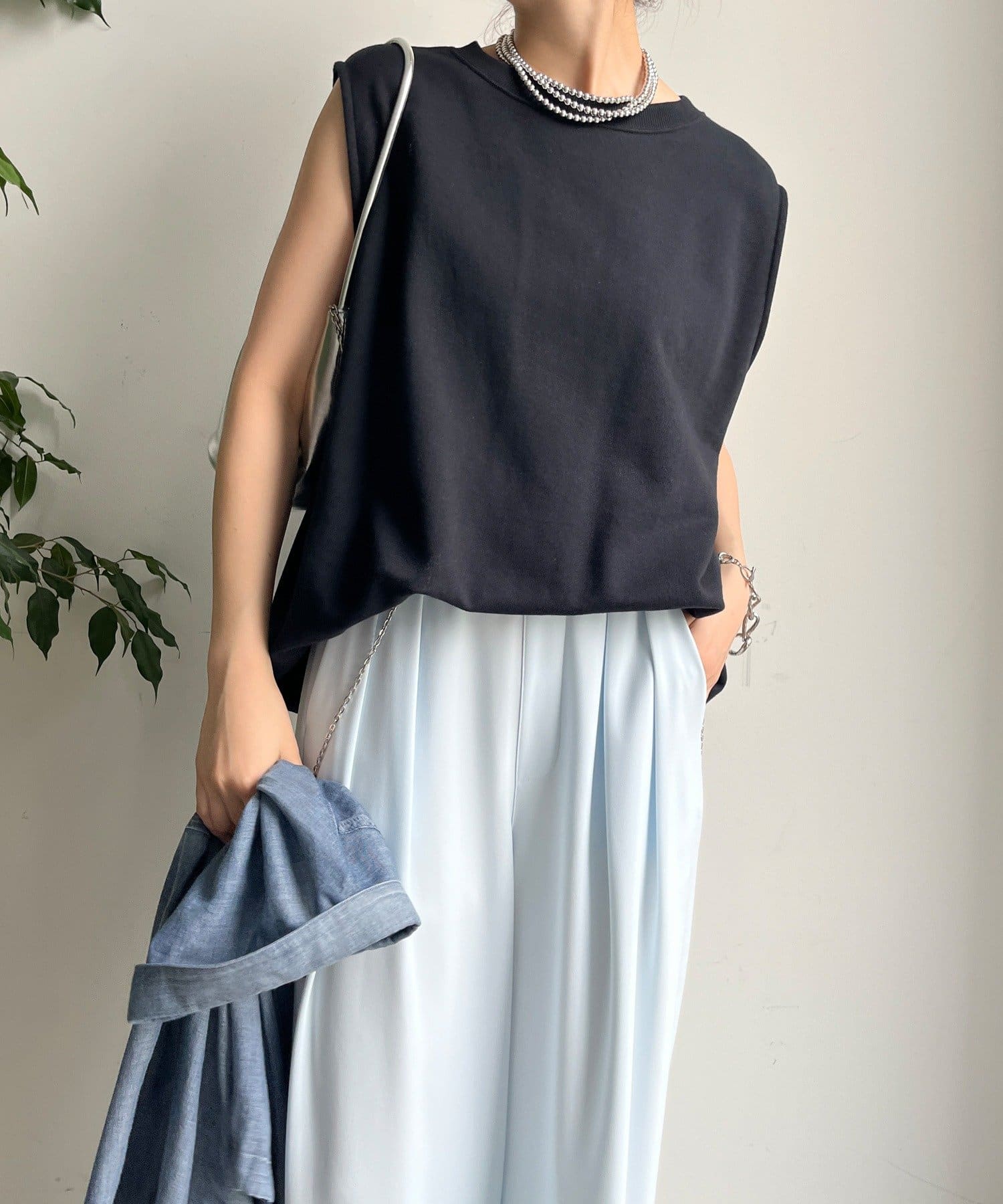 やや長めの丈感に仕上げ、ヒップや腰回りを自然とカバー。