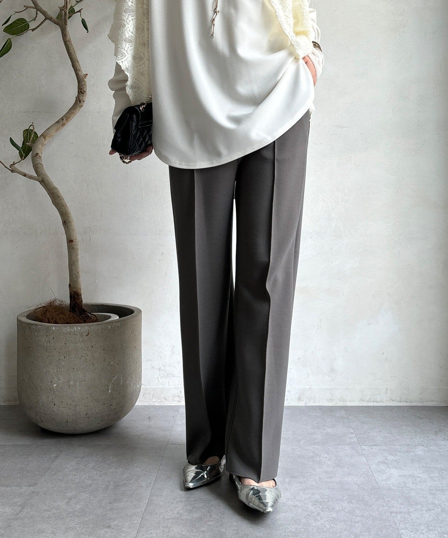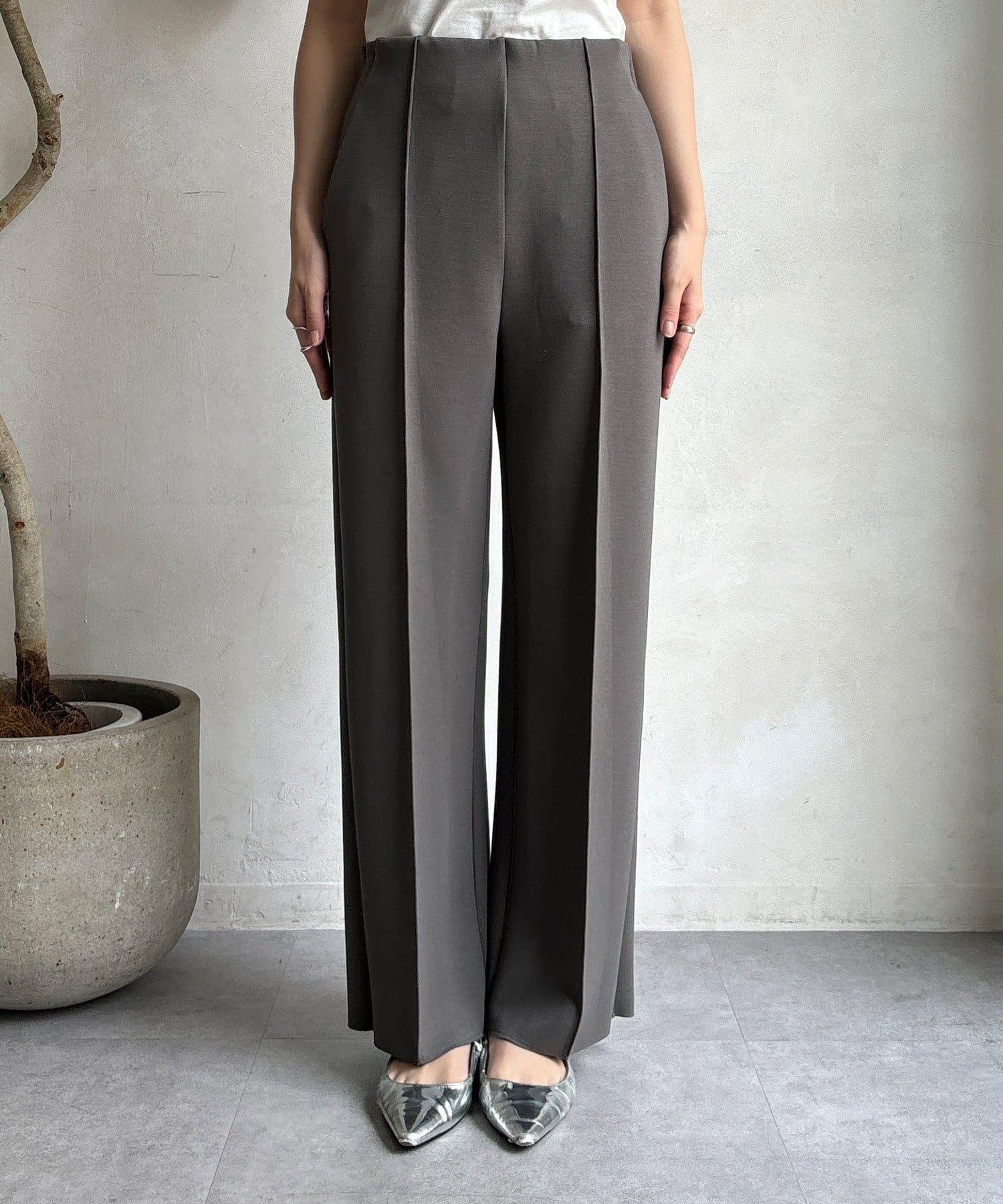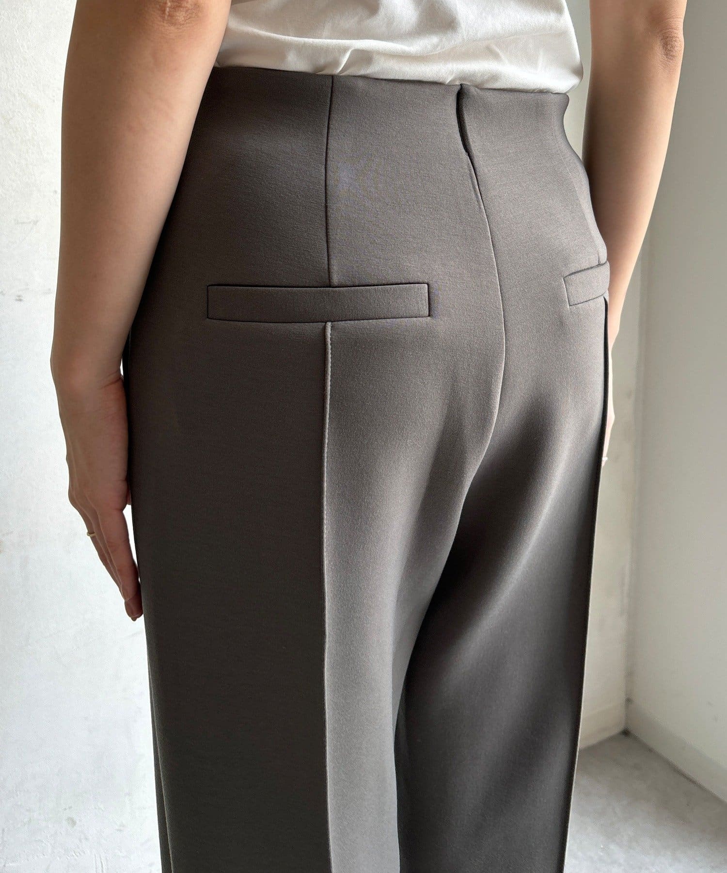 センタープレス入りで、きちんと感をプラス。オフィスシーンにもおすすめです。