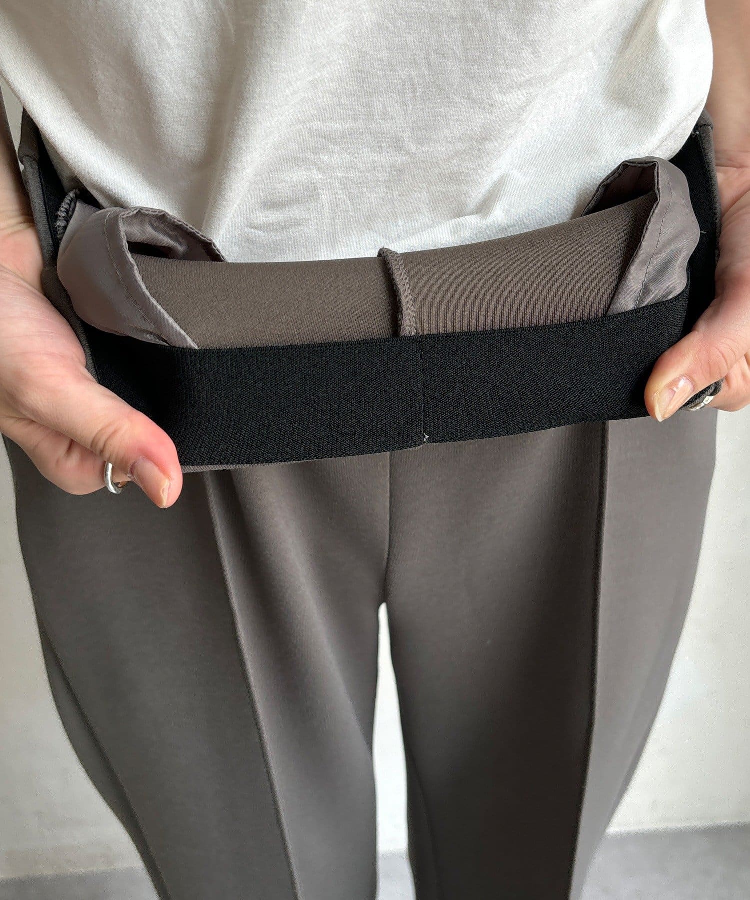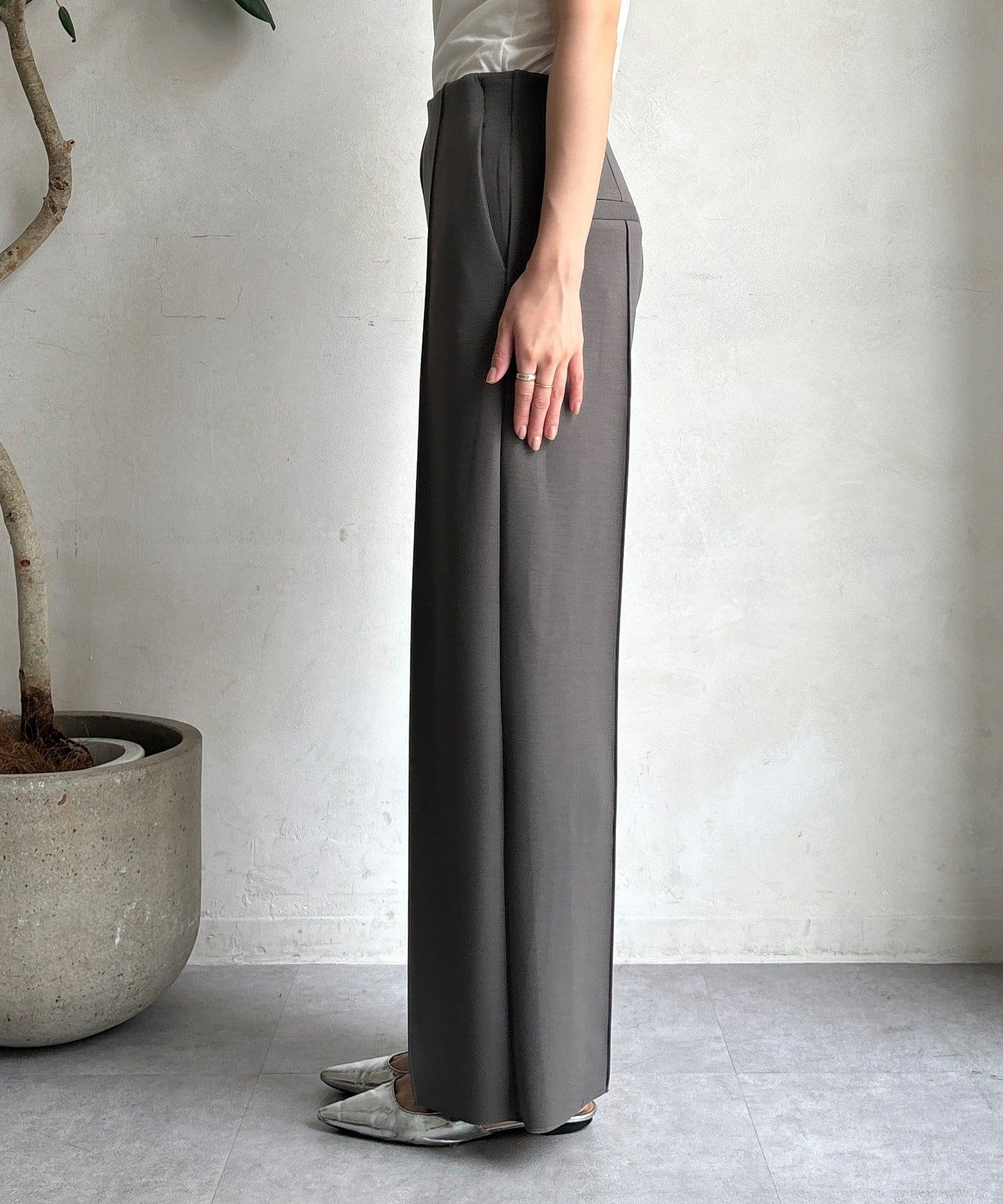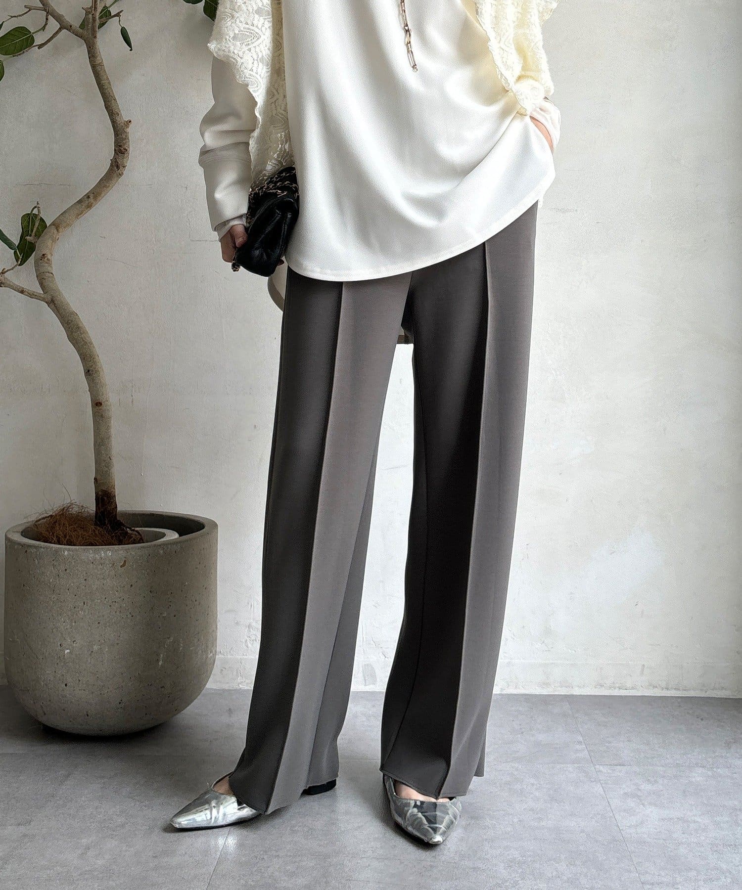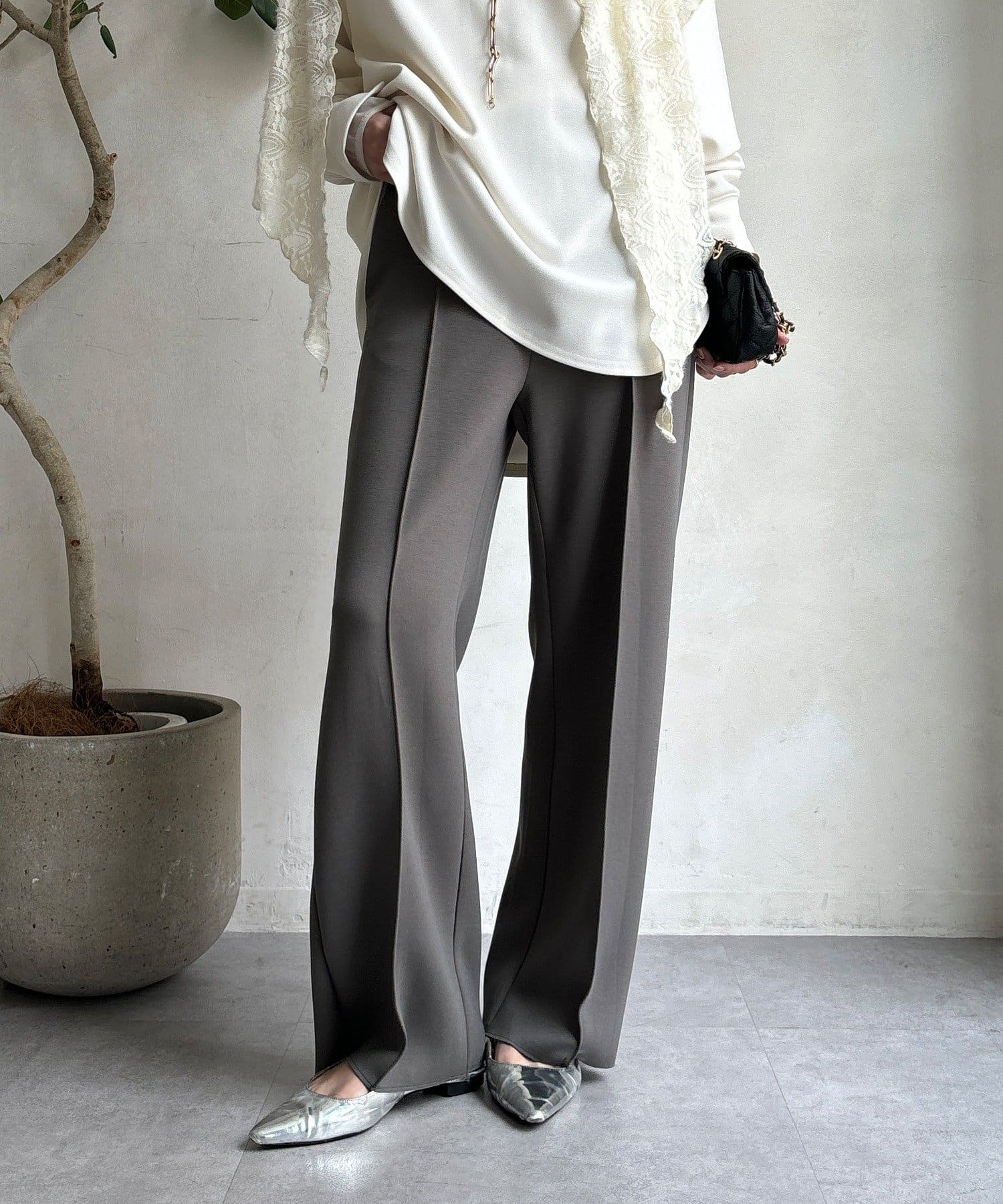 センタープレス入りで、きちんと感をプラス。オフィスシーンにもおすすめです。