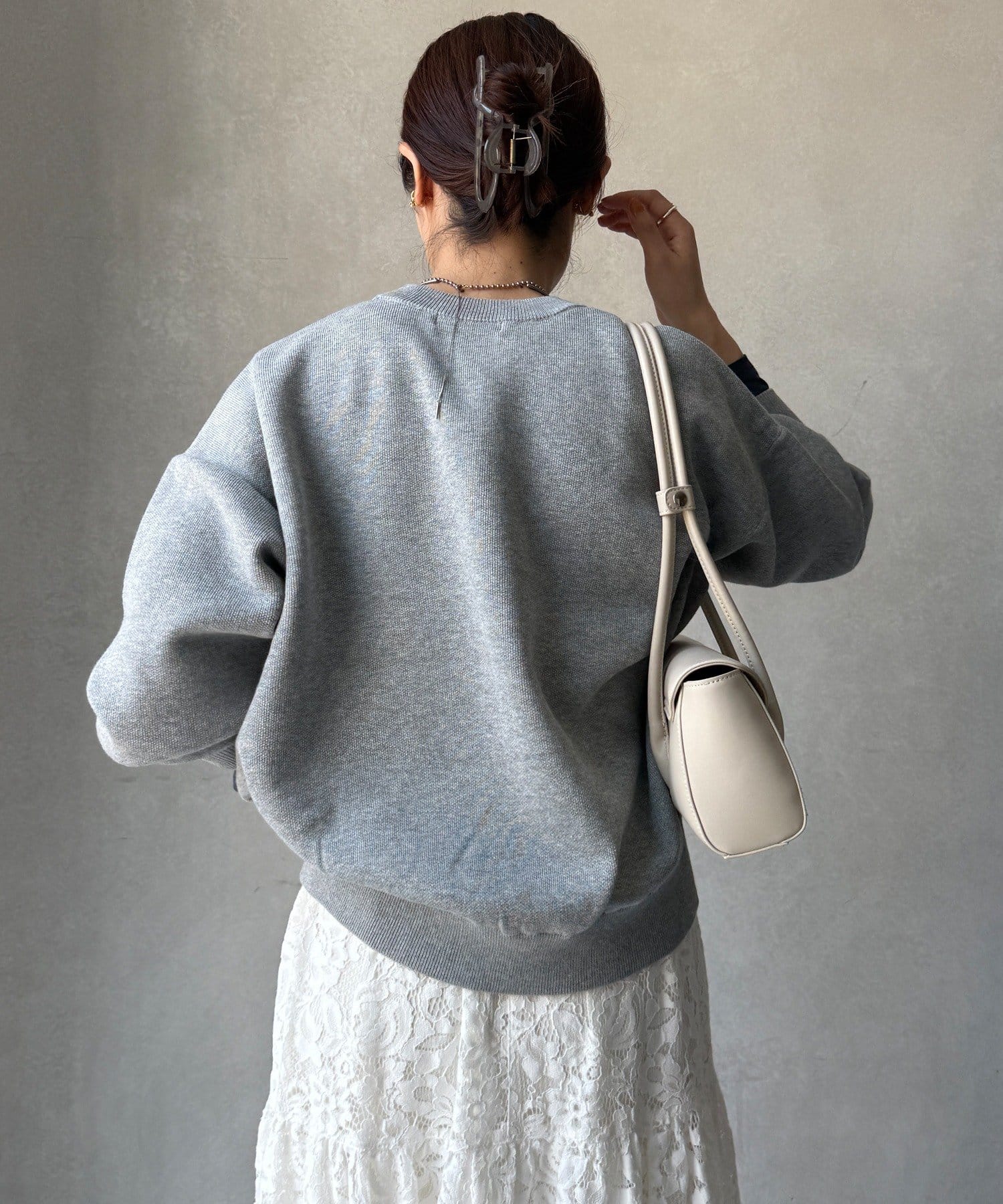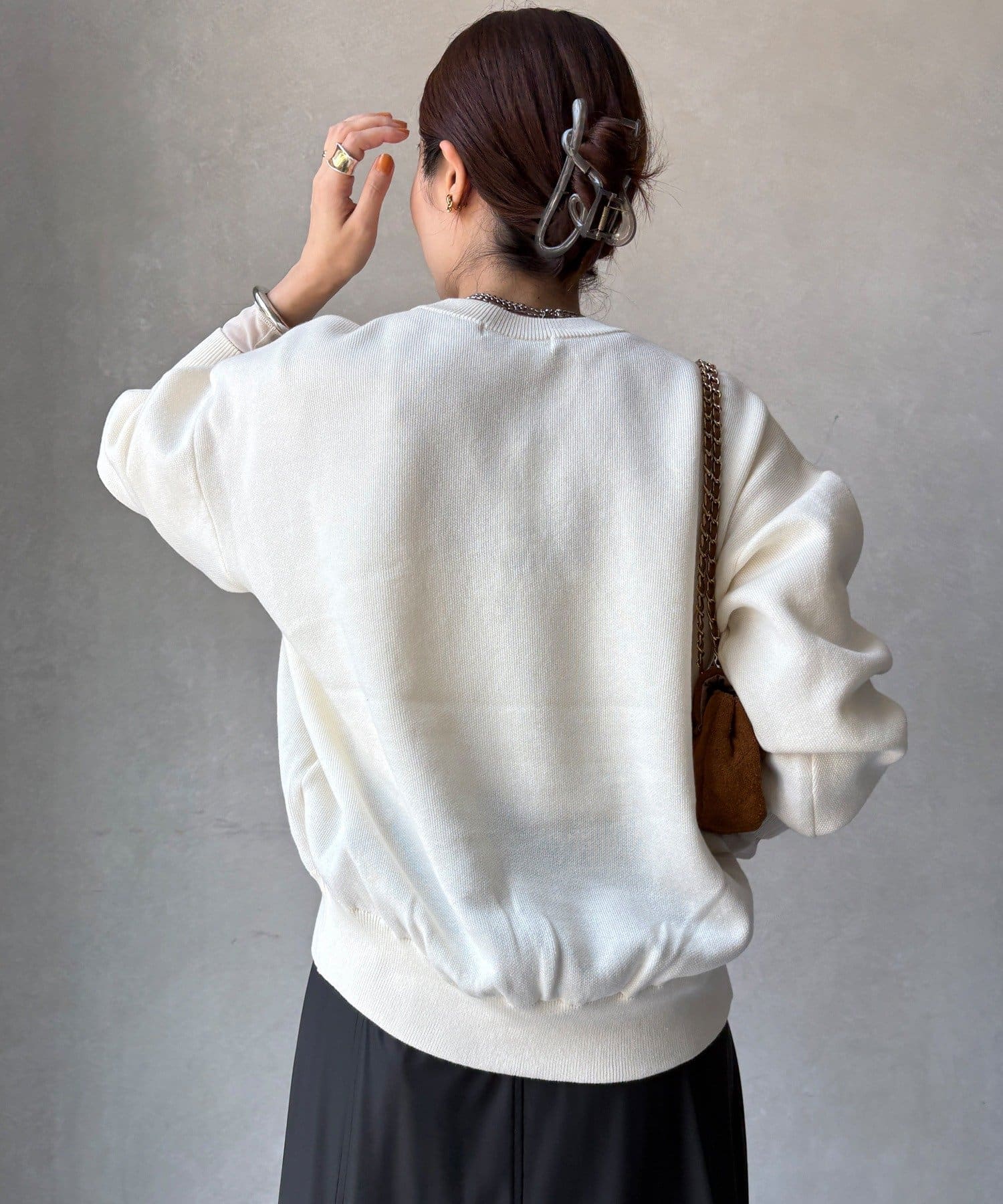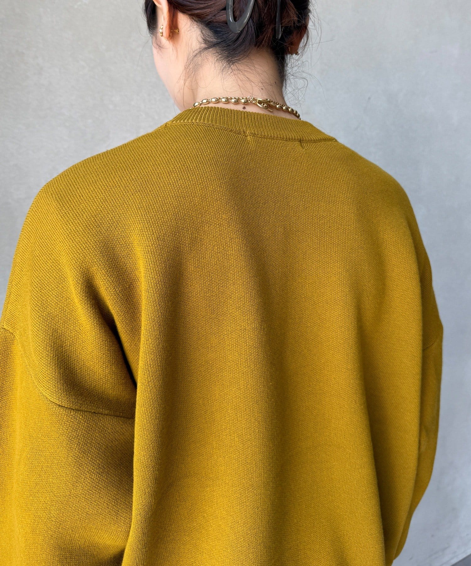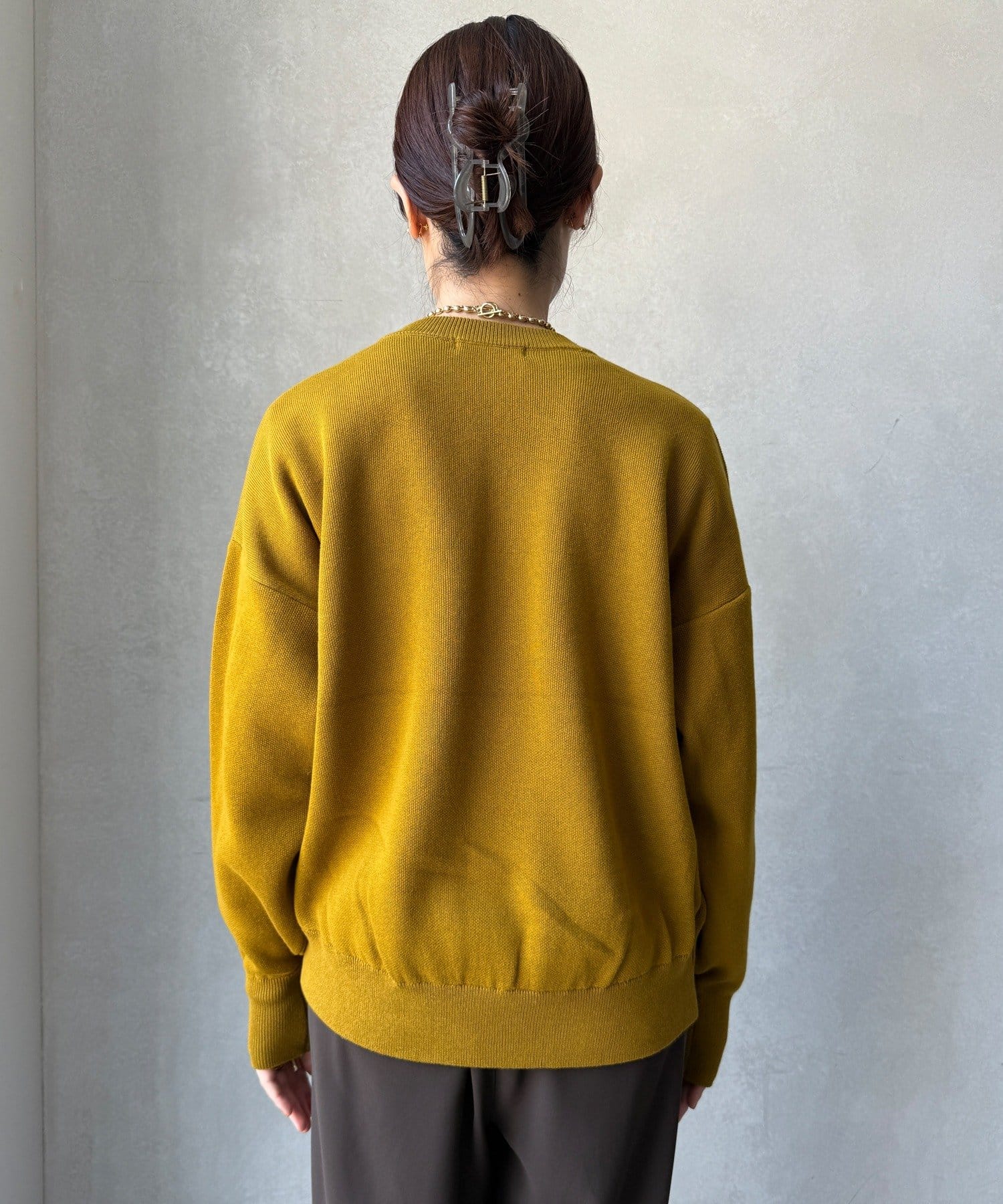 一見スウェットのようなラフな風合いながら、ニットのような上品さも兼ね備えているのが特徴です。