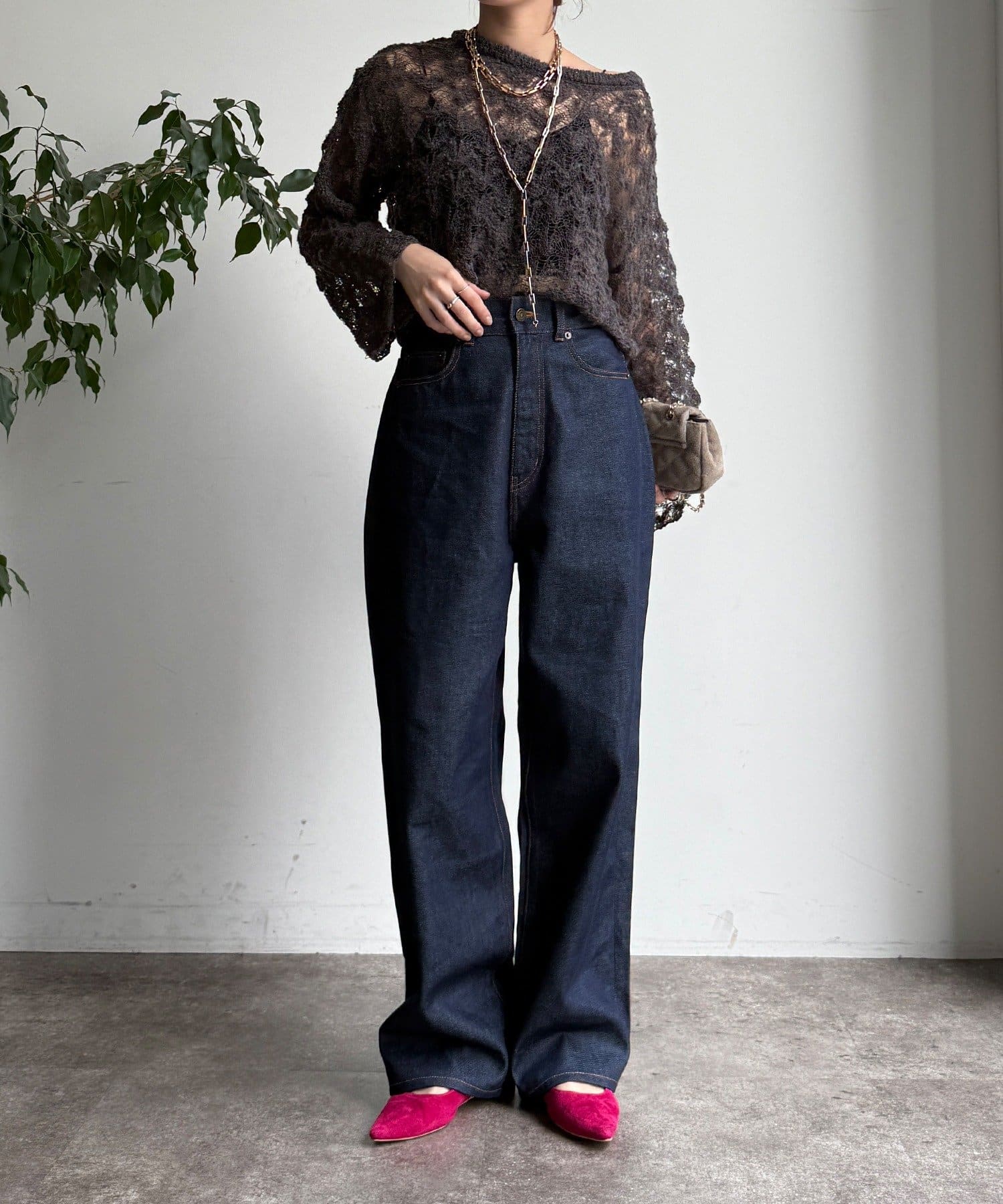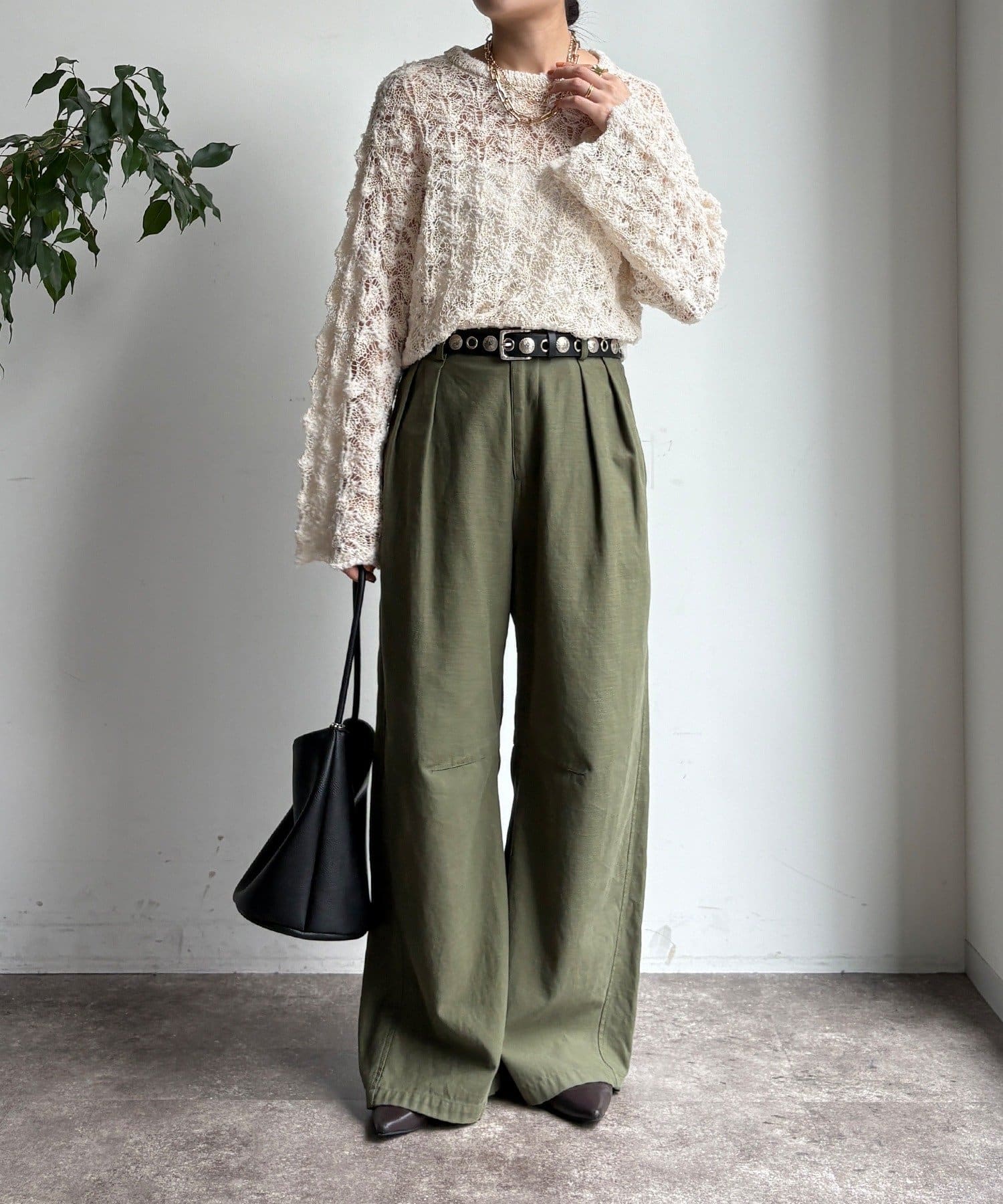 程よい生地の厚さで肌なじみがよくトレンドのシアー感とナチュラルな着心地が嬉しいポイントです。