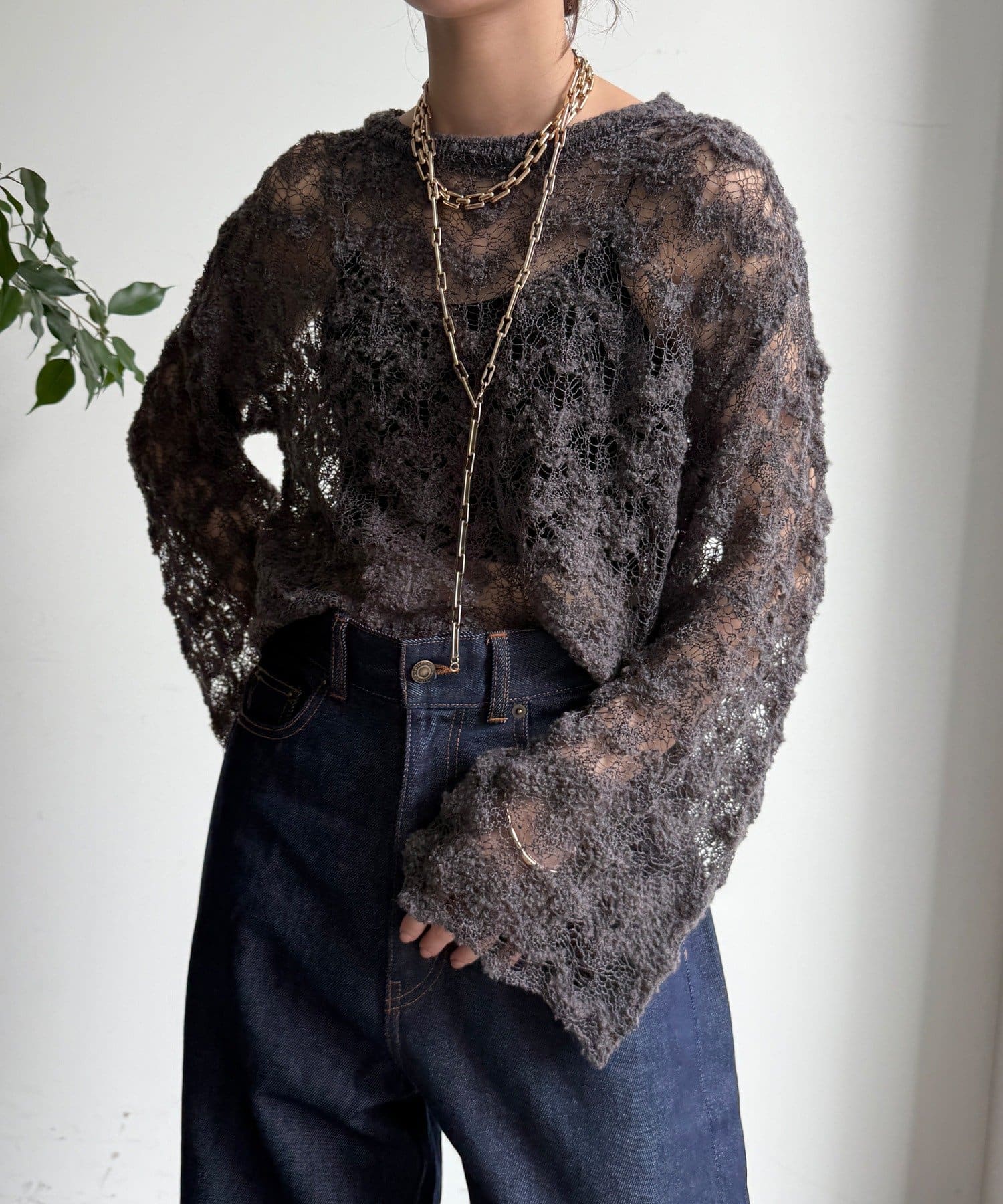 【WEB限定】透かし編みワイドスリーブプルオーバー