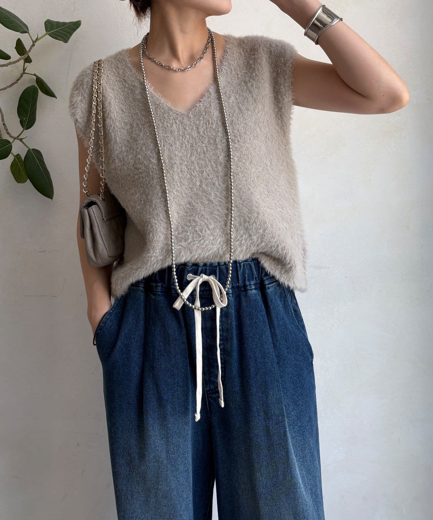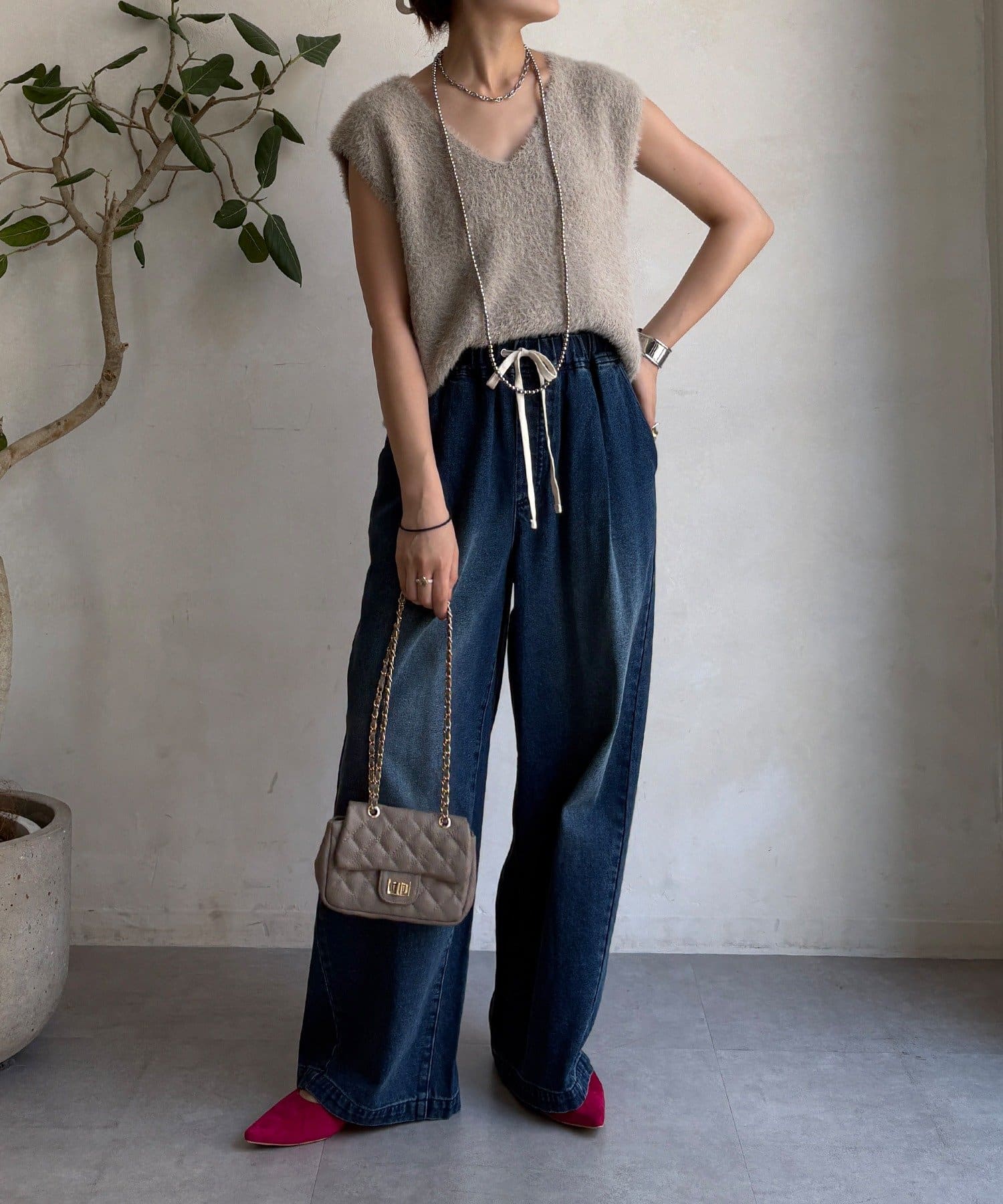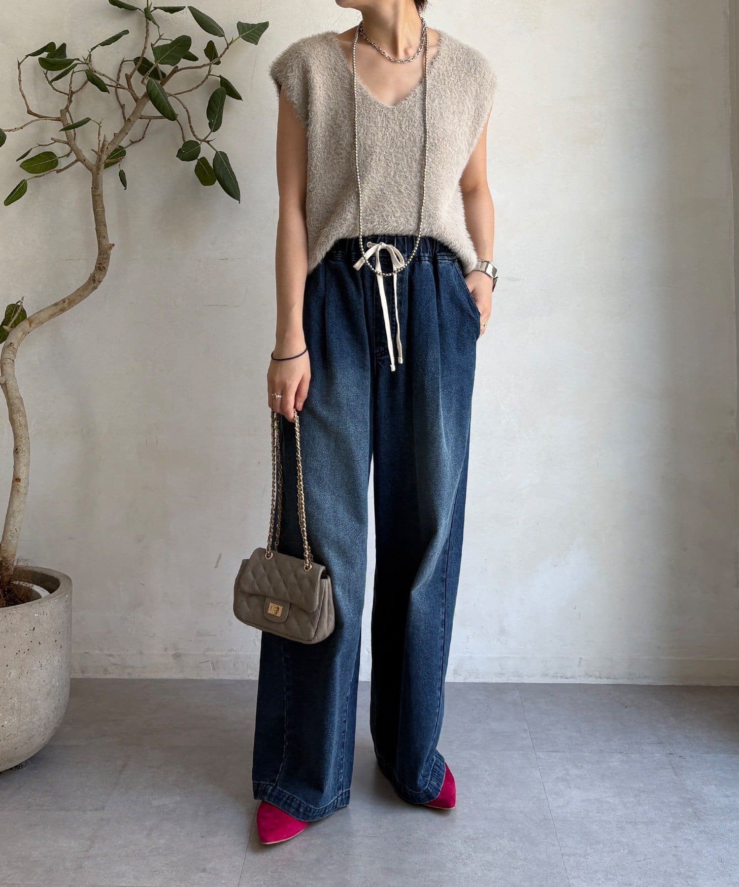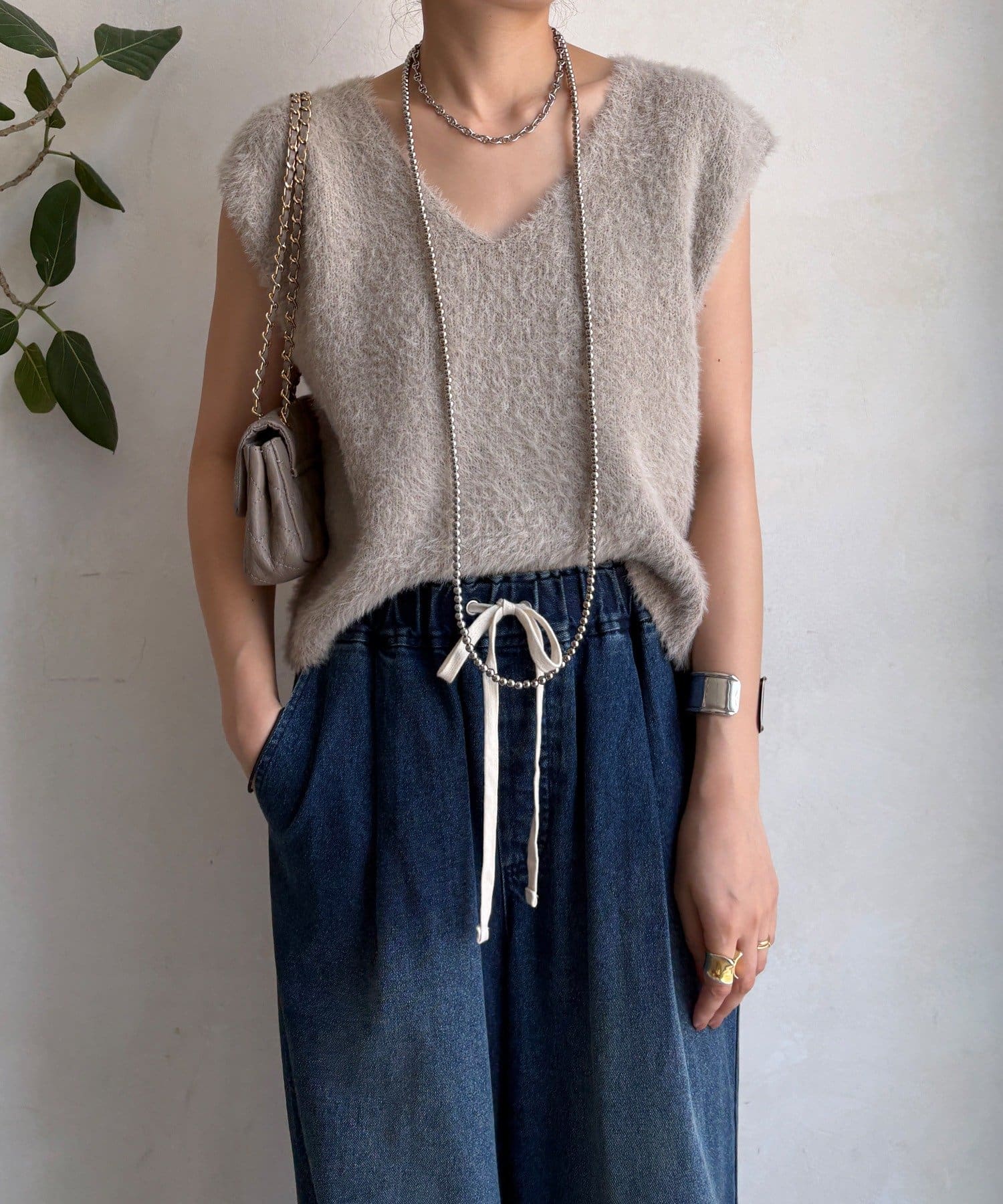 合わせるアイテムによって、様々な表情を見せてくれるのがこのベストの魅力です◎