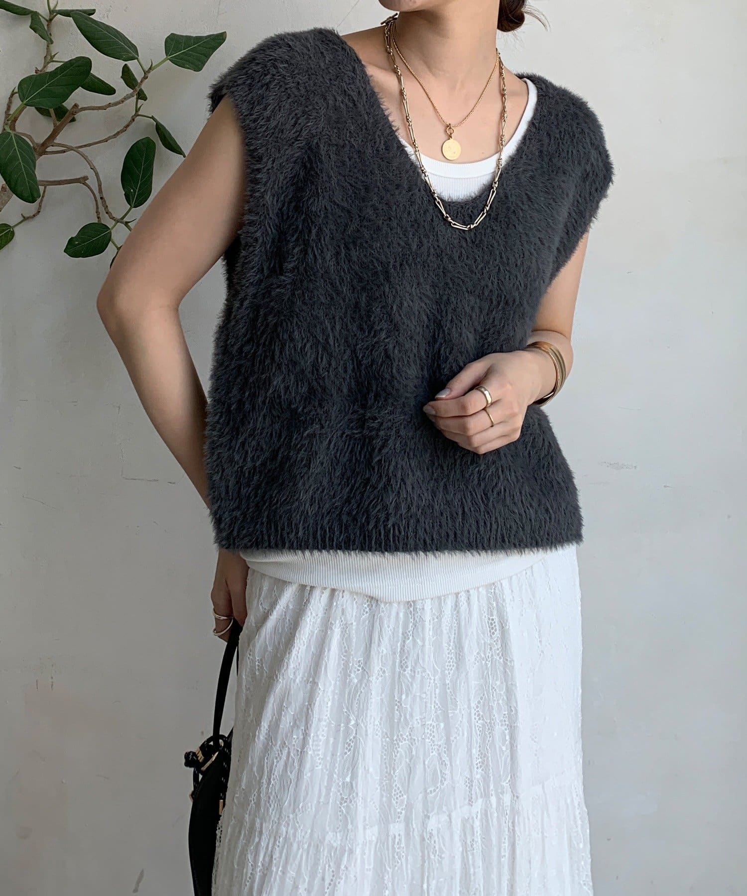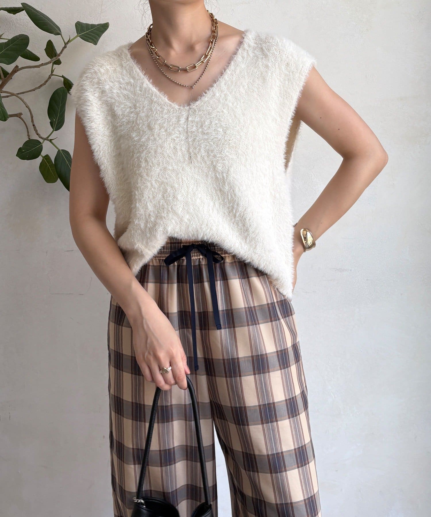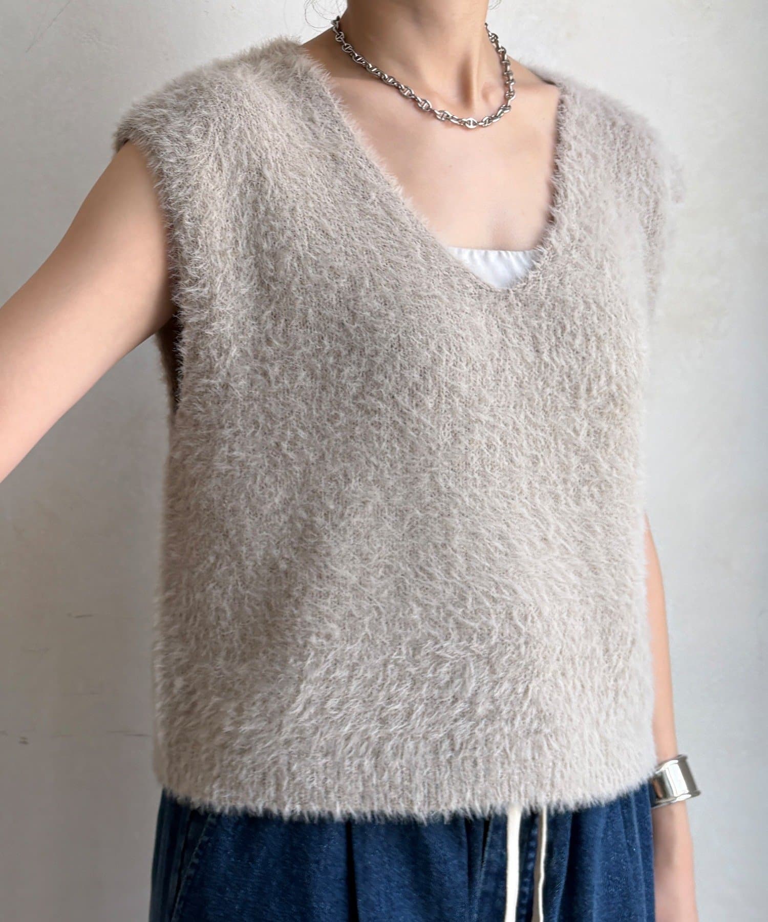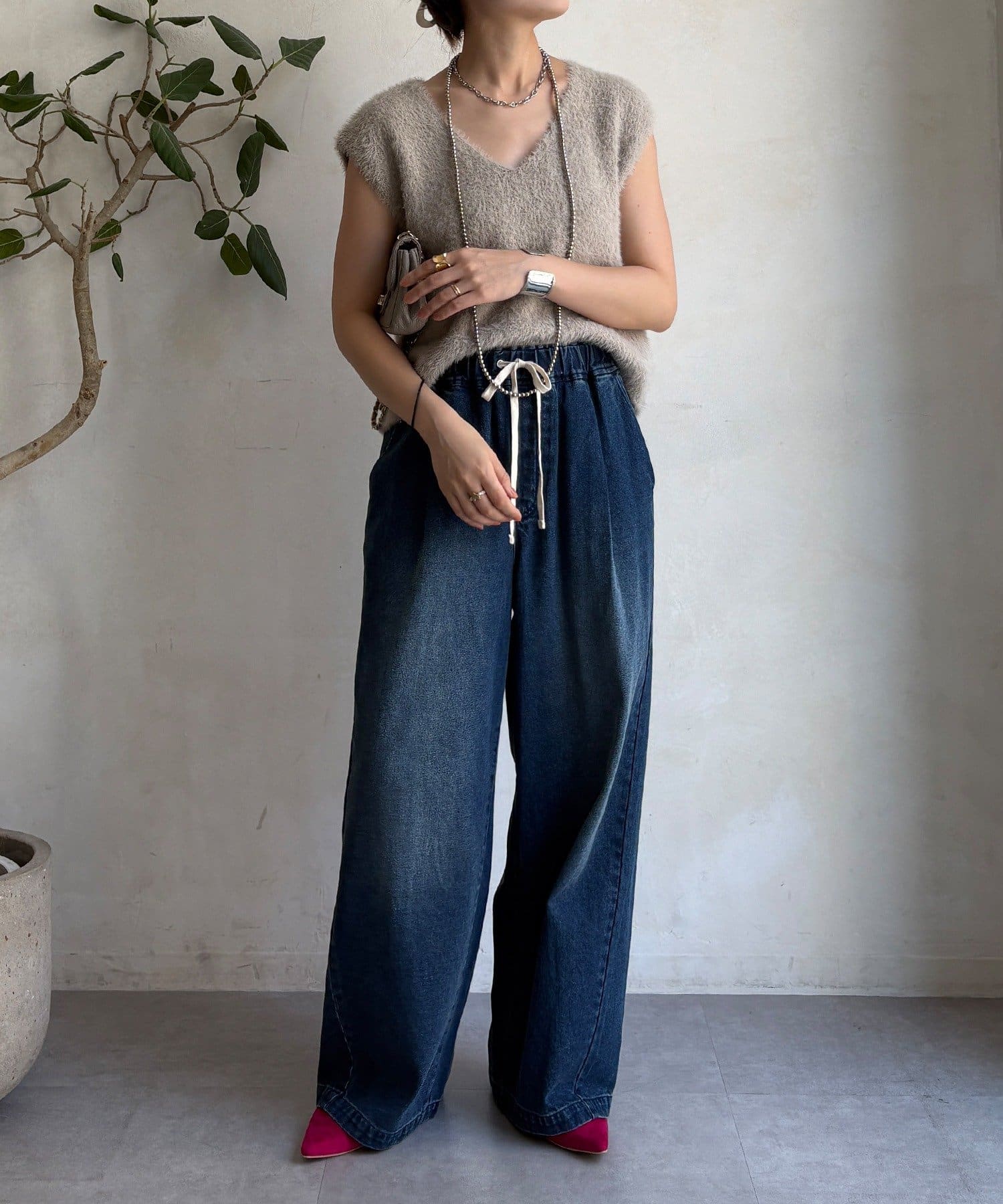 合わせるアイテムによって、様々な表情を見せてくれるのがこのベストの魅力です◎