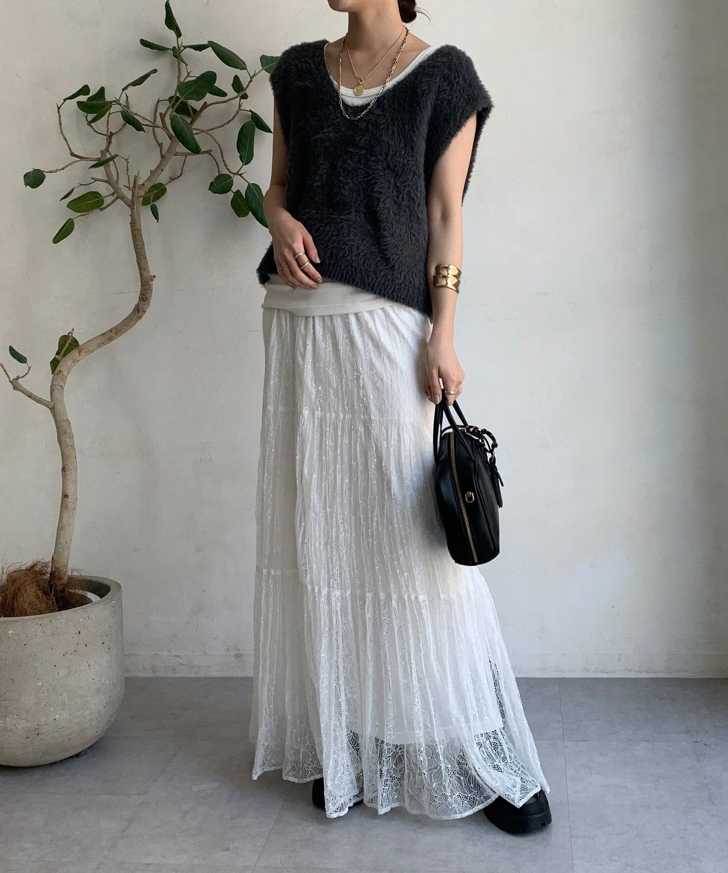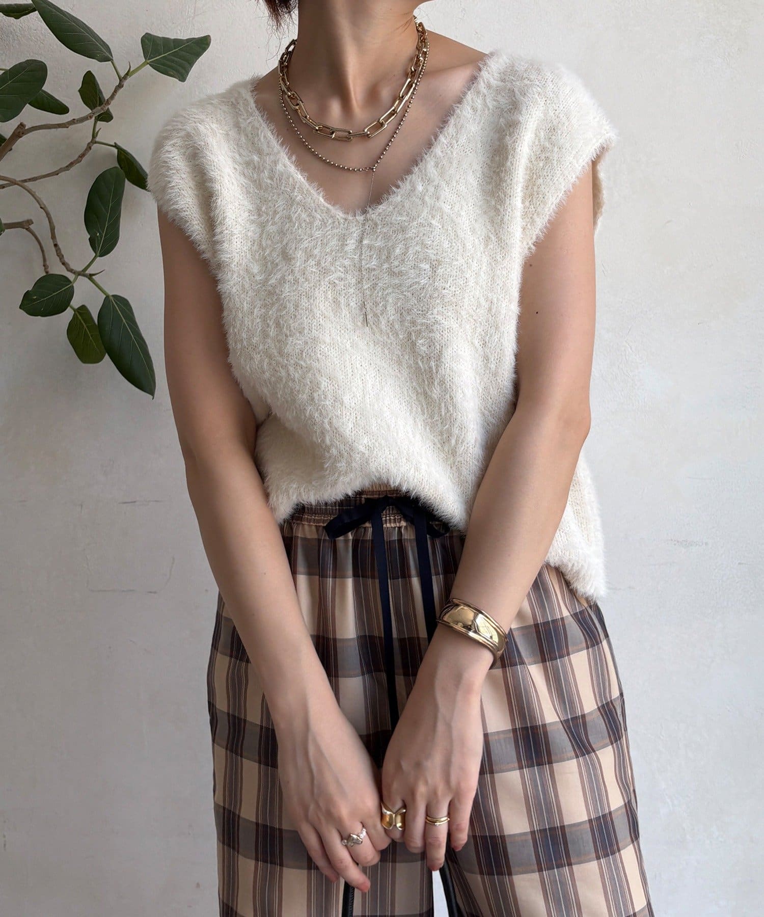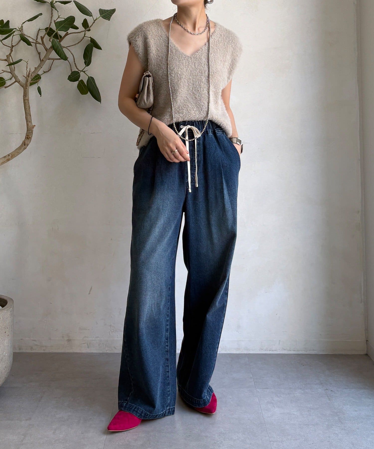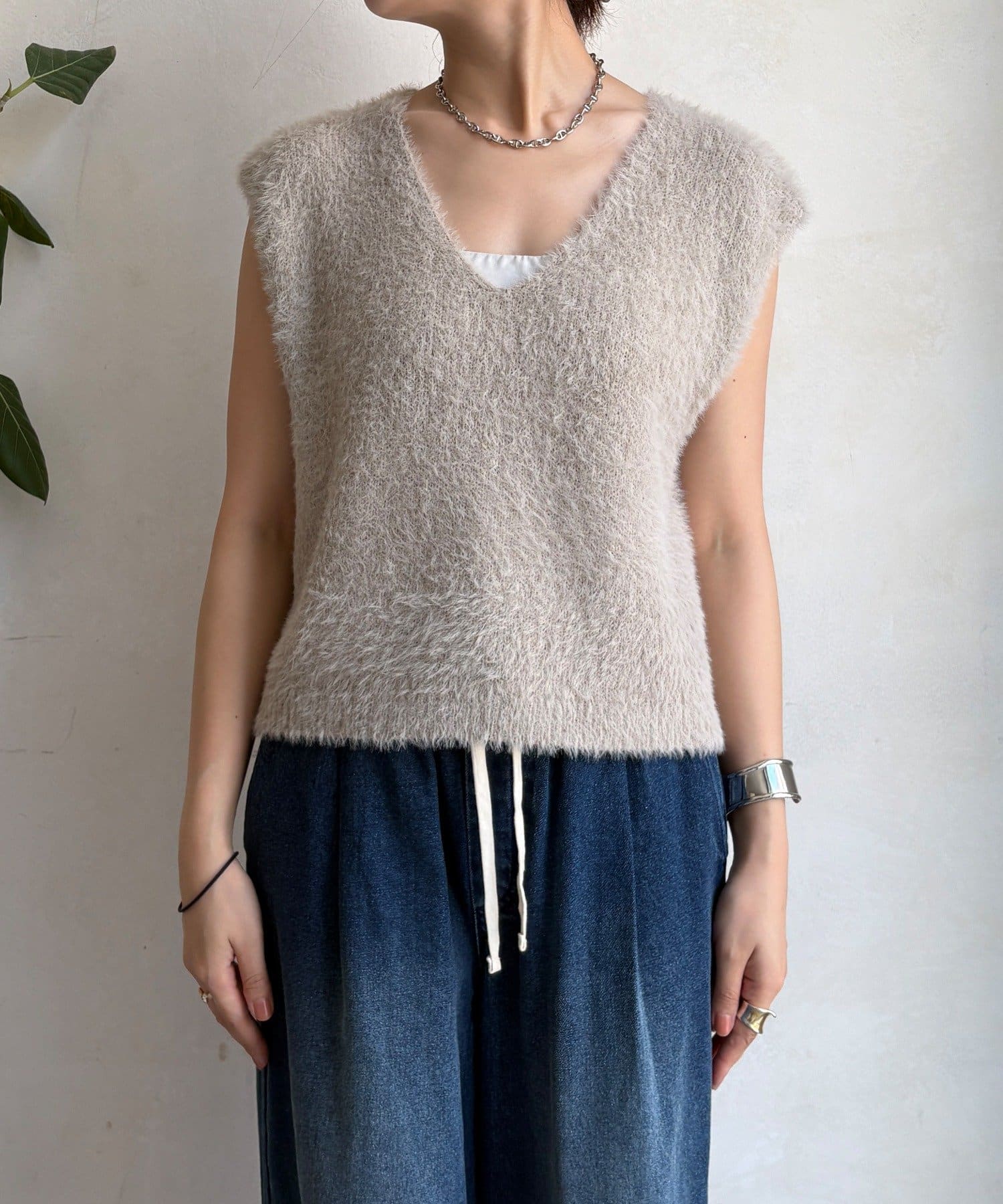 合わせるアイテムによって、様々な表情を見せてくれるのがこのベストの魅力です◎