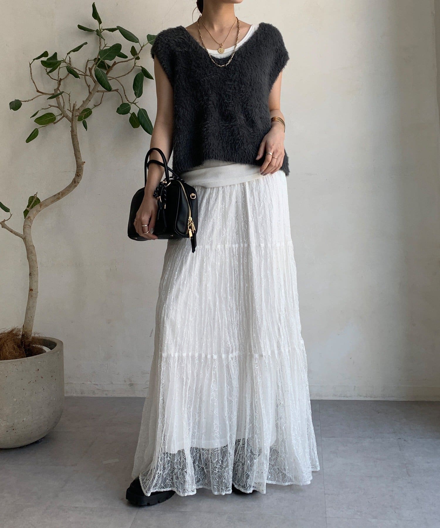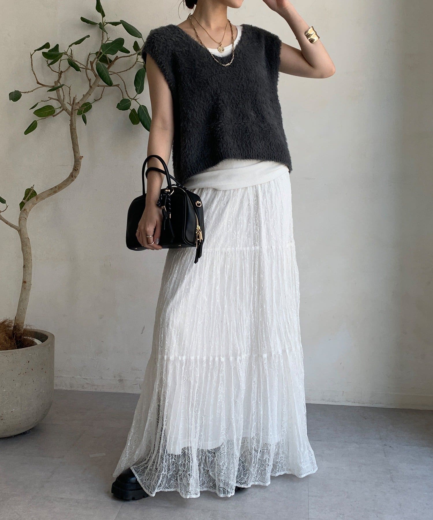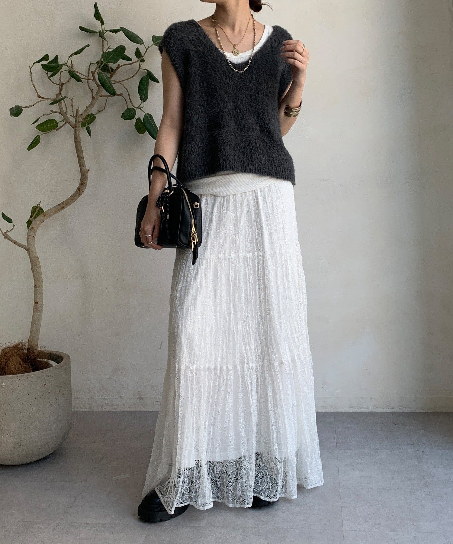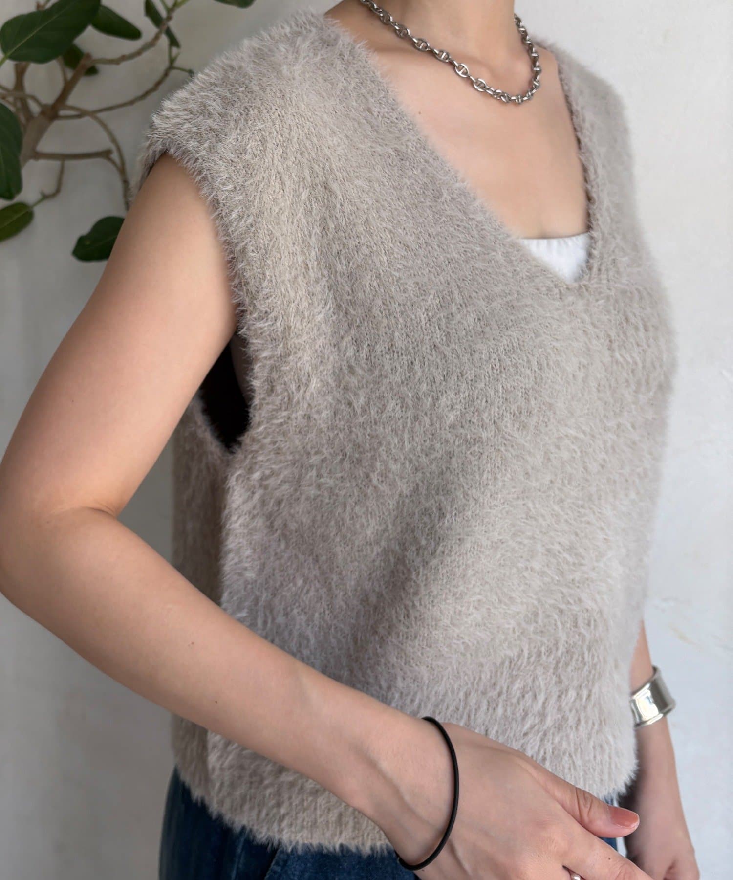 合わせるアイテムによって、様々な表情を見せてくれるのがこのベストの魅力です◎