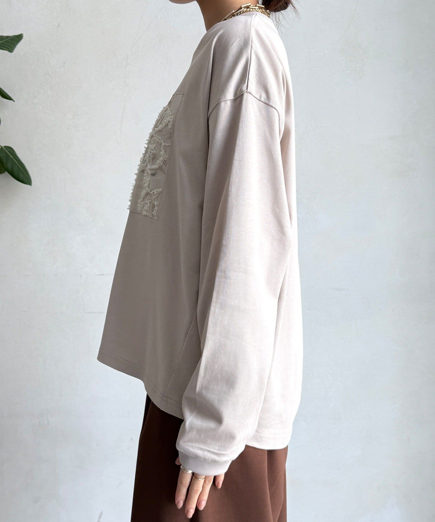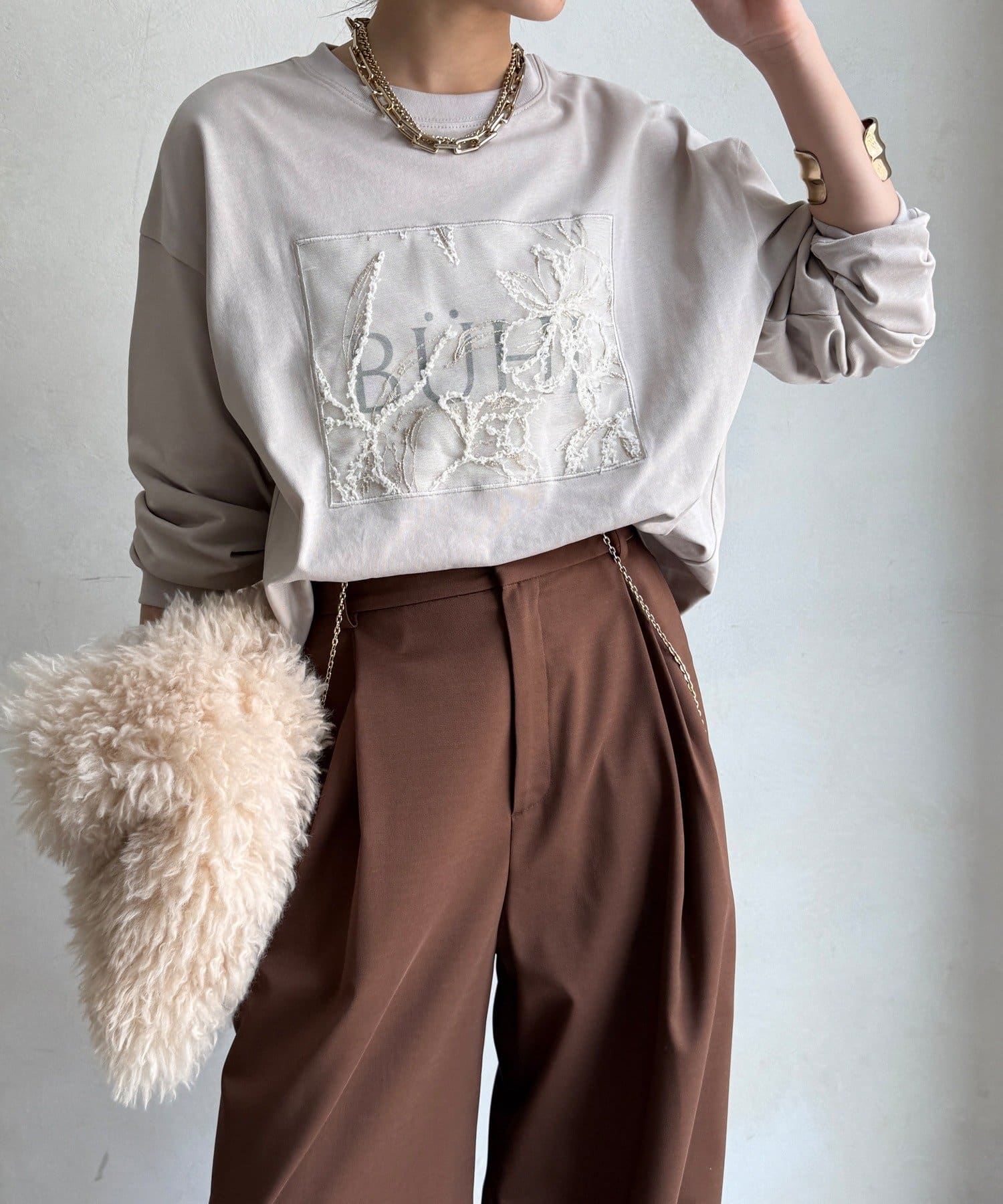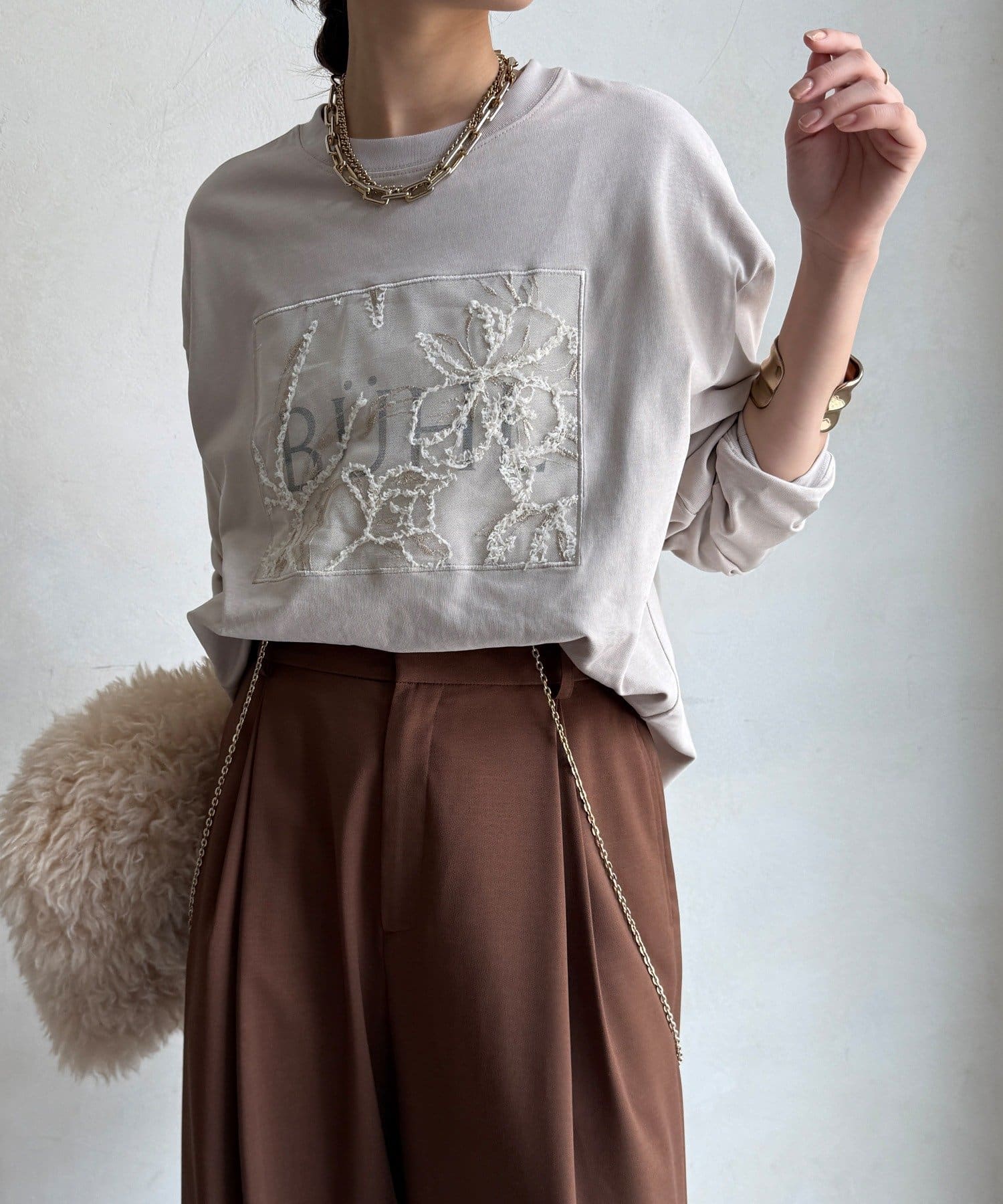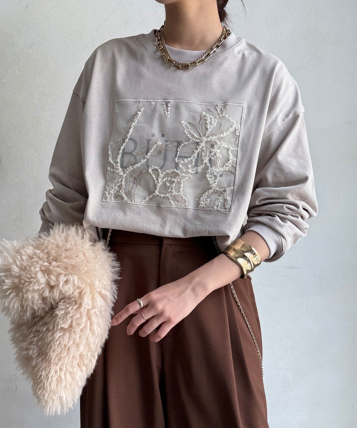 甘くなりがちなレースを、あえてカジュアルなロンTに落とし込んだデザイン