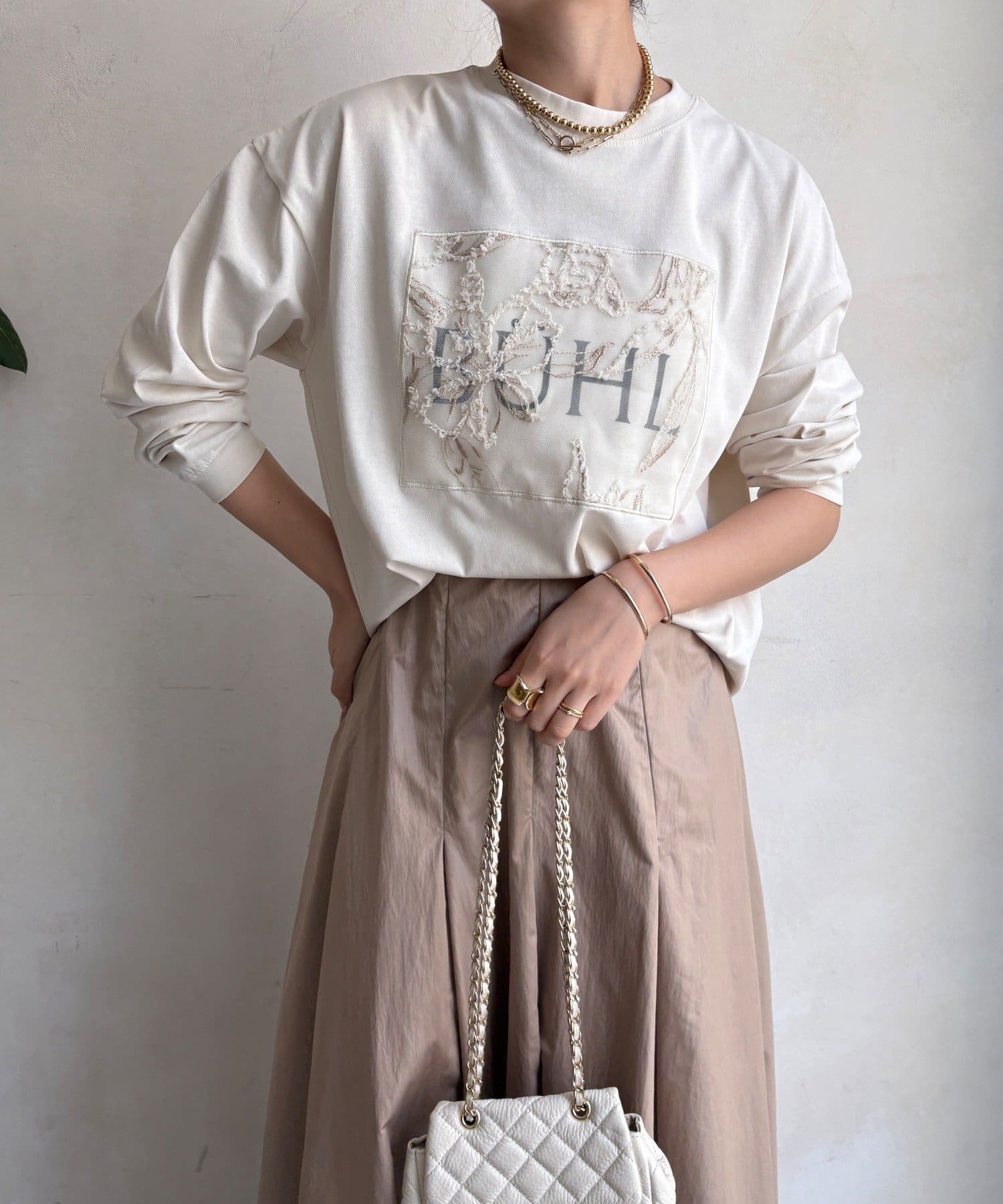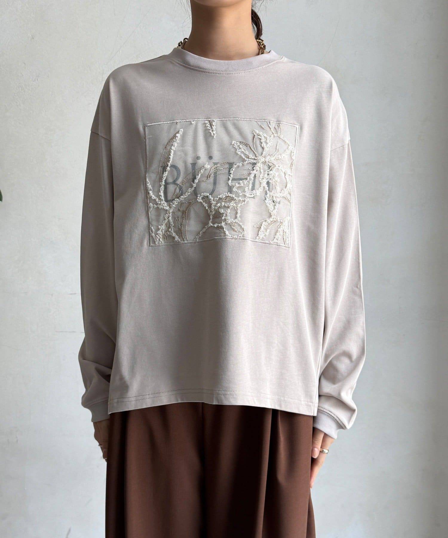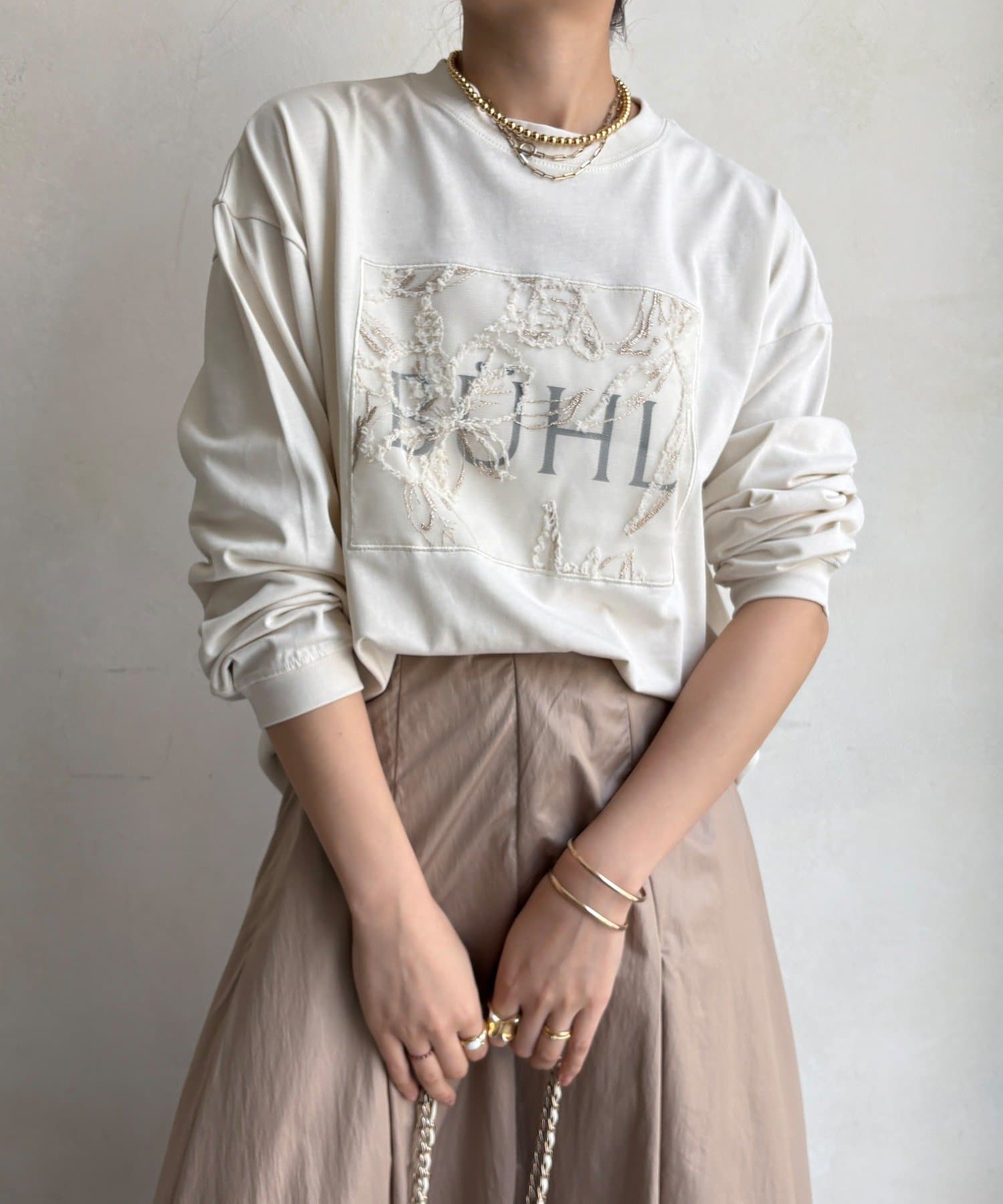 甘くなりがちなレースを、あえてカジュアルなロンTに落とし込んだデザイン